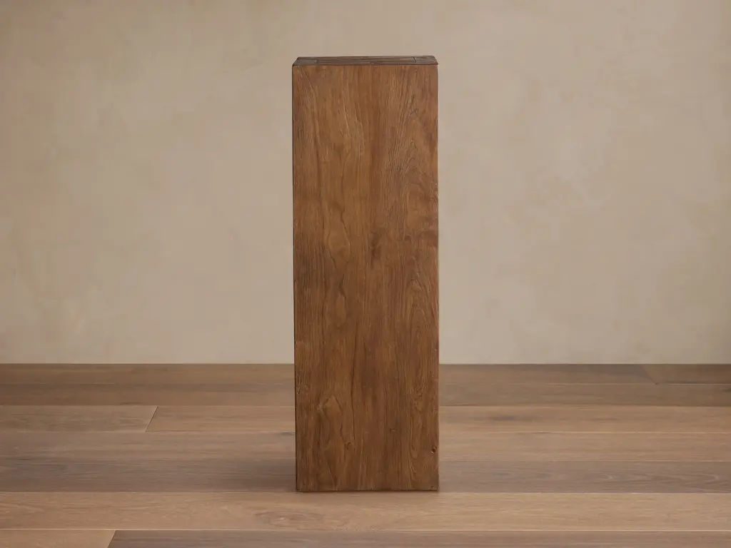In a versatile side table, the sculptural simplicity of the aptly named Mass collection allows the fine walnut veneer to take center stage. Designers Lim + Lu provide a surface roomy enough to hold a table lamp while leaving space for a book or coffee cup when positioned next to a sofa, armchair or bed—or let it stand alone for the display of special items.