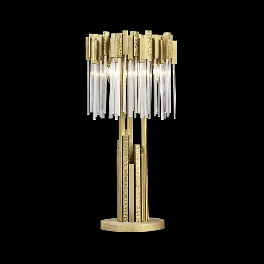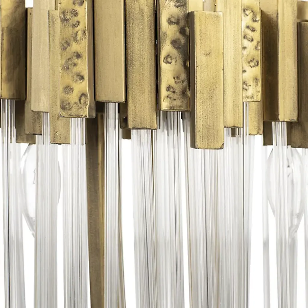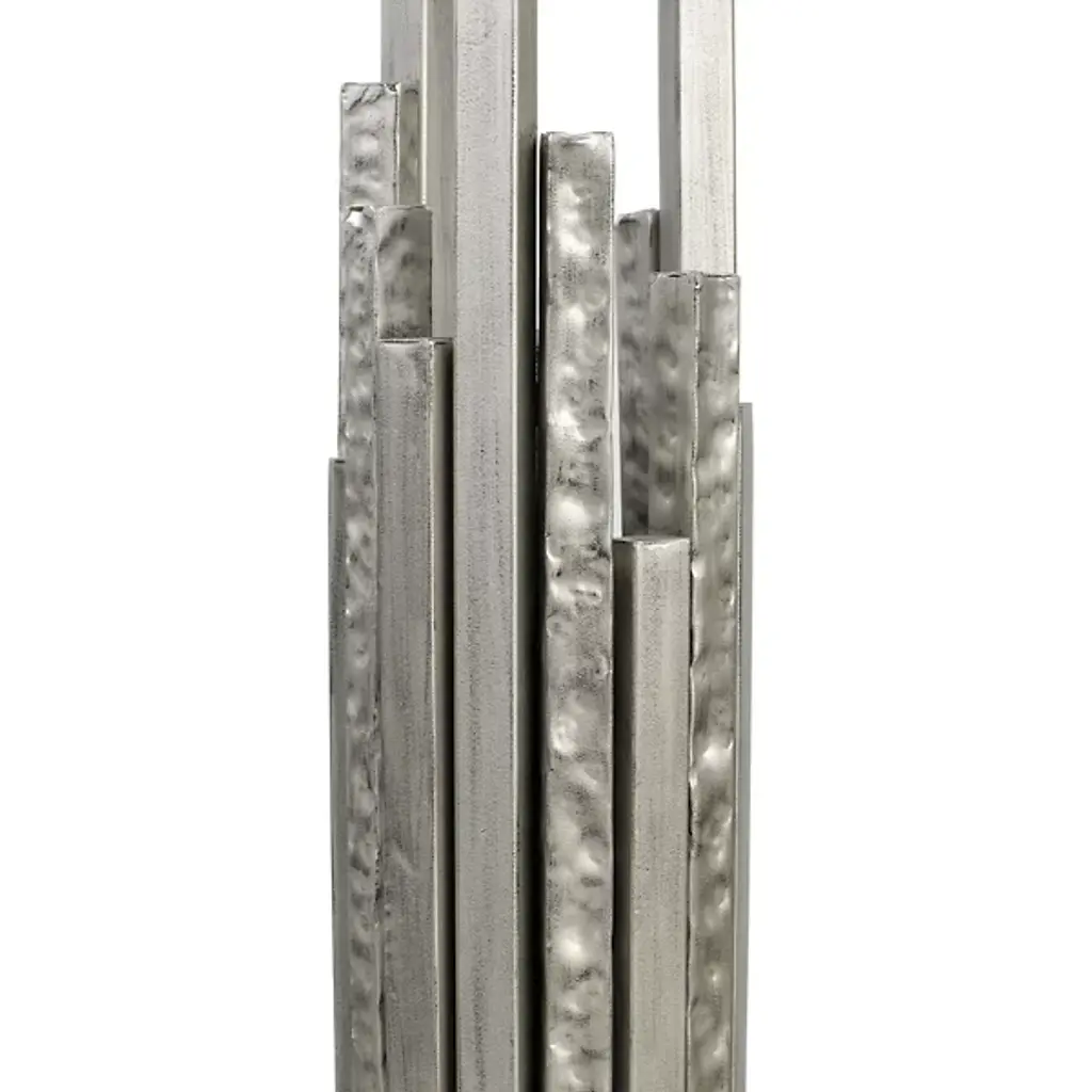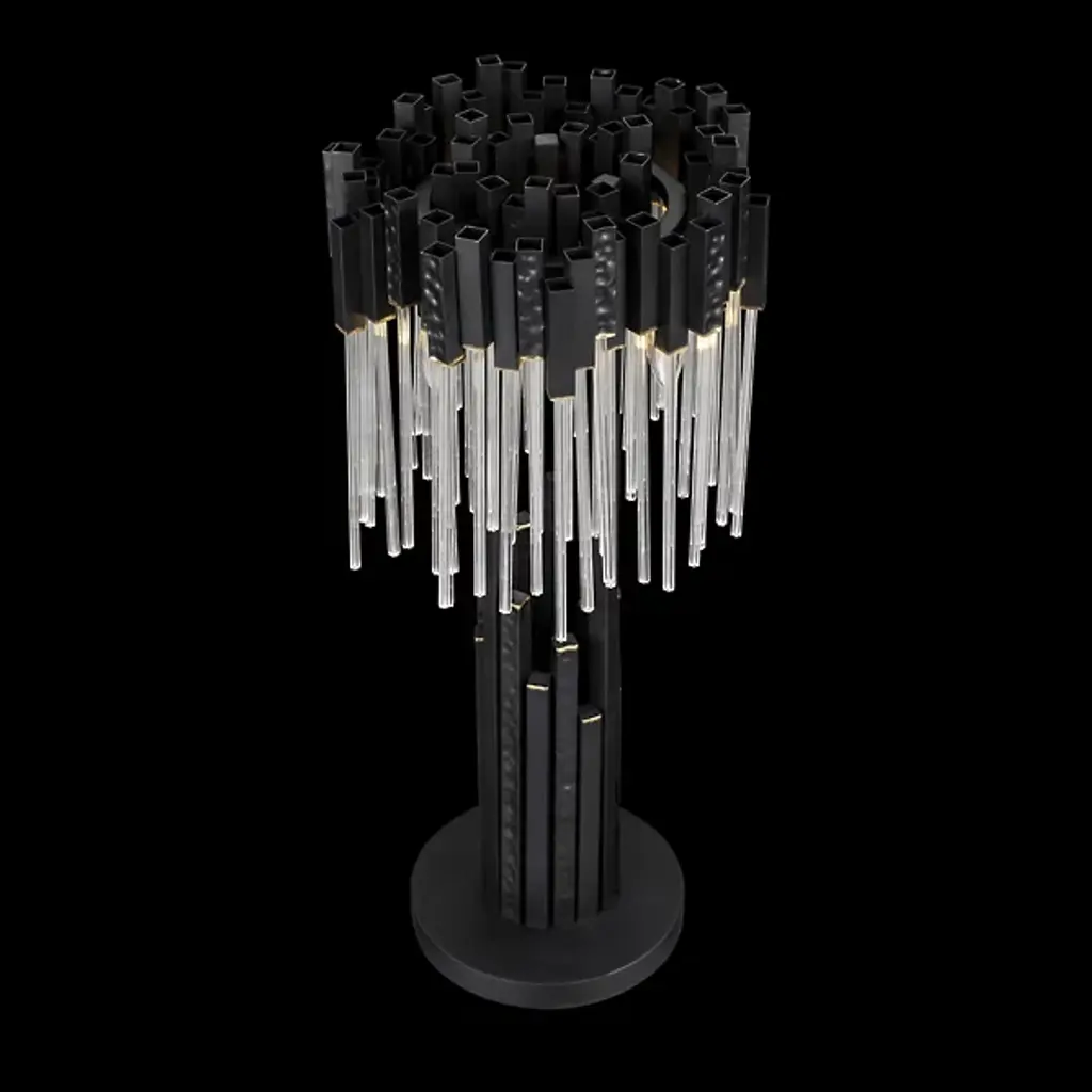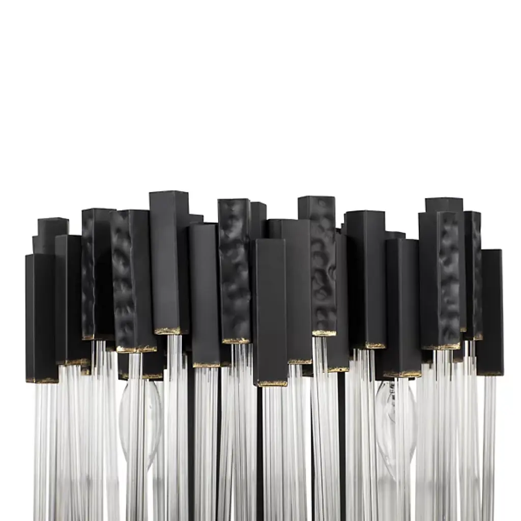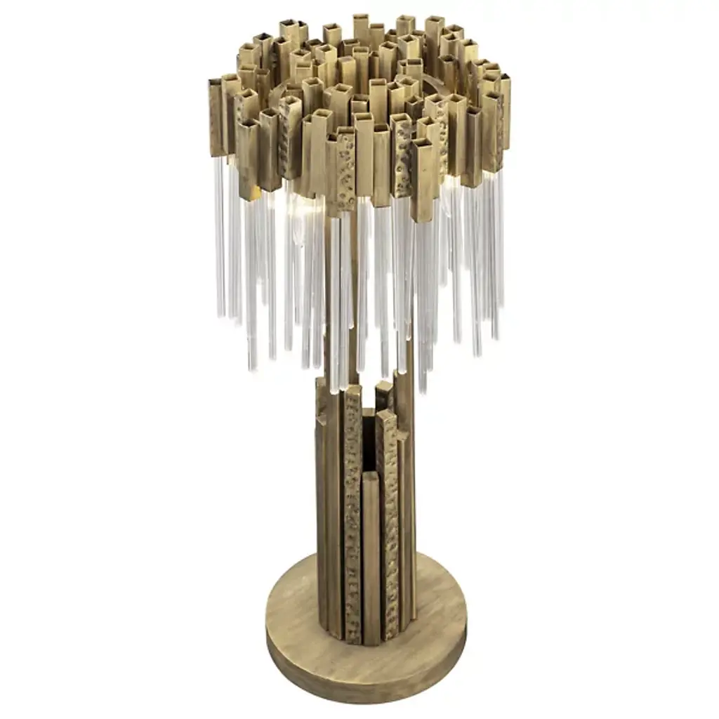 The Matrix Table Lamp from Varaluz is designed by Ron Henderson. Crafted from hand-forged recycled steel, this table lamp is an eco-conscious work of art. The shade, adorned with fluted clear glass rods, complements the contemporary design. Illuminate your space with style and flexibility, as Matrix offers dimmable functionality when used with a separately sold ELV dimmer. Exuding the glamorous aesthetic of the '70s, this lamp features randomly hammered design elements, creating a distinctive look.