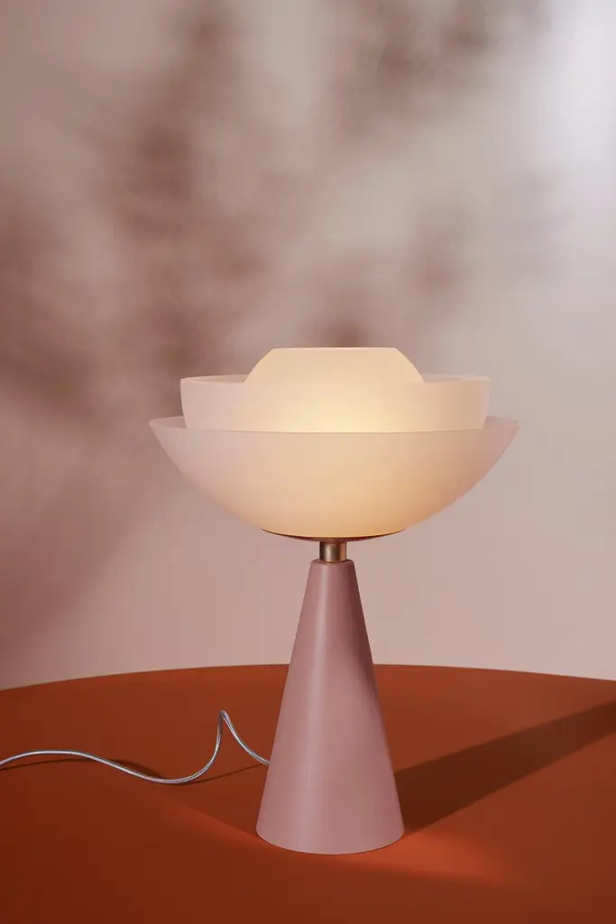 Matte Lotus table lamp by Mason EditionsDimensions: 36 × 48 cmMaterials: blown glass + metalColours: pink, sage green, petrol green, light grey or black base + transparent opal blown glassAll our lamps can be wired according to each country.With its fascinating shape and heady scent, for many Asian cultures, the lotus flower symbolizes elegance, beauty, and grace. The support of this magical flower is a cone in enameled metal, which narrows upwards to embrace the luminous core. Like a bud that opens in the sunlight, Lotus unfolds its blow glass petals, made up of three separate elements. They gently filter the light to create an intimate and cozy atmosphere.Ideal for bedside, desk, and table-use, this modern design lamp is an exquisite example of aesthetics combined with functionality.Mason Editions is an Italian company specialized in the production of design furniture, lighting solutions, and accent pieces. Born from the lifelong passion for lighting and entrepreneurial spirit of Fabio and his partner Silvia, Mason Editions places itself halfway between fine art and exquisite craftsmanship. A collection of lighting, design objects, and furnishing accessories, signed by artists Serena Confalonieri, Martina Bartoli, and Matteo Fiorini, head of the creative direction. Mason Editions comes from the experience of an Italian lighting company placed in the Veneto region. This new brand of furniture elements was born from the meeting between the entrepreneur Fabio Mason and three international designers who designed the first collection for a sophisticated public. Therefore the collection wants to be eclectic and timeless. The material contrast and fresh design, with essential shapes, mark the mason editions collection. In conclusion, the elegant Italian sign highlights proposals suitable for all environments. Mason editions is a set of experiences, artisans, and productive know-how that creates a capable system.