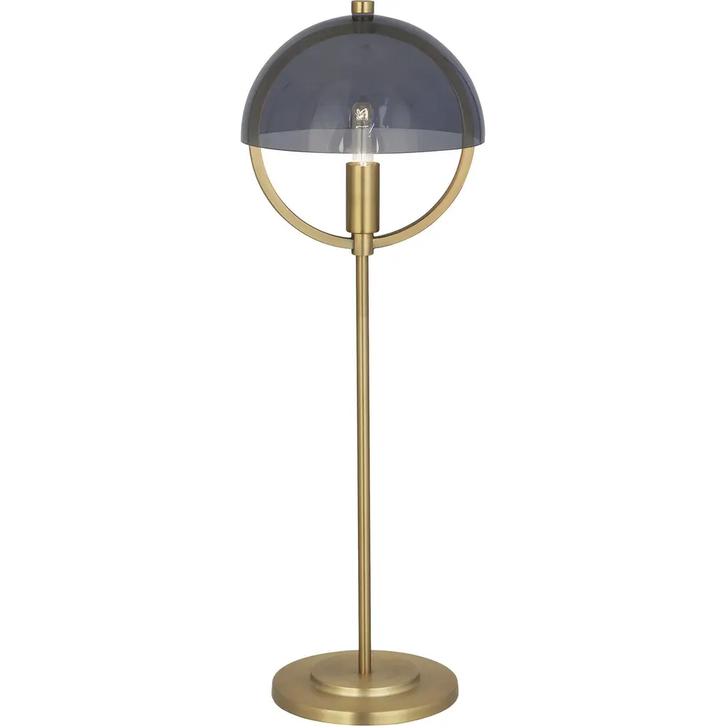 The Mavisten Edition Copernica Table Lamp from Robert Abbey excites the curiosity and adds depth to one's décor, all while brightening the room. It takes a page from mid-century design in its refined composition and astronomic charts in its topping curves. A metal stem holds up these curves with a slender profile to take up minimal space on the table. The circular metal ring on top moves the eye around like the model of a planet spinning on an axis. The glass dome shields the eye from glare scatters a soft light and imagines a planet-like silhouette.