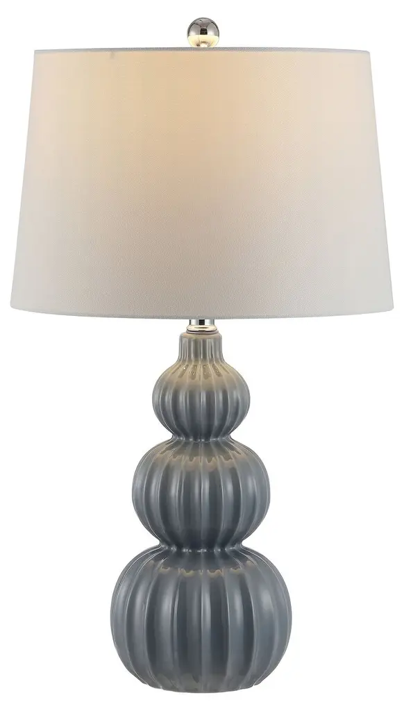 With its scalloped triple-gourd body, this table lamp brings both classic elegance and a dash of drama to any setting.