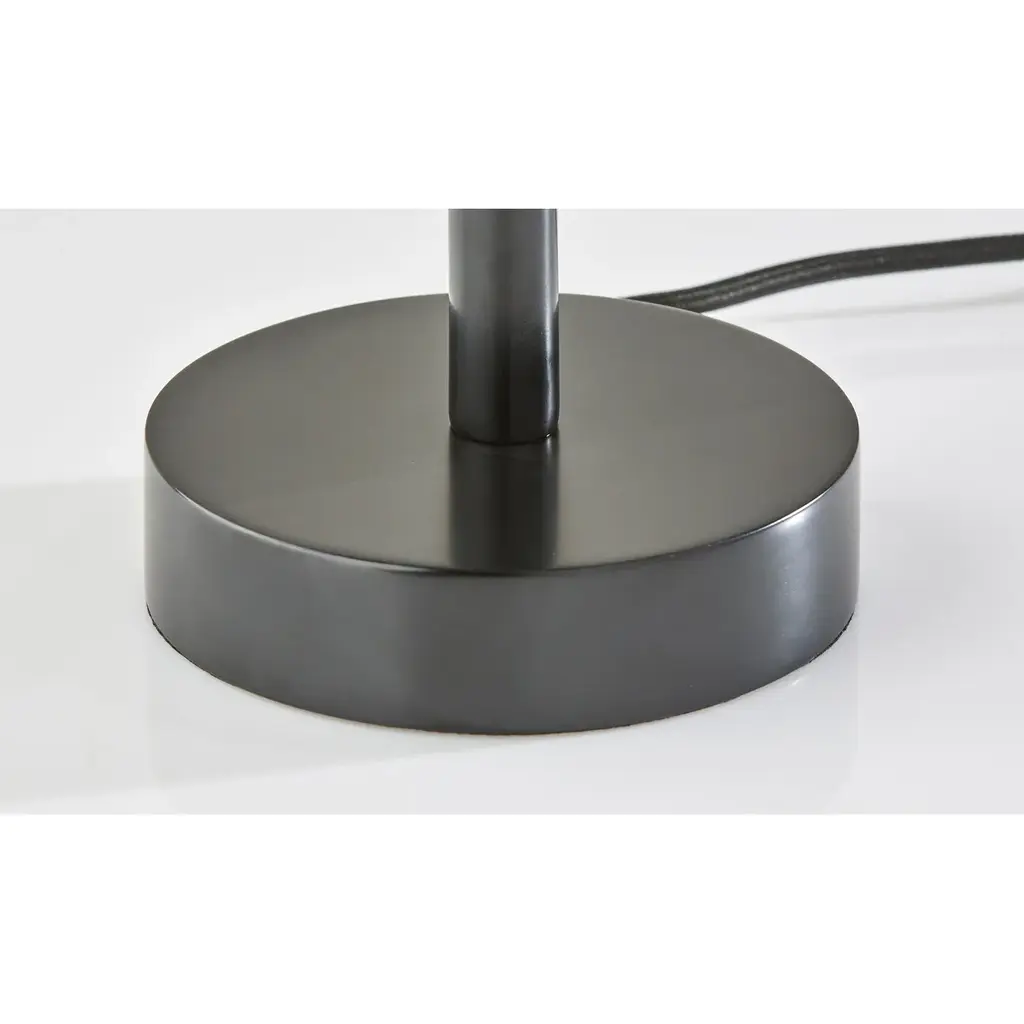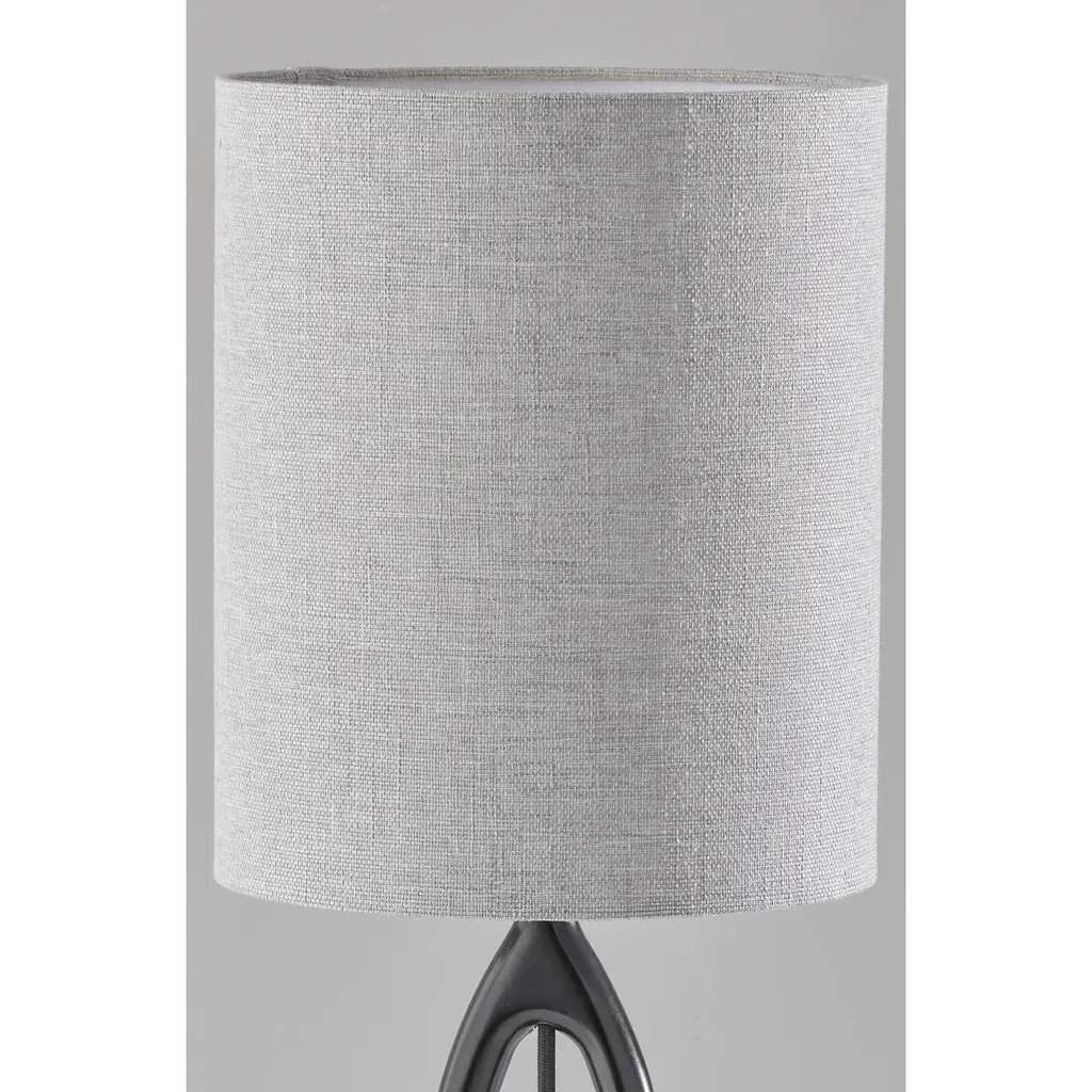 The Mayfair table lamp's elegant, modern design adds style to any space. A 6" round base supports a contoured silhouette fashioned of black wood, while the open design spotlights the grey fabric-covered power cord running through the center. Topping the lamp is a textured, light grey drum shade that softly diffuses the light from a 100W bulb. The lamp is easily operated by a rotary socket switch. To complement coastal or farmhouse styling, the table lamp is also available with natural wood construction and a light beige shade. Complete your décor with the coordinating Mayfair floor lamp.