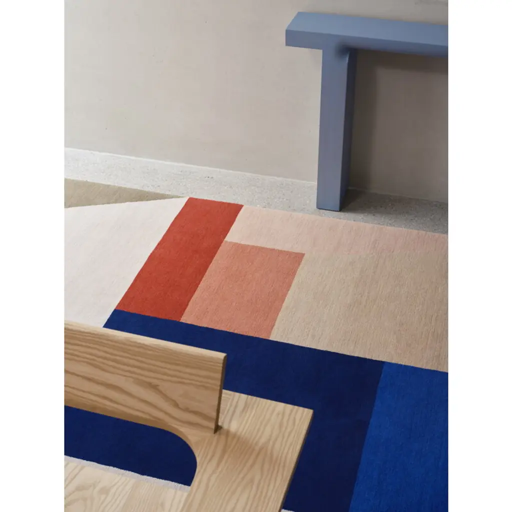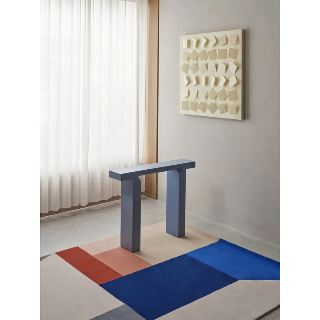Mattiazzi’s MCA1 Zona is a modern wool rug designed by Annahita Kamali and Florian Böhm, bringing a playful interplay of bold colors and shapes into the living space. The hand-knotted, smooth-surfaced rug features a graphic pattern that subtly divides the room into smaller zones, each with its own character – perhaps the coffee table feels most at home beside the red area, while a floor lamp naturally belongs along the blue stripe? The Zona rugs are hand-knotted in Nepal using traditional techniques passed down through generations. The largest rugs feature close to one million knots – the equivalent of one megapixel in the digital world! The colors are entirely non-toxic and are mixed by hand, guided by the local dye master’s skill and intuition.