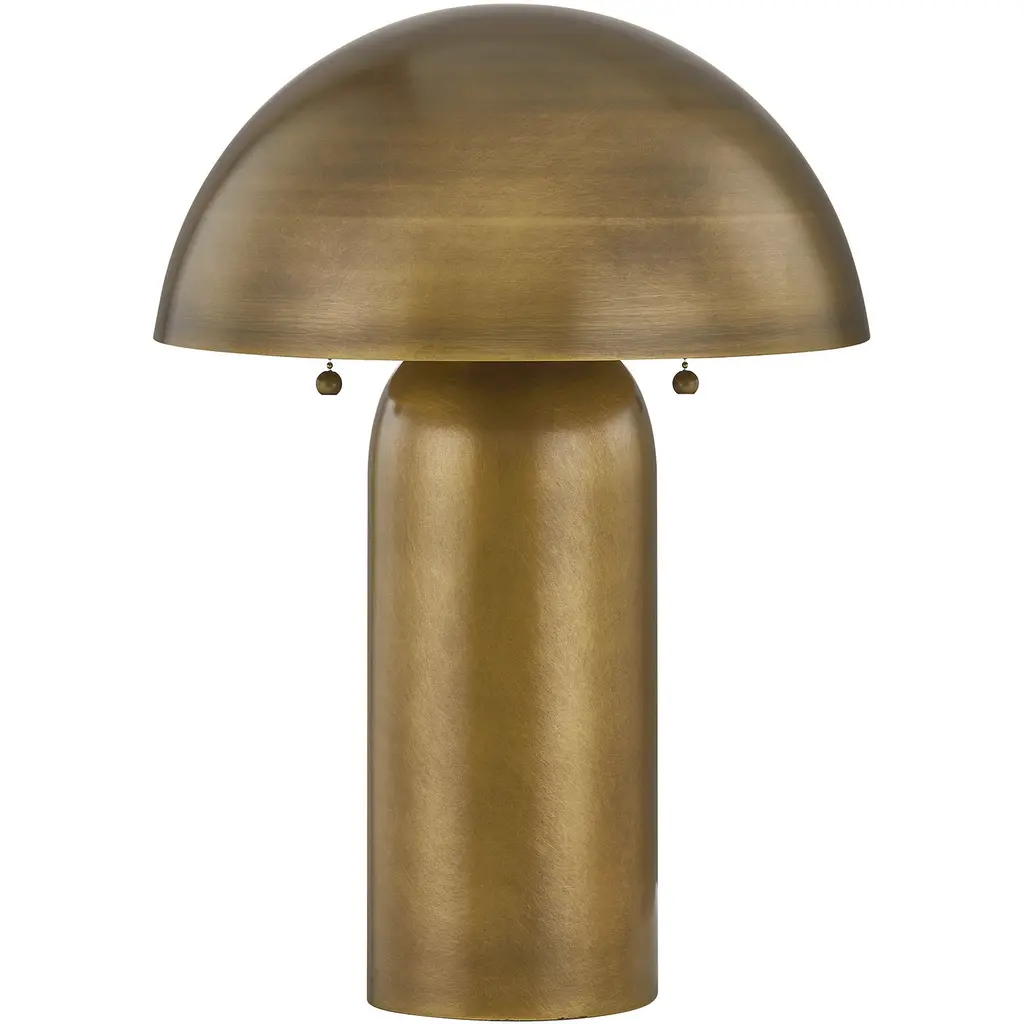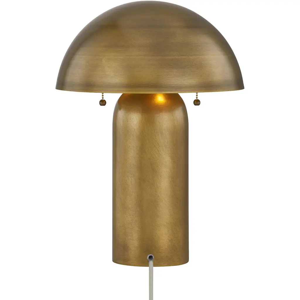 Midcentury modern, contemporary cool, eclectic elegance no matter your style, this McKey table lamp by Coco & Dash fits you perfectly. Its half moon shade, pull chains and bullet-shaped body are all finished in plated brass to create a highly dramatic and concentrated glow. This lamp is 19" in height and 12.5" in width. It uses two standard size bulbs of up to 100 watts per bulb. Bulbs not included.