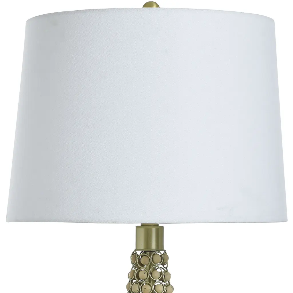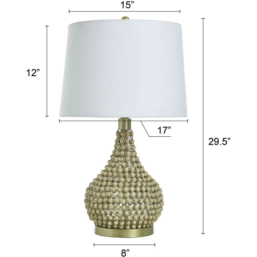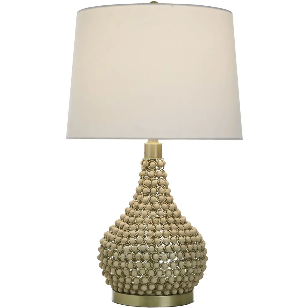 Medero Beaded Table Lamp - Fir Wood Beaded and Matte Gold Body - Off-White Shade
