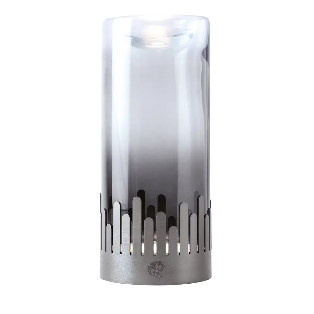 Medium lamp in combination with Venetian "Murano" graded smoked blown glass and satin grey nickel stainless steel base.