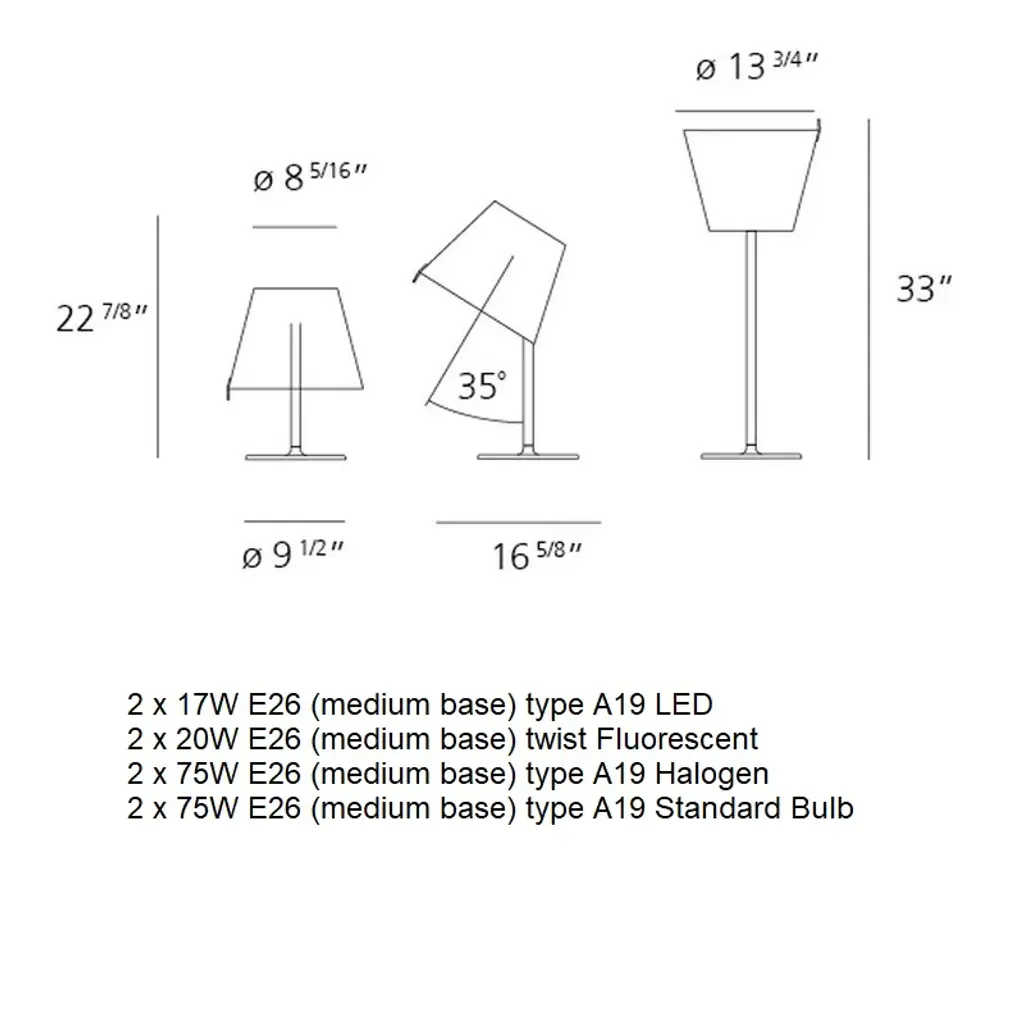 Table standing fixtures with adjustable diffuser for direct and indirect lighting. Features