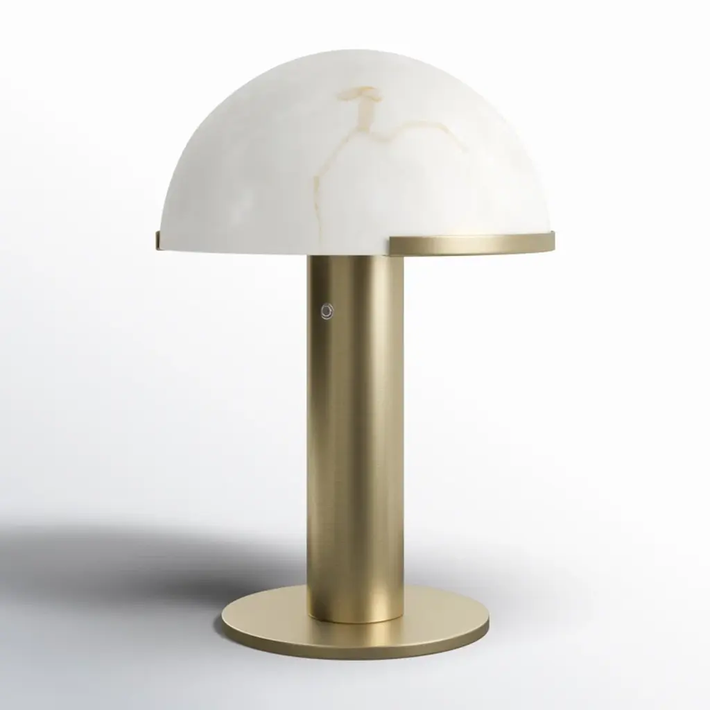 Pairing a graceful silhouette with alabaster stone and rich metal, the Melange 12” Rechargeable Table Lamp reinvents the classic lamp design into a versatile, petite and portable profile. Its hand-carved alabaster shade is cradled by prongs of rich metal that flow effortlessly into the base, showcasing meticulous craftsmanship and sophisticated design. Due to the distinctive qualities of natural alabaster, each lamp is one of a kind. A 3-way touch dimmer provides full control over the warm glow emitted by its integrated LED light source. The Melange lighting family comprises wall sconces, table lamps, flush mounts, pendants, and chandeliers, which can be showcased together as a complete series or individually as illuminated sculpture.
