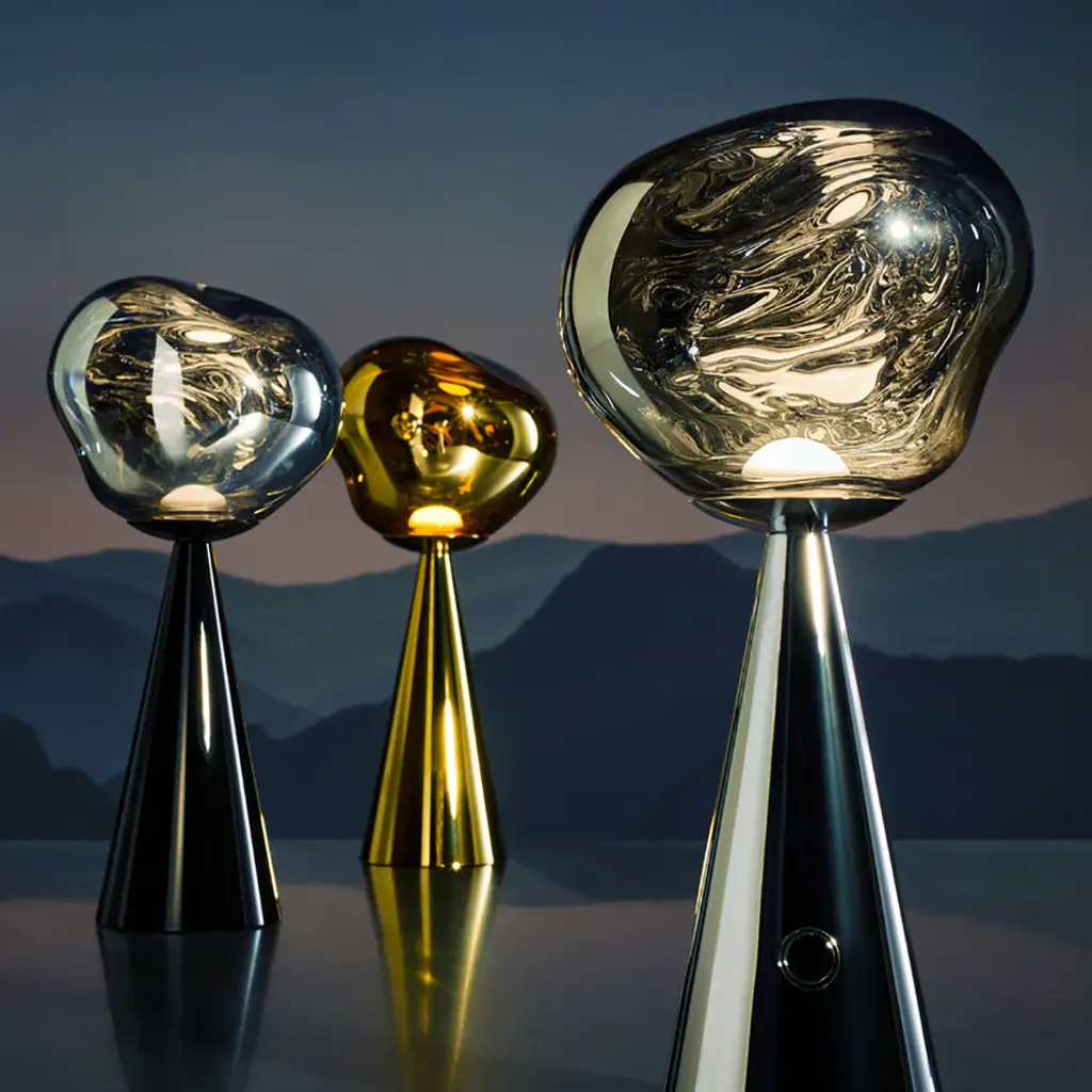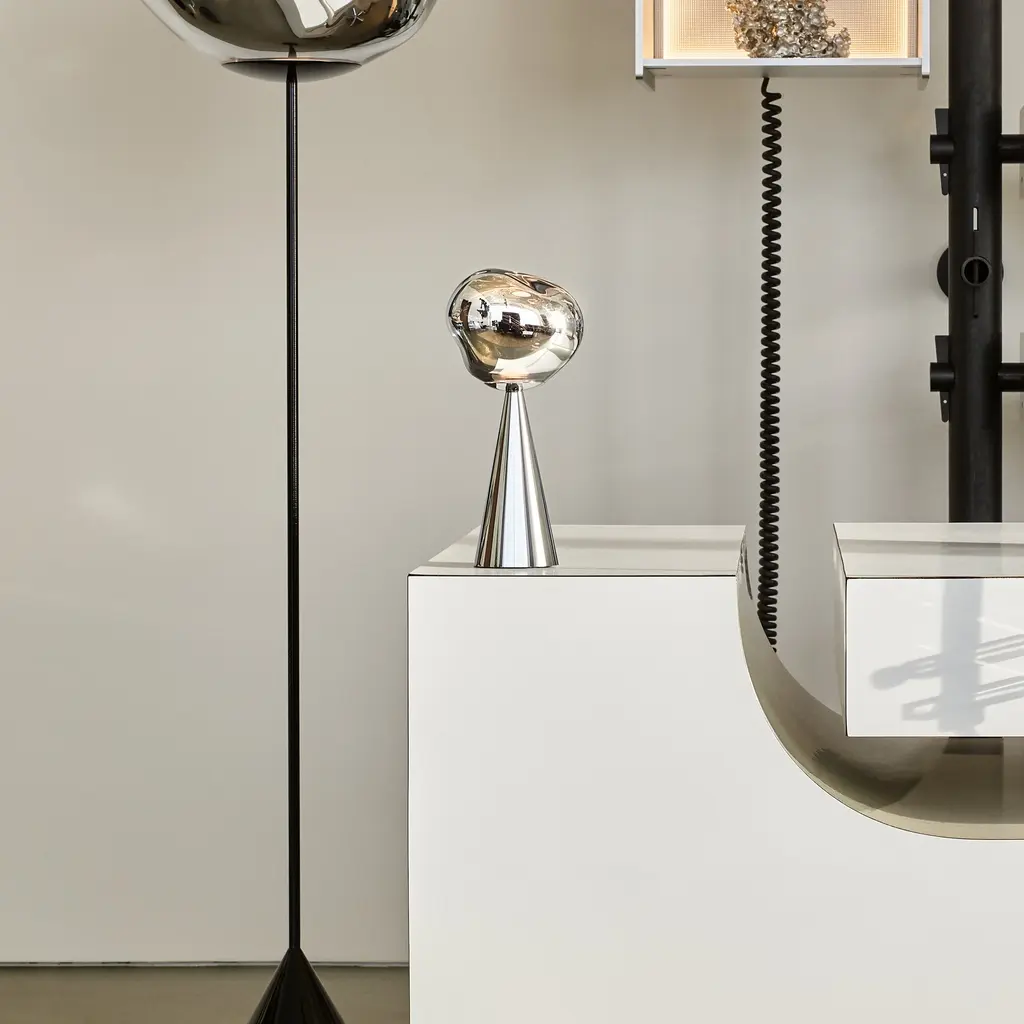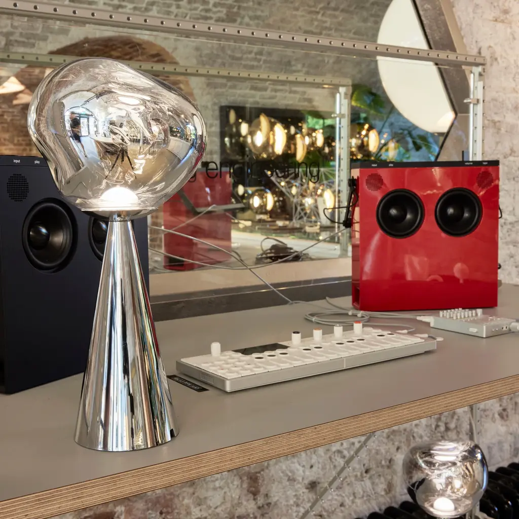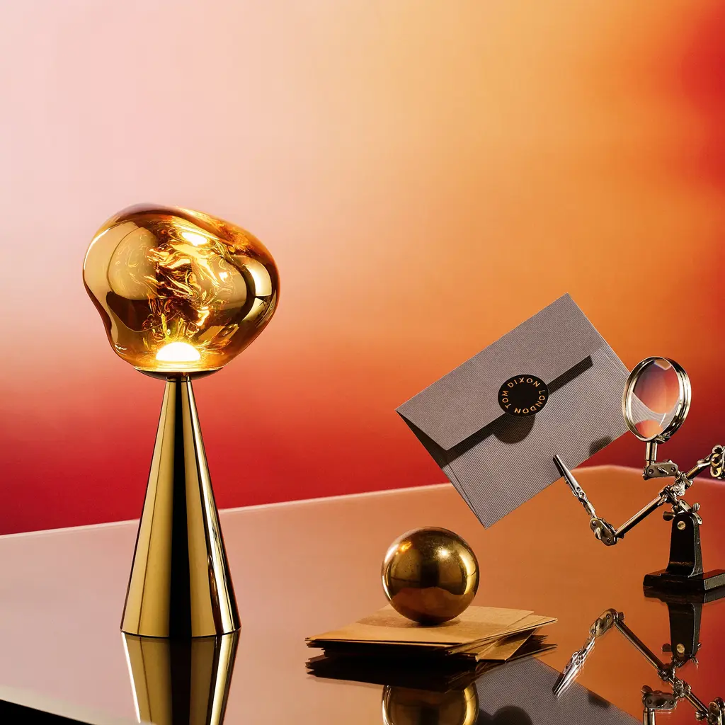 A powerful battery and an energy-efficient LED lend go-anywhere portability to Tom Dixon’s signature Melt, true to the series’ mesmerizing molten-glass effect. For desk, tabletop or even outside to the garden or patio, the lamp brings a diffused glow that lasts up to 10 hours per battery charge—while its sleek range of metallic or black finishes adds extra verve.