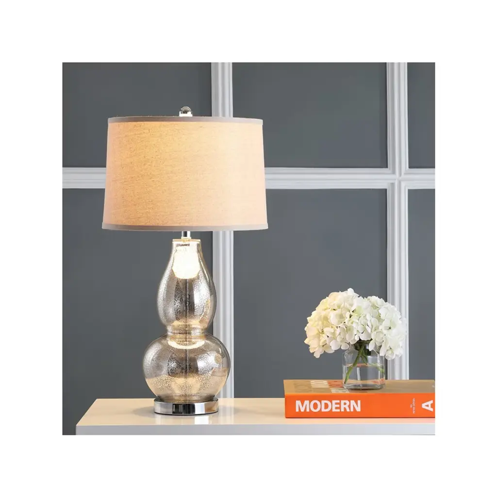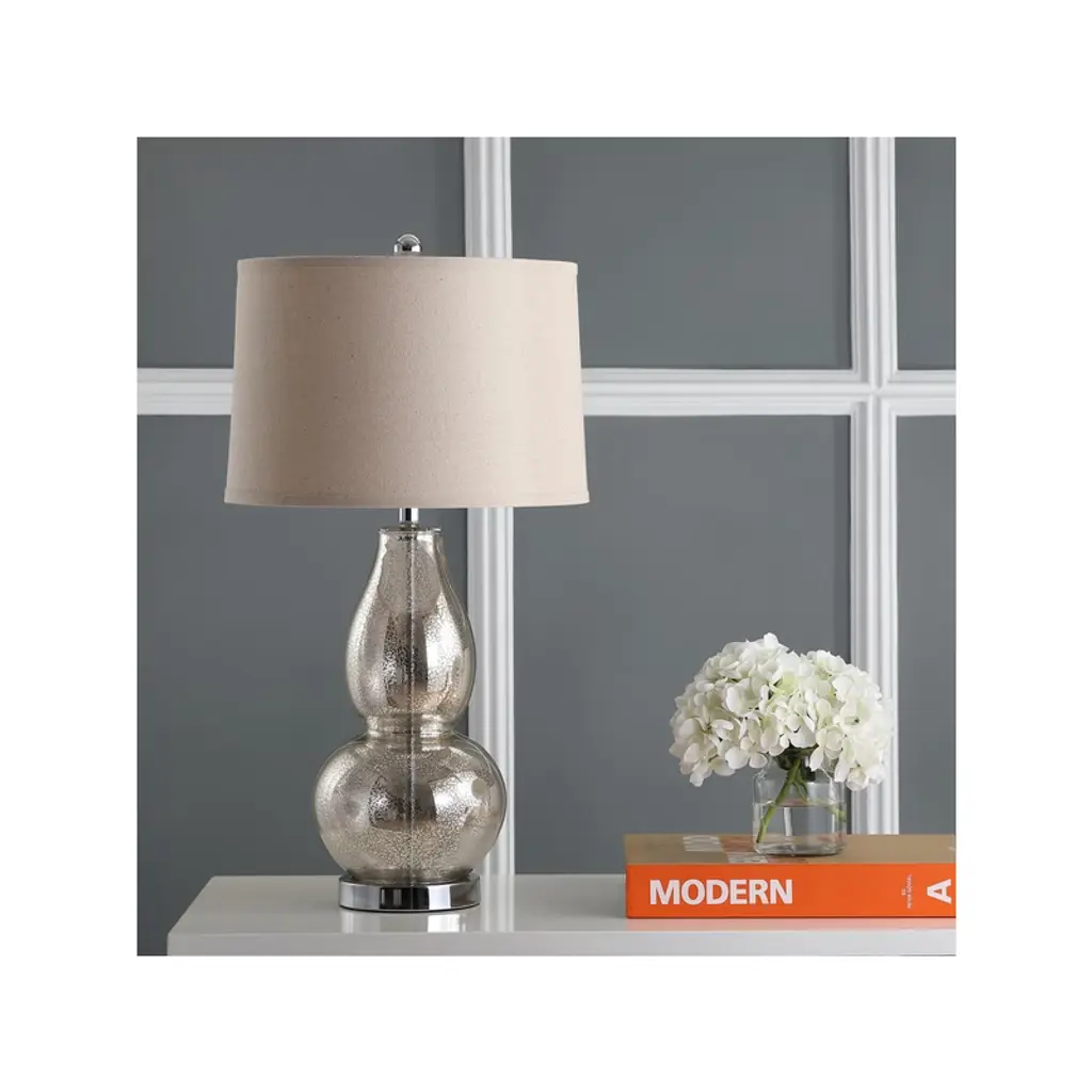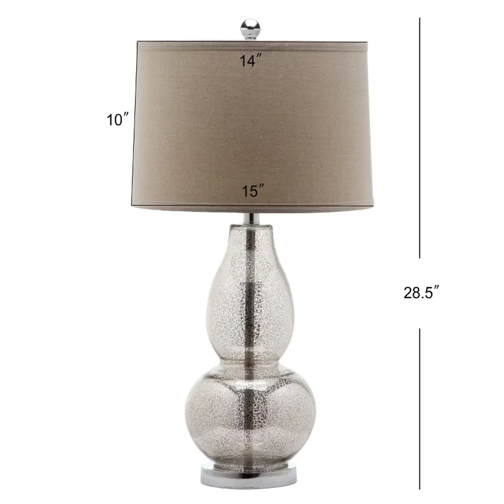 Illuminate your space with the elegant Mercurio double gourd table lamp set. Standing at 28.5 inches, this pair of silver lamps brings a touch of sophistication to any room. The sleek glass design reflects light beautifully, creating an inviting ambiance that enhances your decor. These lamps offer both style and function, making them a versatile addition to your home. Perfect for living rooms, bedrooms, or offices, their modern look complements a variety of interior designs. The distinctive gourd shape adds an artistic flair while the silver finish provides a contemporary edge. Transform your living space with this stunning set of lamps. The Mercurio double gourd table lamps are not just lighting solutions; they are a statement of style and elegance. Elevate your home decor with these stunning pieces that blend form and function seamlessly.