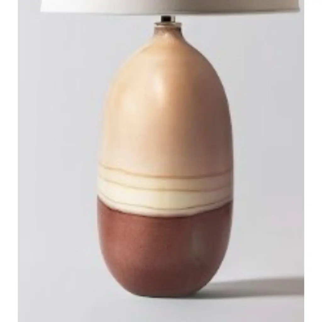 Mercury lamp in sand and rust by Elyse GrahamDimensions: D26 x H51 cmMaterials: Plaster, Resin, Cotton rag Paper, brass, Nickel. Hardware: Polished nickel-plated brass UNO threaded socketwith turn key switch, in-line dimmer.molded, dyed, and finished by hand in LA. customizationavailable.all pieces are made to order.All our lamps can be wired according to each country. If sold to the USA it will be wired for the USA for instance.This collection of lamps is inspired by striated landscapes causedby glacial erosion as well as the beautiful colors found in foliatedmetamorphic rock and the play of light along the horizon at dawnand dusk.The base of each lamp is hand-cast with hydrocal plaster inside of a unique balloon shape. The interior of each piece is poured with layers of resin, impregnating the plaster with added strength and hardness. Finally, each base is hand-dyed by the artist with layer after layer of custom mixed pigments and then sealed with a UV resistant acrylic coating. Our shades are made by hand using a heavyweight cotton rag paper and attached to a nickel-plated swivel fixture with a turn switch. An in-line dimmer switch on the cord provides adjustable light settings. Due to the nature of the UV sensitive materials in our lamp bases we recommend using LED lightbulbs exclusively.Meet Our TeamElyse Graham is the founder and creative director of the studio. Driven by Elyse’s unique vision of building a studio that fosters and emphasizes connection, play, and experimentation (of people, processes, and in turn the objects created and shared) our small team works closely and collaboratively on each project. Elyse received a BA in sculpture and semiotics at Brown University. After years of making sculpture and running a business in jewelry design, Elyse decided to merge her separate practices and redirect her attention toward collectible design in 2013. The creative trajectory of the studio is heavily influenced by Graham’s background in fine art, specifically her interest in process-driven and material-based artwork. The studio’s vocabulary of shapes, patterns, and forms comes from a lineage of unconventional processes Graham has developed and built for working with plaster and resin. Graham shares her studio as well as her home with her husband, Lewis Mauk and their daughter, Eero. Miller Robinson is head of our production department. From pigmenting and casting materials for all of our products in plaster and resin to graphic and production design, they wear many hats in our studio. Miller joined our team in 2014 and has been an integral part of designing many of our experimental processes that have lead to the creation of our unique MetaMATERIAL. Like Elyse, Miller has a background in material and process-oriented making, which led to an instant connection and collaborative understanding between the two. Miller received their BFA from Otis College of Art and Design with a focus on painting, installation, performance, and writing. Their individual art practice focuses on the preservation and potentialities of underrepresented histories and encompasses objects, garments, actions, tattooing, and books. Their personal work has been exhibited in Los Angeles at the Southwest Museum, Los Angeles Municipal Art Gallery, Heritage Square Museum, and with Los Angeles Contemporary Exhibitions (LACE), as well as HORESEANDPONY Fine Arts in Berlin.Lewis Mauk is our studio and operations engineer. Working on facilities and production design as well as engineering and leading all of our large-scale constructions and installations, Lewis’ unique set of technical skills gives form and structure to our studio’s unconventional ideas and processes. Lewis has been working behind-the-scenes since the creation of the studio but joined our team full-time in 2020. Consistent with the rest of our team, Lewis has a background in process-driven fine art and has extensive training in woodworking, printmaking, and photography. He received a MFA from CalArts and has worked across the fields of education and fabrication. Lewis’ combined interest in the creation of personal archives mixed with his commitment to sustainable life practices, has brought a focus and important emphasis on designing studio projects and processes that imagine ways to reduce and reuse studio material fragments.
