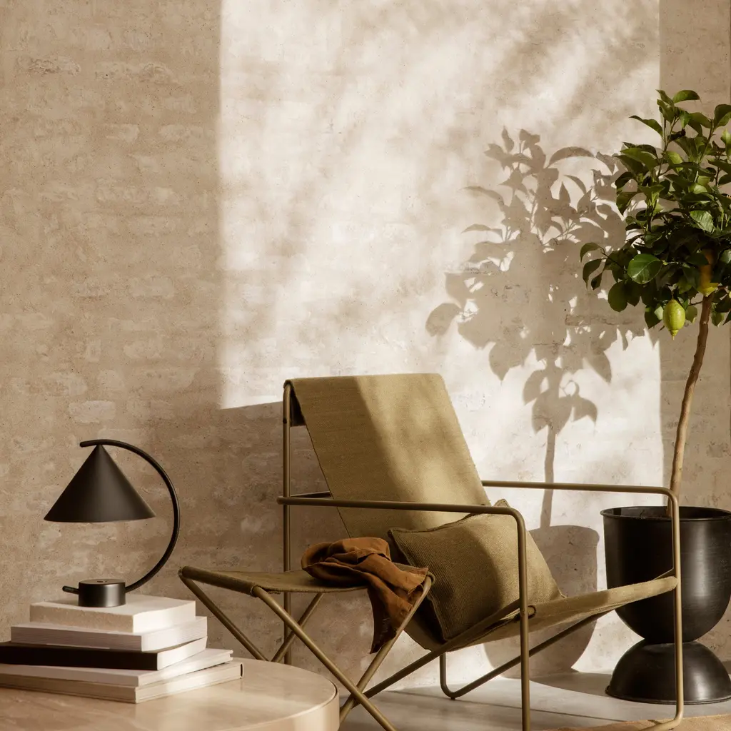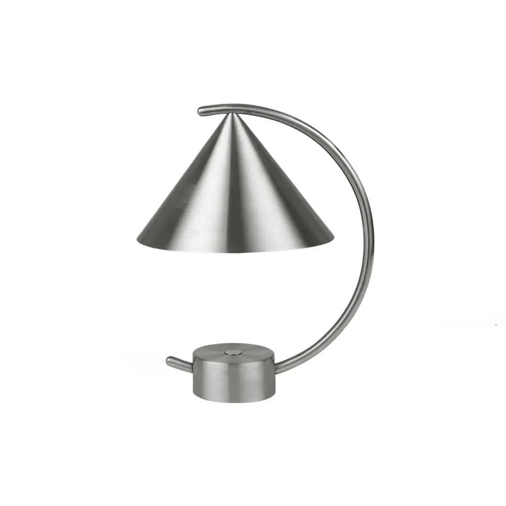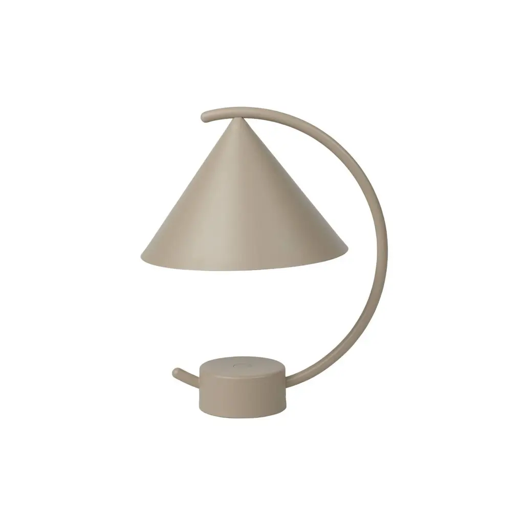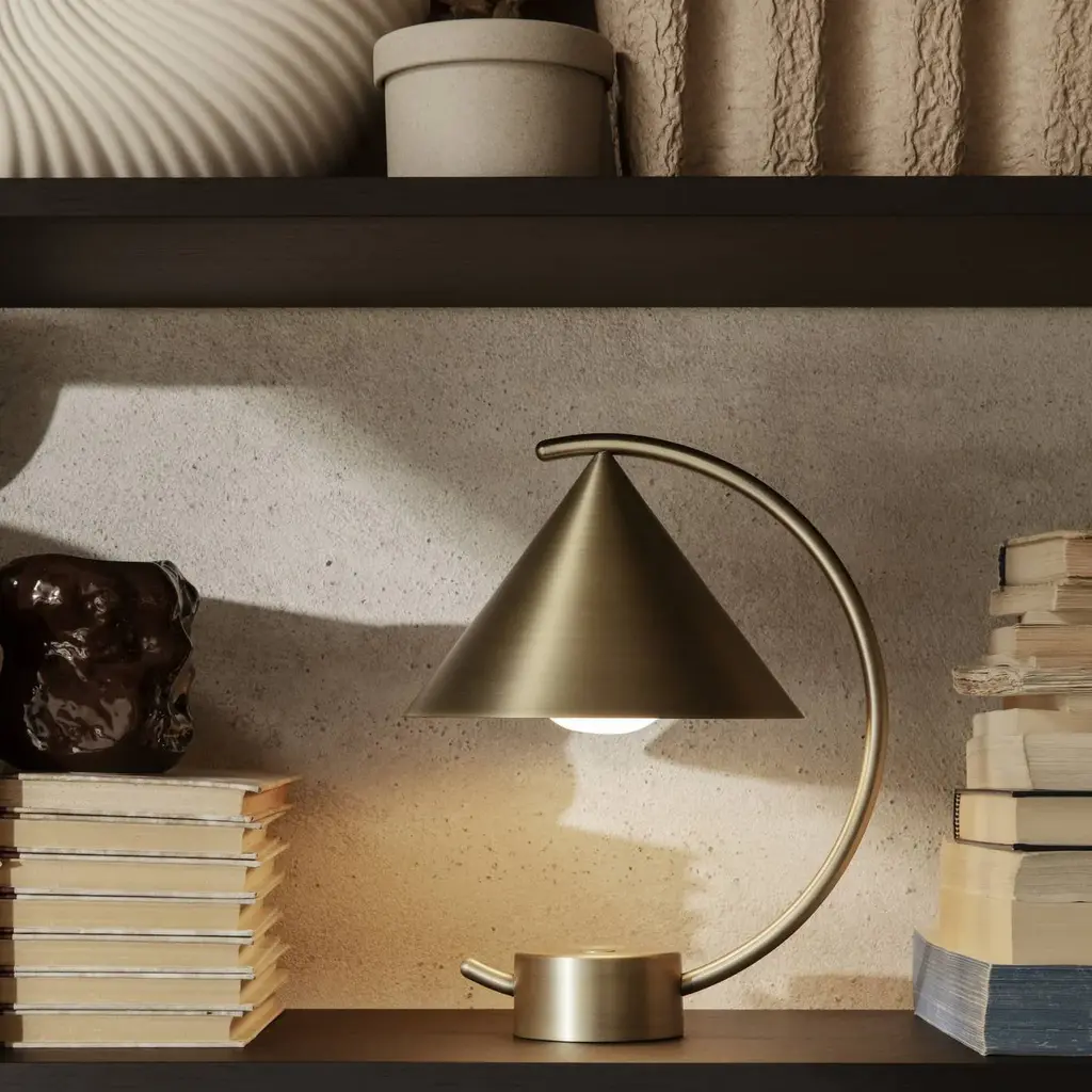 Meridian is a portable and fully dimmable lamp with an intriguingly graphic silhouette based on 3 classic geometric elements. Made in collaboration with design studio Regular Company, it offers easy, hassle-free charging and provides up to 12 hours of light at a time. The non-removable LED light source provides warm white illumination (with a service life of 30,000 hours or about 20 years) and the lamp comes in a cashmere beige or black powder-coat finish or golden polished brass.