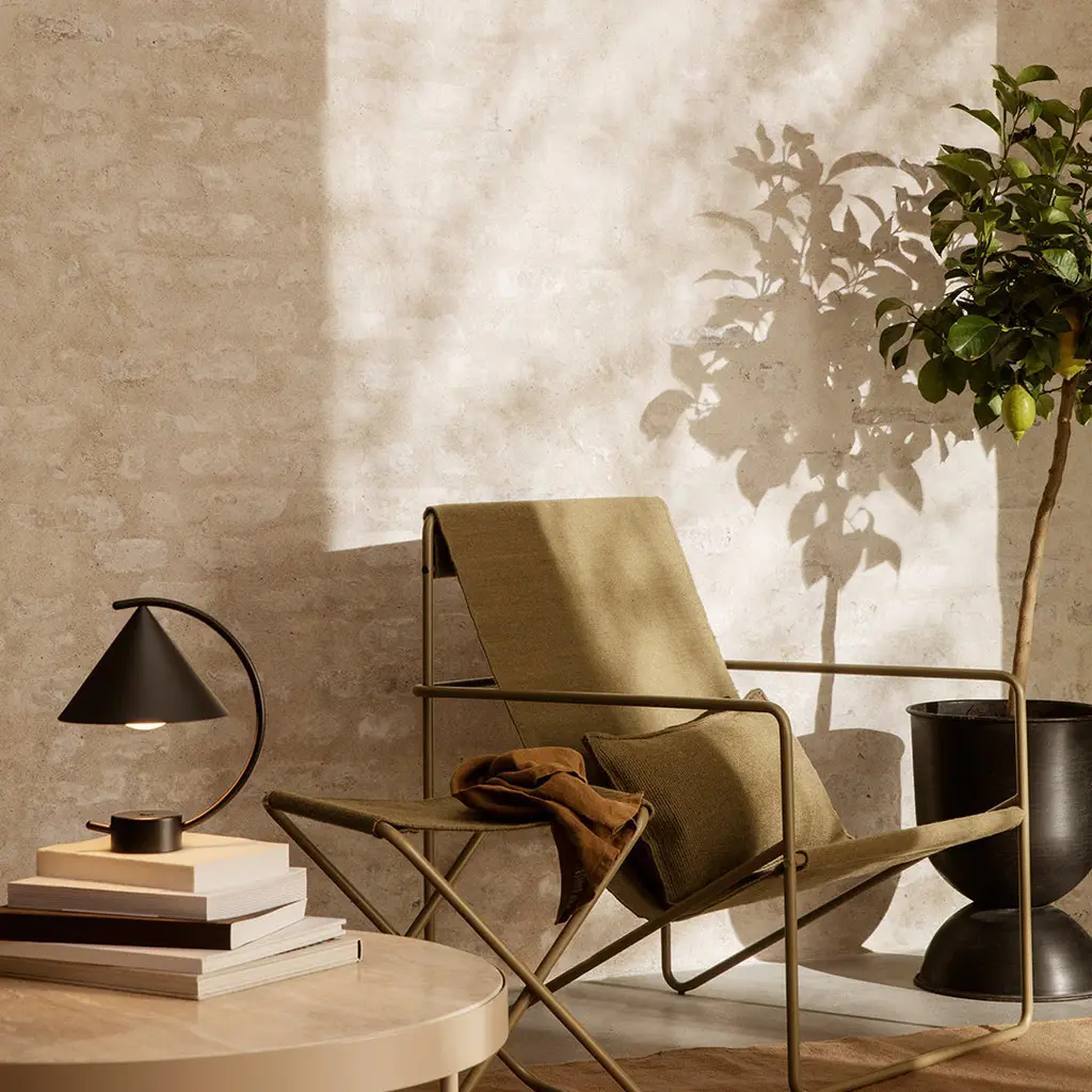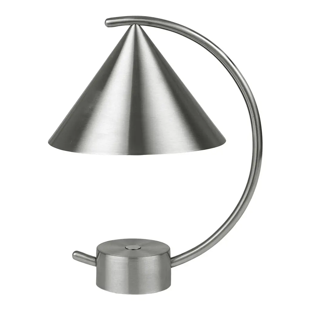 The Meridian Lamp presents a portable, dimmable lighting solution that works in a multitude of settings. Made in collaboration with the design studio Regular Company, the intriguing, sculptural form of the Meridian Lamp is based on three simple geometric elements. Combined, the lamp presents a clean, modern expression. The lamp offers easy, hassle-free charging, and provides up to 12 hours of light at a time. UL listed.