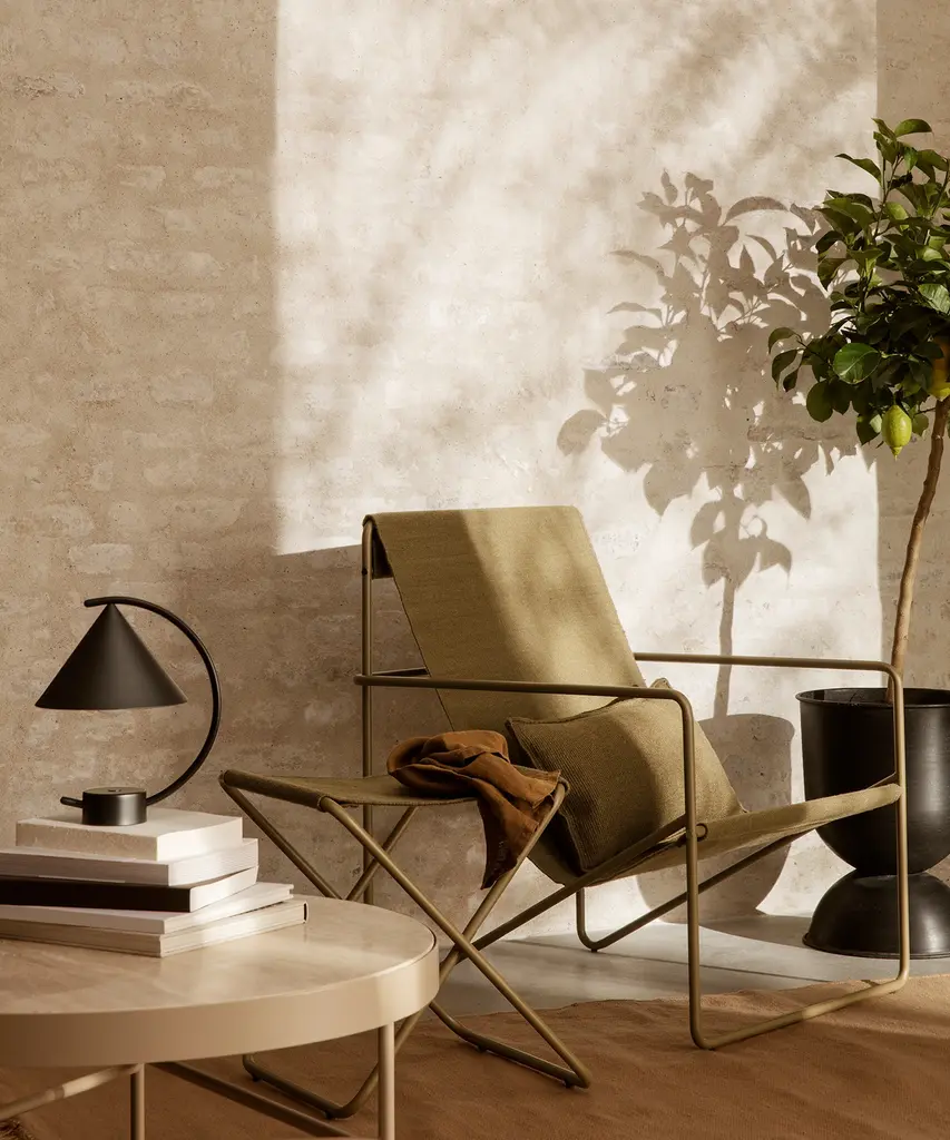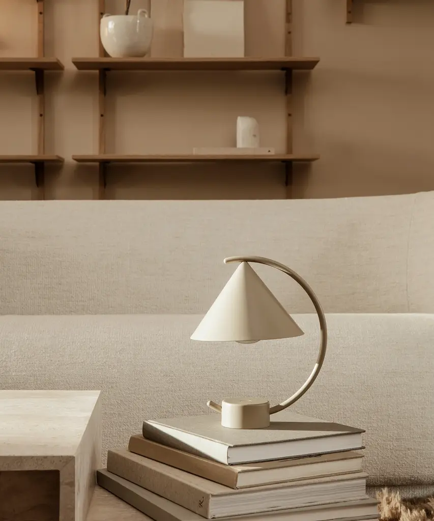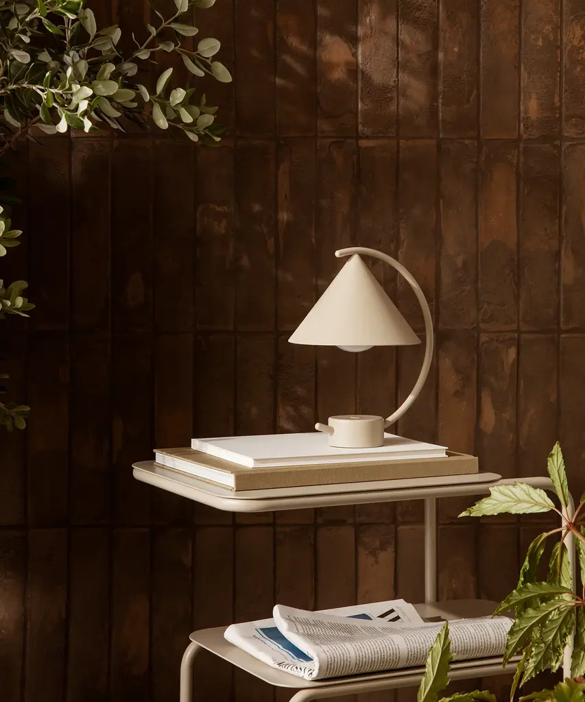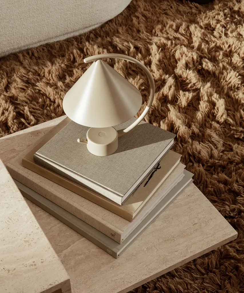 The Meridian Lamp presents a portable, dimmable lighting solution that works in a multitude of settings. Made in collaboration with the design studio Regular Company, the intriguing, sculptural form of the Meridian Lamp is based on three simple geometric elements. Combined, the lamp presents a clean, modern expression. The lamp offers easy, hassle-free charging, and provides up to 12 hours of light at a time. Designed and Produced by the Copenhagen-based studio Ferm Living.