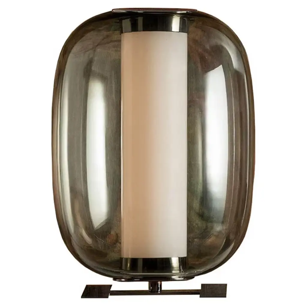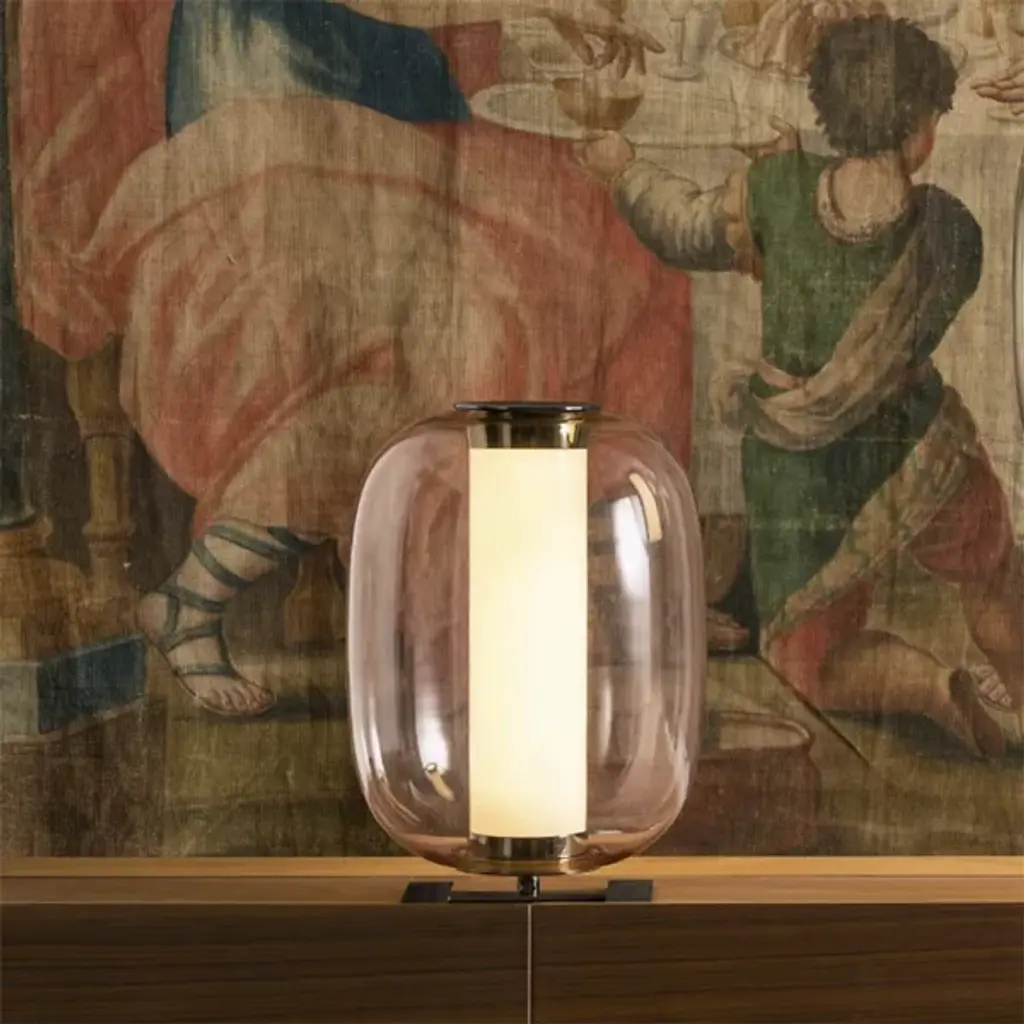 The "shape of light" is at the heart of the Meridiano LED Table Lamp from FontanaArte and designed by Gabriele and Oscar Buratti. Its sign began with the Equatore lamps of 2017 and expanded it with Tropico and Meridiano. These stunning designs combine glass and metal to capture, soften, and scatter light in mesmerizing ways. As light dances through layers of opaline, colored, and transparent glass, it creates enchanting patterns and warm, welcoming atmospheres, perfect for adding a touch of magic to any space.