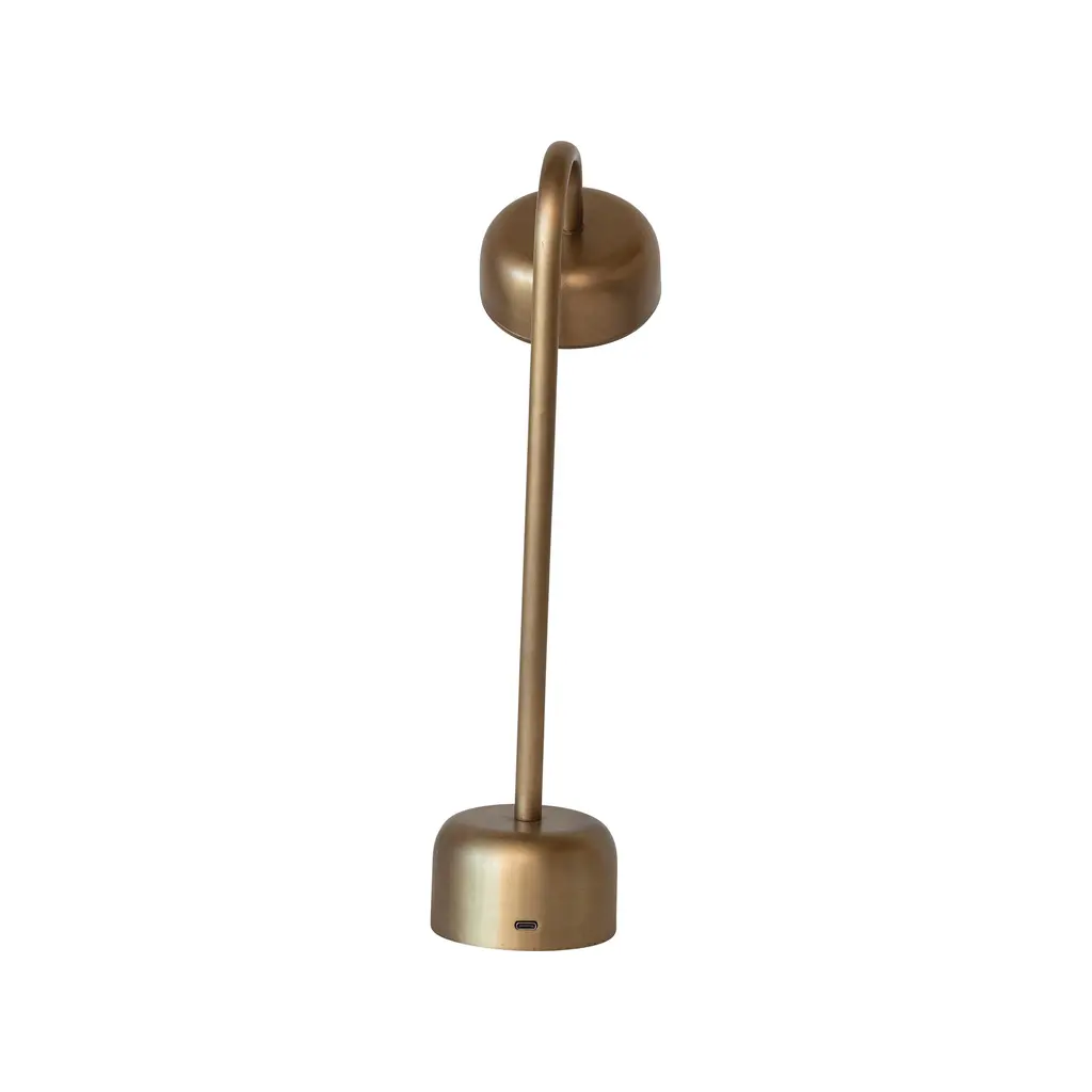 This antique brass metal LED table lamp is a practical and elegant addition to any space. Its antique brass finish adds a touch of vintage charm, while the energy-efficient, bright, and long-lasting LED light can be easily controlled with a touch on the base. The device features an on/off switch at the bottom, USB Type C, 30,000 hour LED life, and a 2.4 watt power consumption. The adjustable head allows for tilting and rotating of the light, directing it where needed. The lamp comes with a 9-hour battery life and can be recharged. Its cable can be plugged into any standard outlet or power bank, making it a versatile and functional accessory that enhances room style and ambiance.Features: