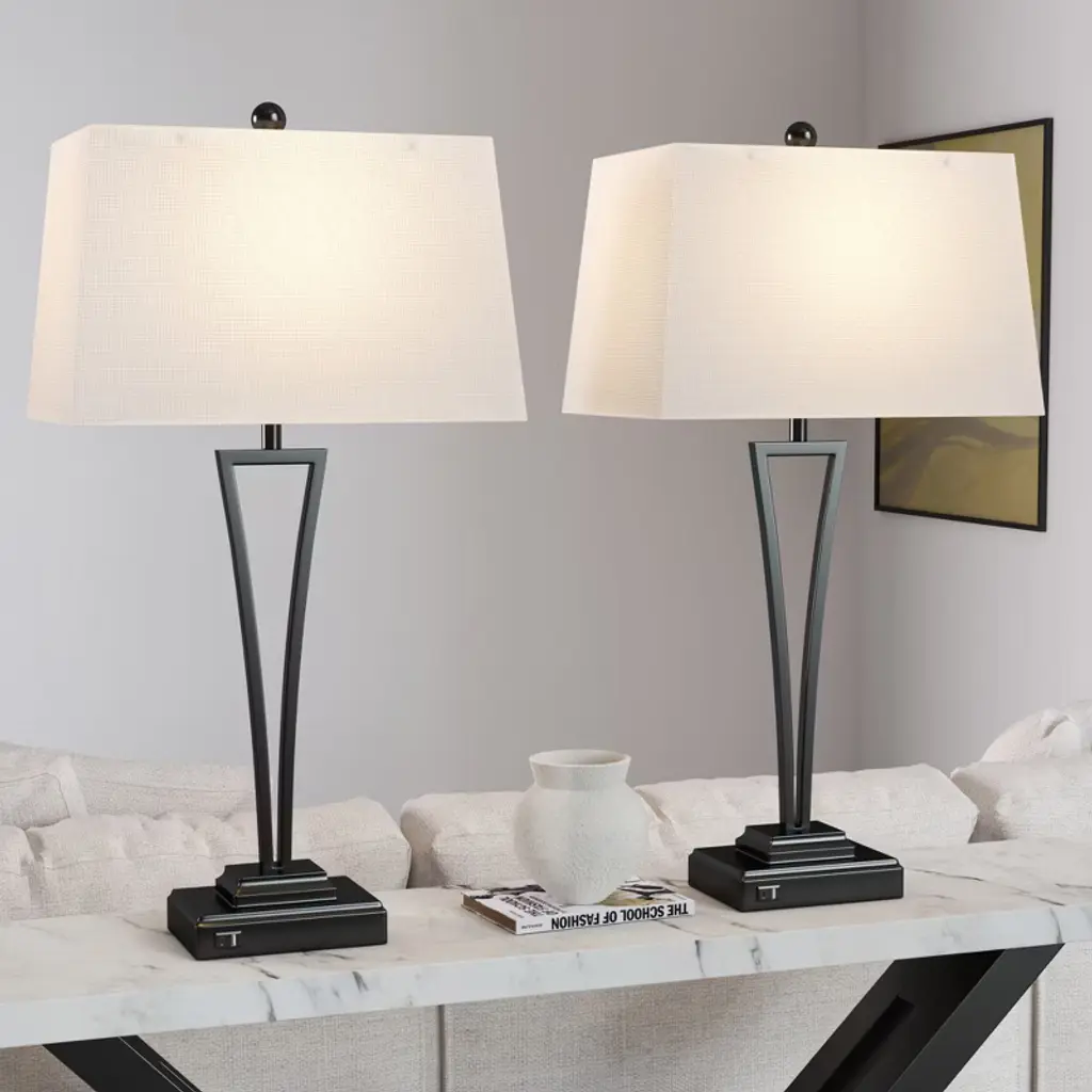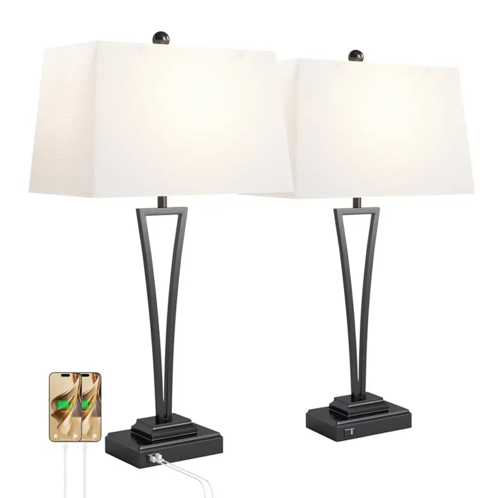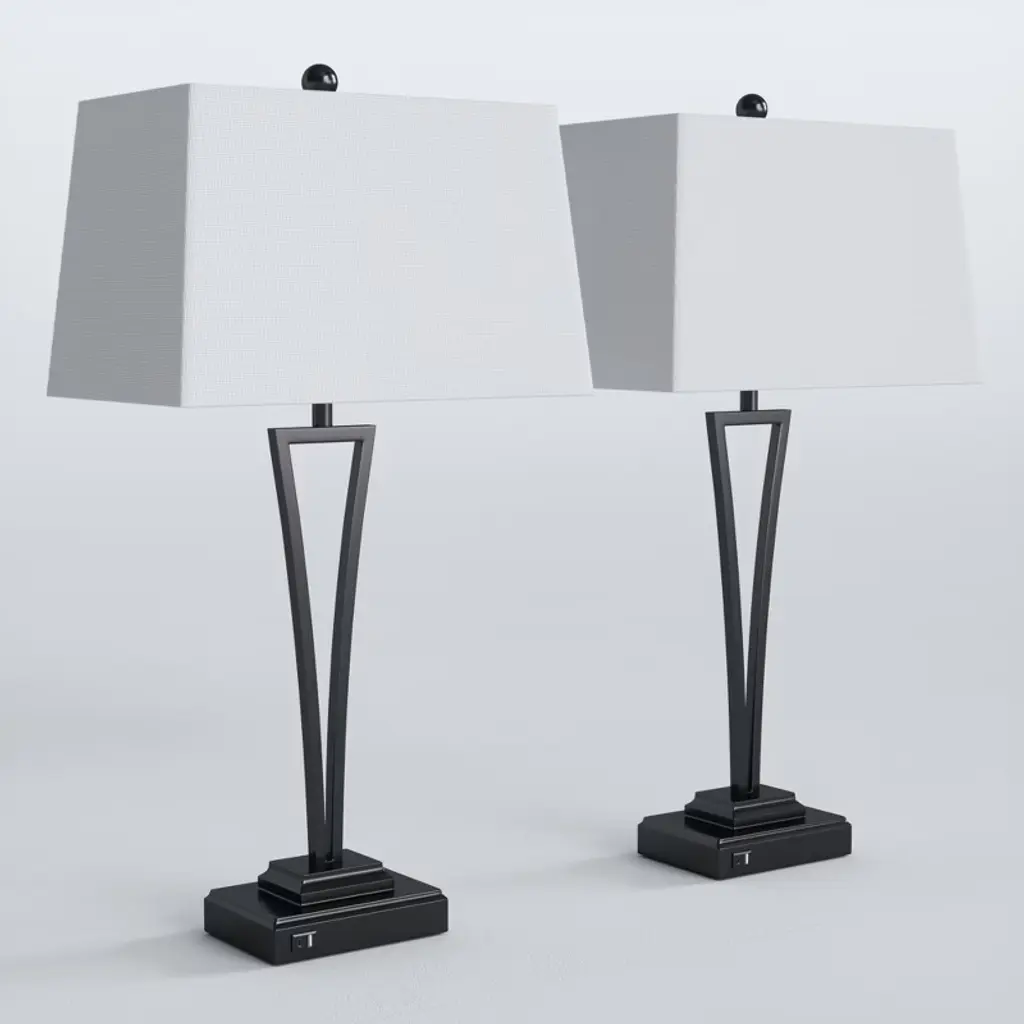 Elevate your home lighting with this set of two 30.5" Metal USB Table Lamps. Featuring a sturdy metal base and a sleek, timeless design, these lamps bring both style and functionality to your living room, bedroom, or office. Each lamp is equipped with a convenient USB port, allowing you to charge your phone, tablet, or other devices while keeping your space neat and organized. The tall profile provides ample illumination, making them perfect for reading, working, or creating a warm, inviting ambiance. Designed for versatility, this matching set complements a variety of décor styles, from modern to traditional.