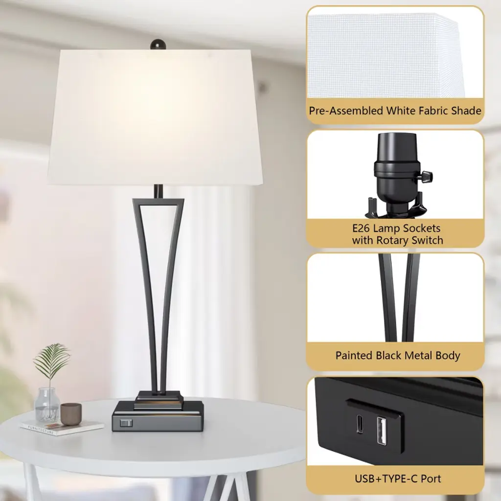 Metal Modern Table Lamp With Usb Ports For Living Room/bedroom(set Of 2) Black 30.5"-maxax
