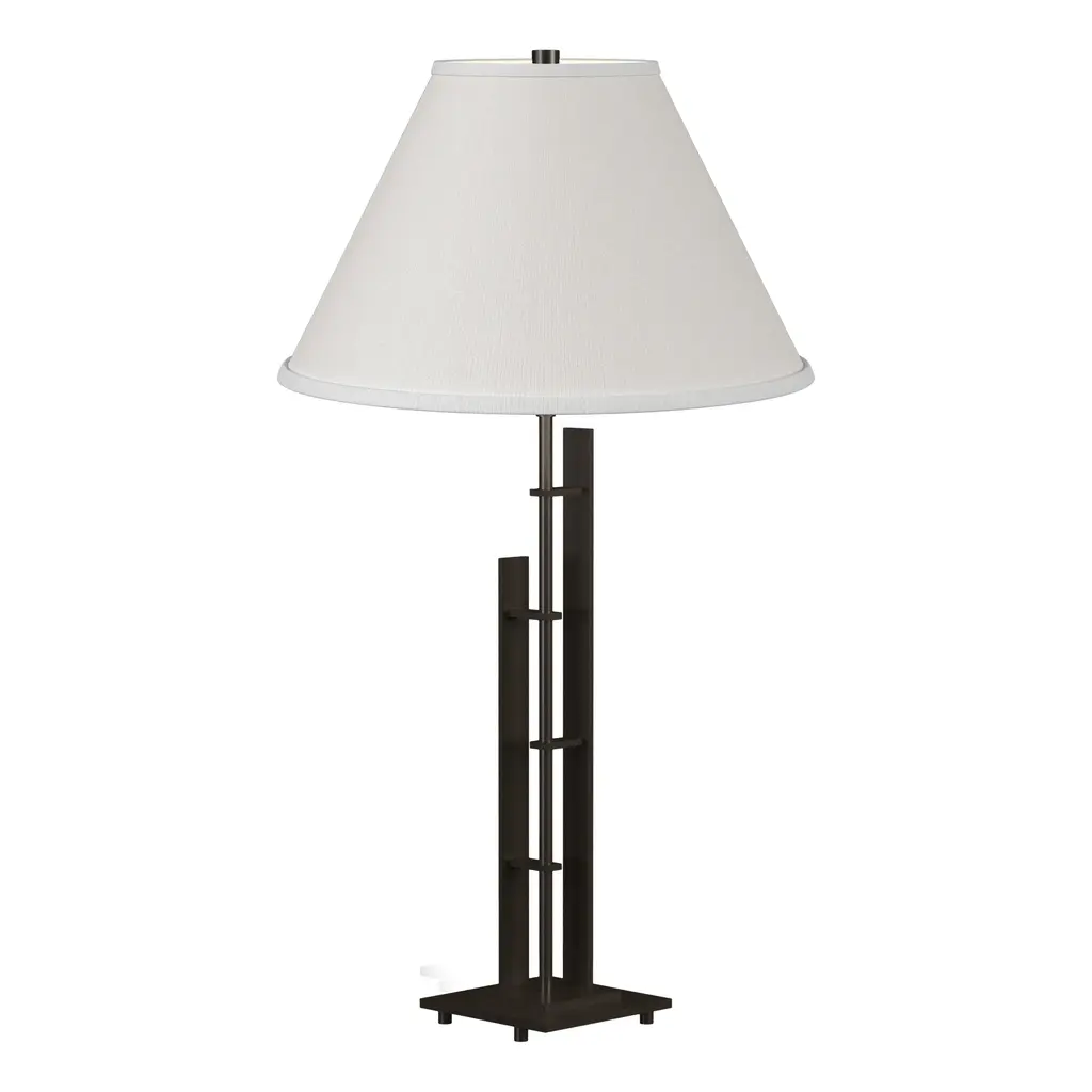 Strong, clean lines of hand-worked steel form the basis for our Metra Double Table Lamp. The clean, no-nonsense design fits well with most spaces. Crafted by artisans here in Vermont, each piece is unique. Features