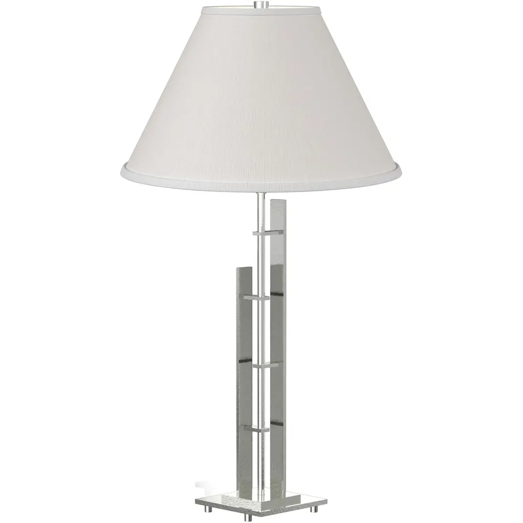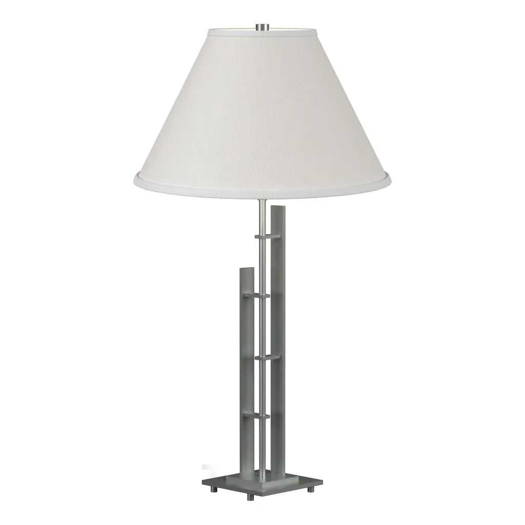 Strong, clean lines of hand-worked steel form the basis for our Metra Double Table Lamp. The clean, no-nonsense design fits well with most spaces. Crafted by artisans here in Vermont, each piece is unique. Features