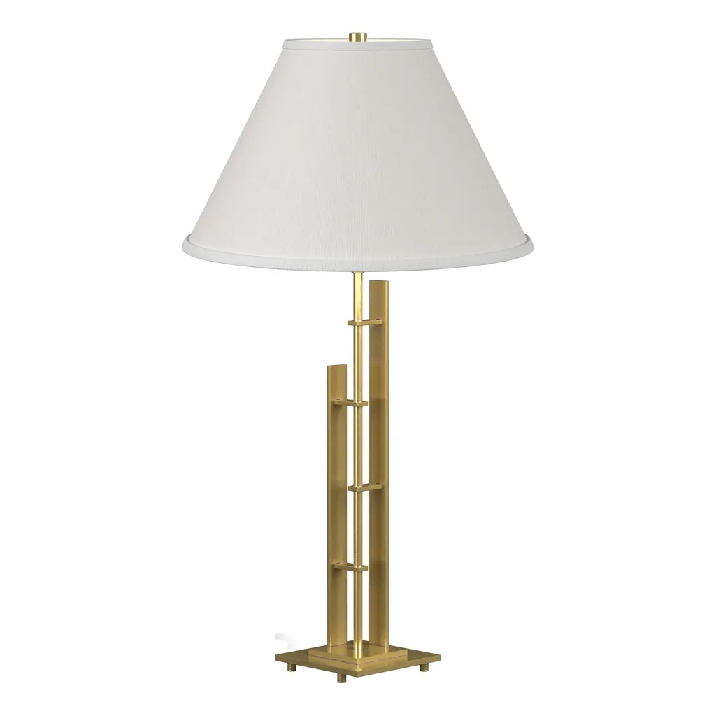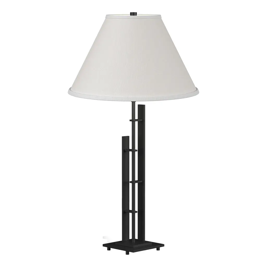 Strong, clean lines of hand-worked steel form the basis for our Metra Double Table Lamp. The clean, no-nonsense design fits well with most spaces. Crafted by artisans here in Vermont, each piece is unique. Features
