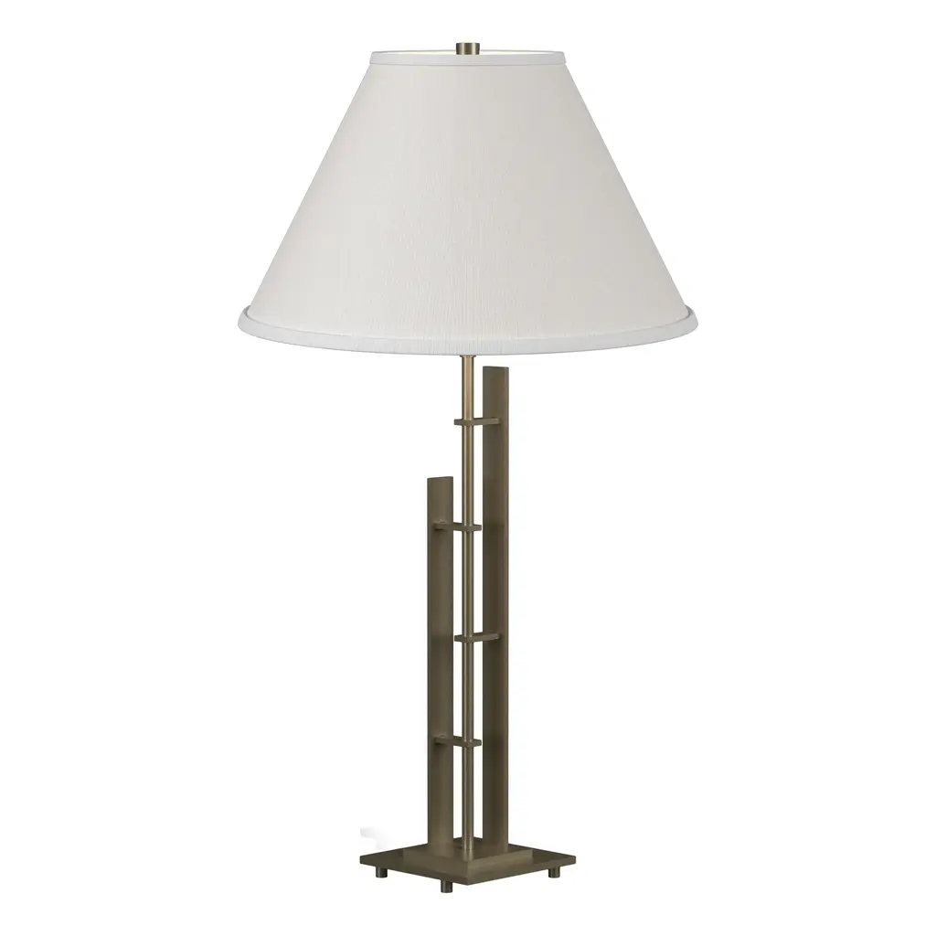 Strong, clean lines of hand-worked steel form the basis for our Metra Double Table Lamp. The clean, no-nonsense design fits well with most spaces. Crafted by artisans here in Vermont, each piece is unique. Features