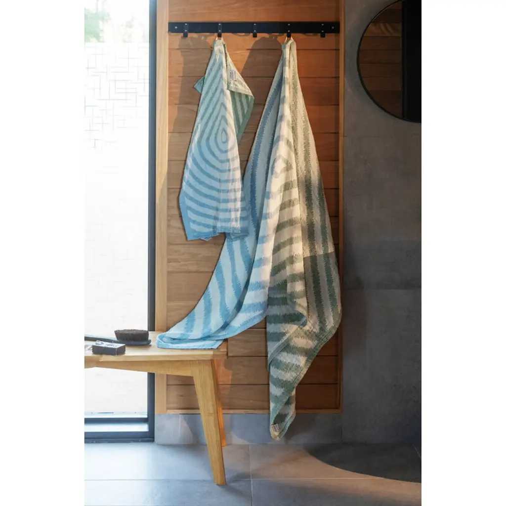 Metsälampi Hand Towel, White - Green - Rainy Blue
