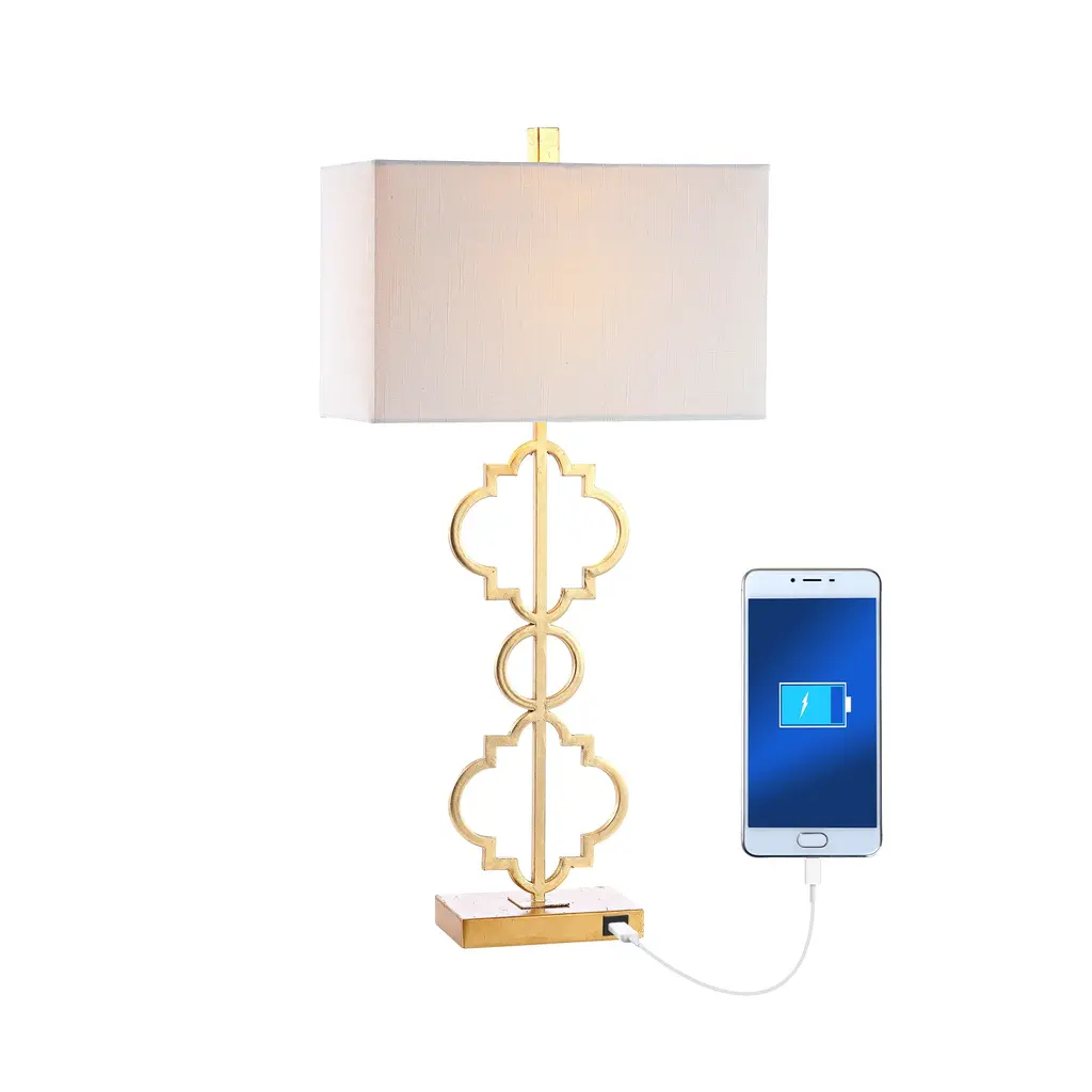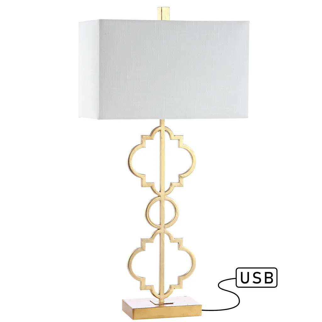 Miami 32" Iron Ogee Trellis Modern Led Usb Table Lamp, Gold By Jonathan Y - Gold Leaf