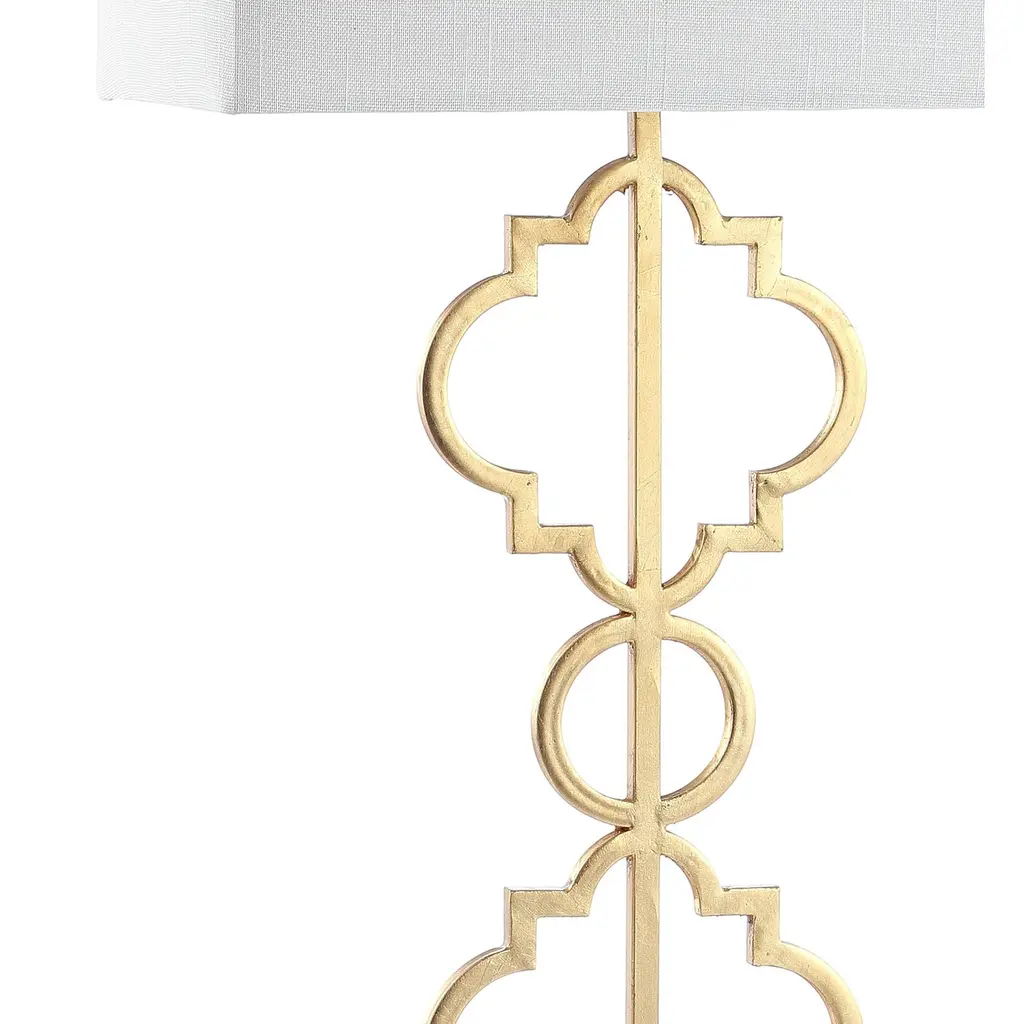 A Mediterranean-inspired classic, this stylish table lamp features ogee tile forms stacked into a column, finished in gold. Standing tall at 32", this elegant lamp is topped with a rectangular shade to suit traditional and modern interiors.Features:Dimensions:About us:You see a lamp.We see a decorative work of art.A perfectly curved shade casts a dramatic shadow on a floor. A silk cord you never want to hide. Compatible with LED lightbulbs: as easy on the environment as they are on the eyes. The JONATHAN Y Lighting collection considers every detail from impeccably sourced materials to designer styling. And our prices are so attractive, we've transformed a functional necessity into a fashion accessory.JONATHAN Y Lighting - a fashion revolution in home decor.