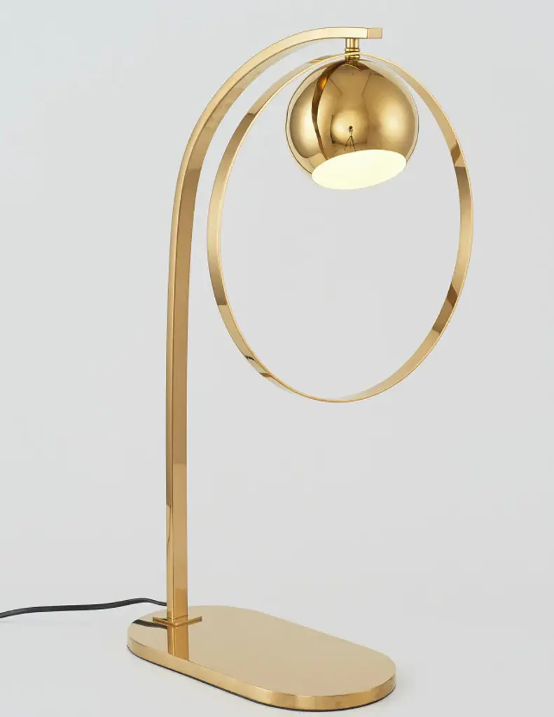 With a mid-century, circular-inspired design, this lamp gives light where you need it. Features beautiful, polished gold finish.