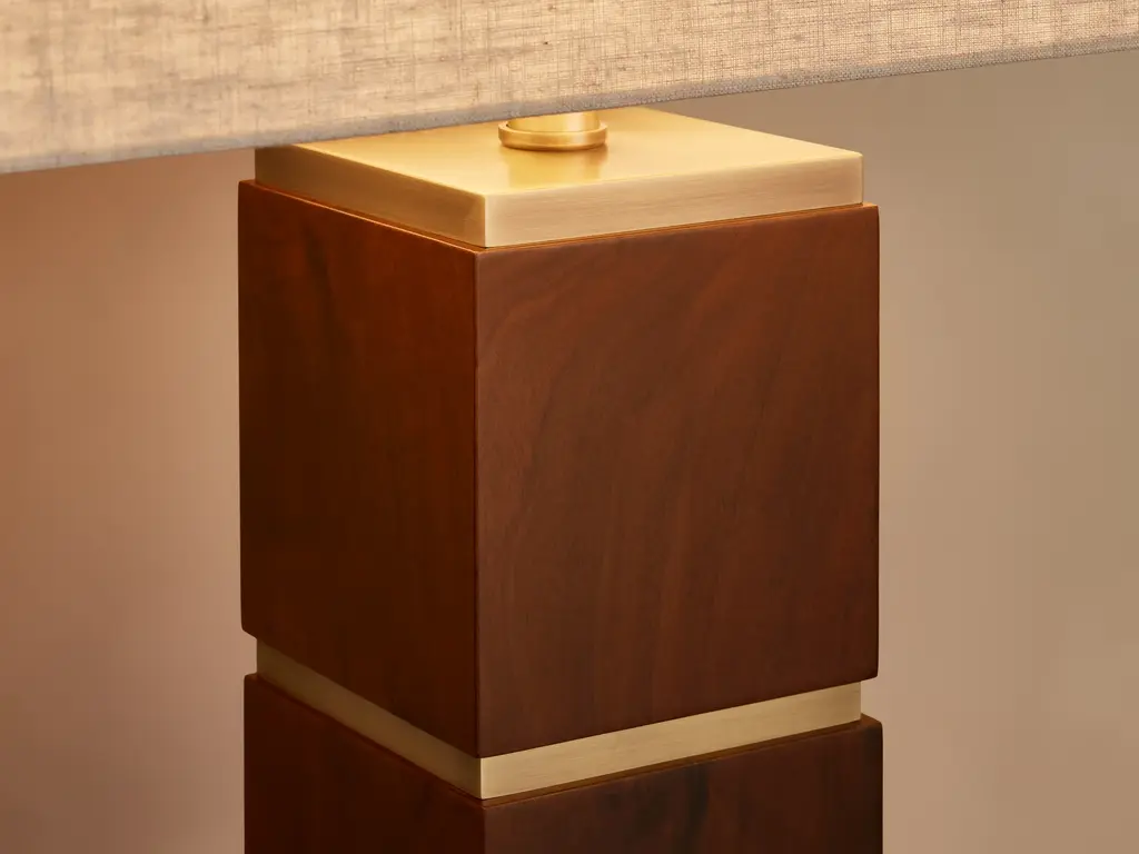 In collaboration with artisan partners in India, our Micha Table lamp is made from a brass base topped with supple parchment leather or swirling walnut burl wood panels. Micha’s unique and sophisticated design creates a warm and inviting atmosphere in any living space.