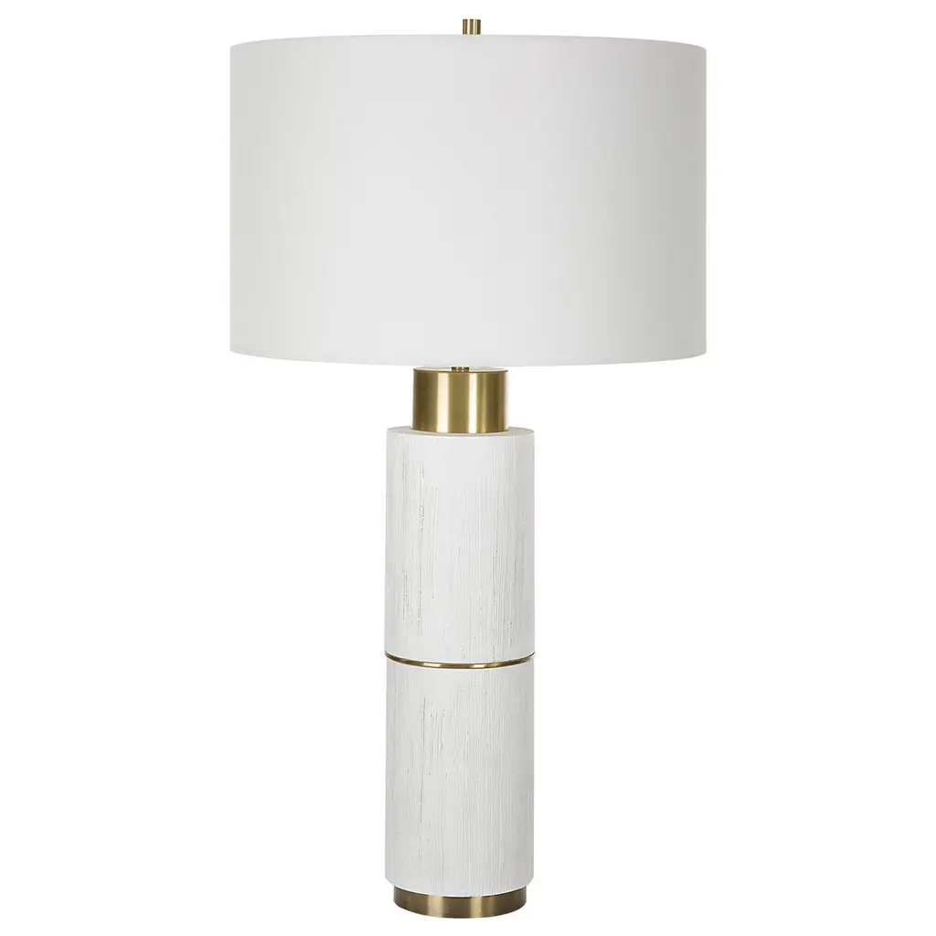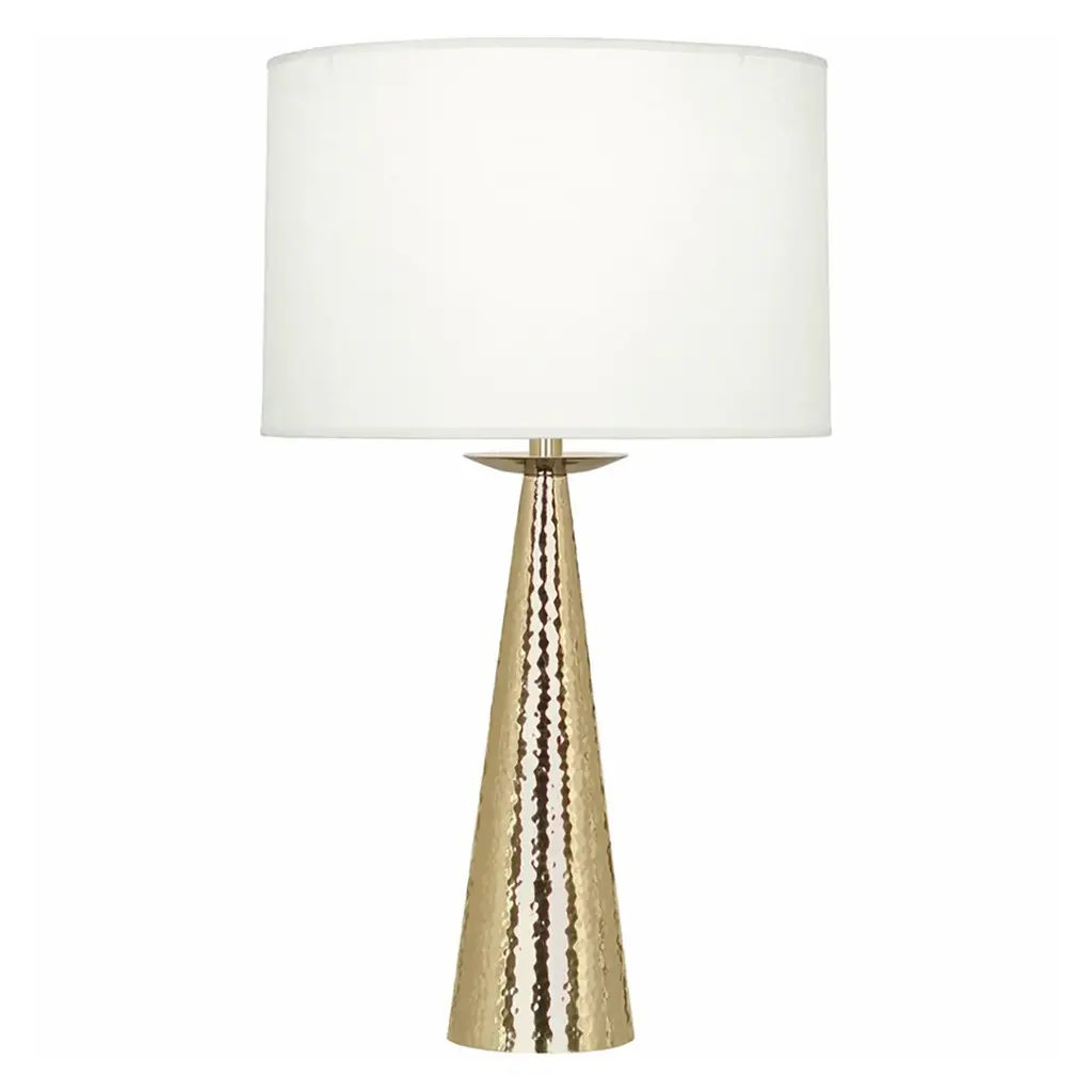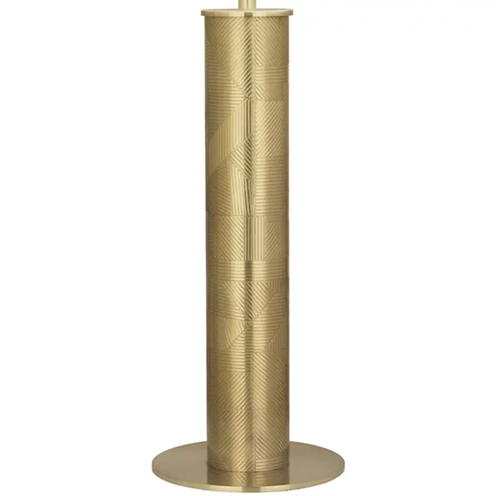 Bring a touch of elegance to your home with the Michael Berman Brut Table Lamp from Robert Abbey. A sleek example of the inherent allure in modern lighting design, this piece elevates the décor of the space with a simple, yet expressive silhouette. The cylindrical metal body contains subtle and intricate etchings that add to the appeal while the ascot white fabric shade beautifully contrasts as it rests on top. The bulb within the shade sends out a bright and welcoming layer of light, perfect for tableside while watching TV or other activities.