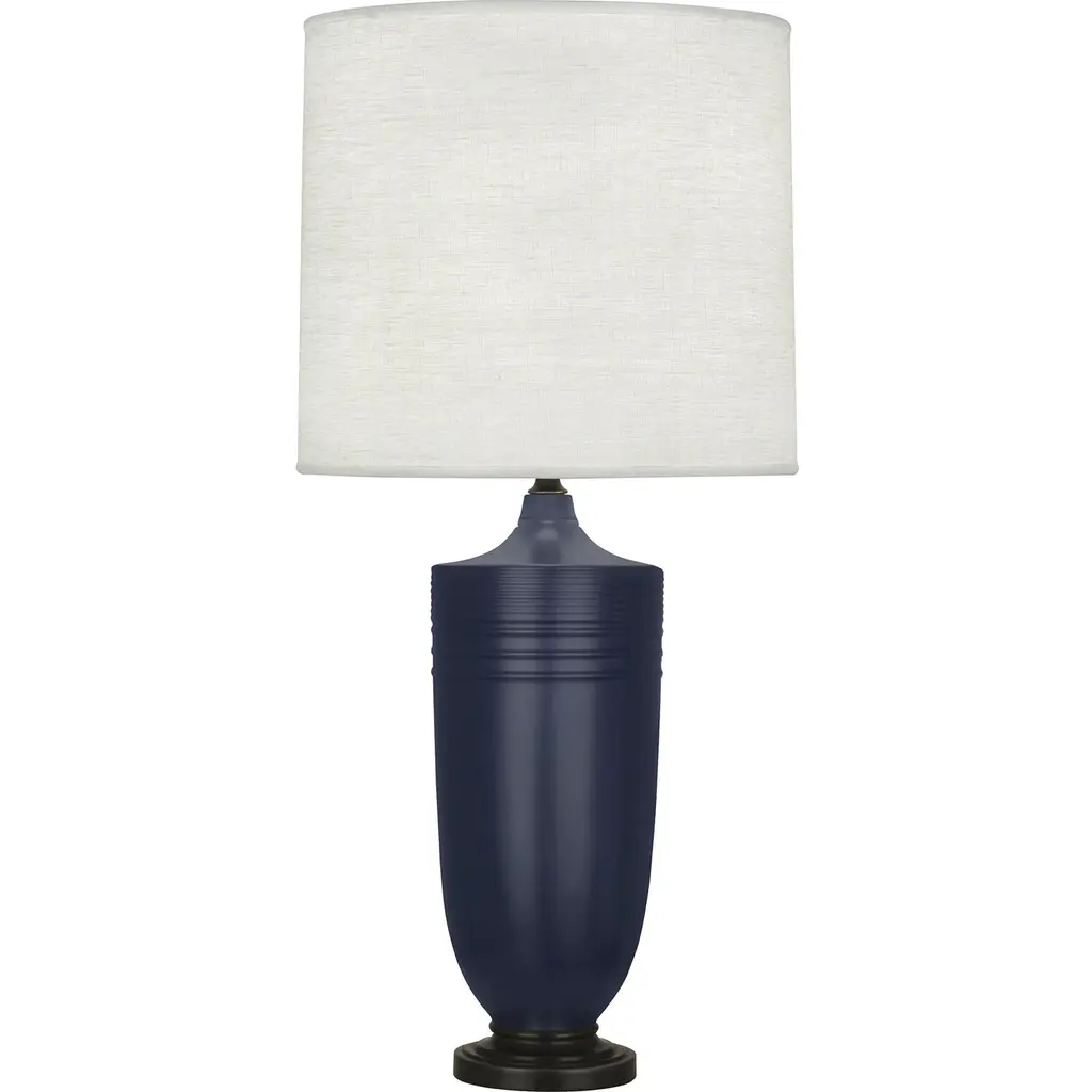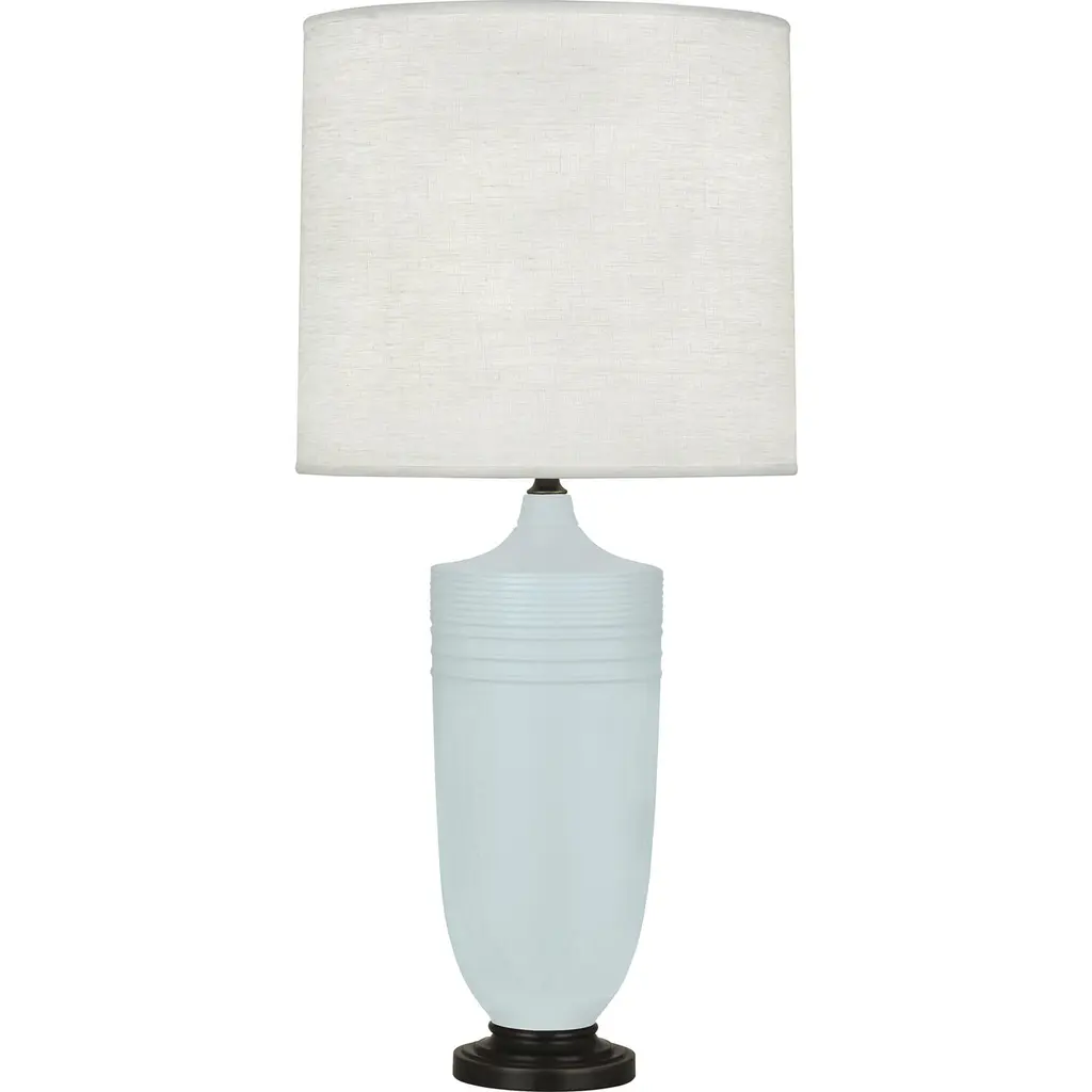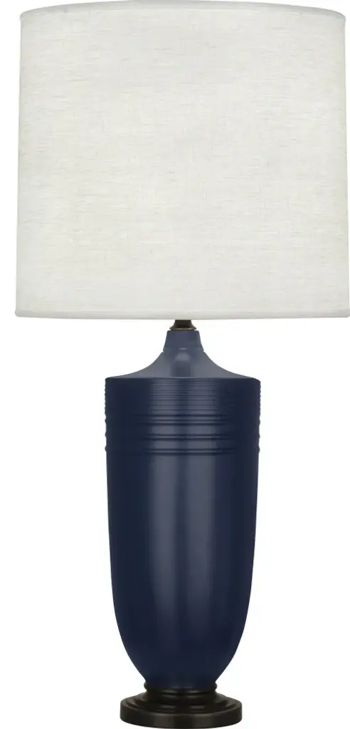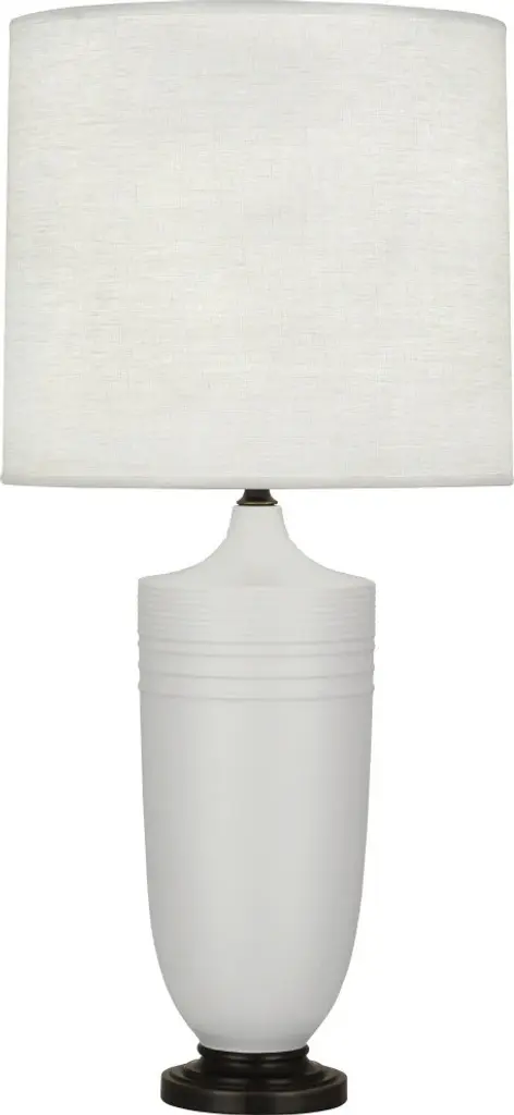 Matte Dark Coal Glazed Ceramic With Deep Patina Bronze Accents, Oyster Linen ShadeBulb Type: ANumber of Bulbs:1Bulbs Included: NUL Listed: YesBulb Wattage: 150Hardwire or Plug: Plug In
