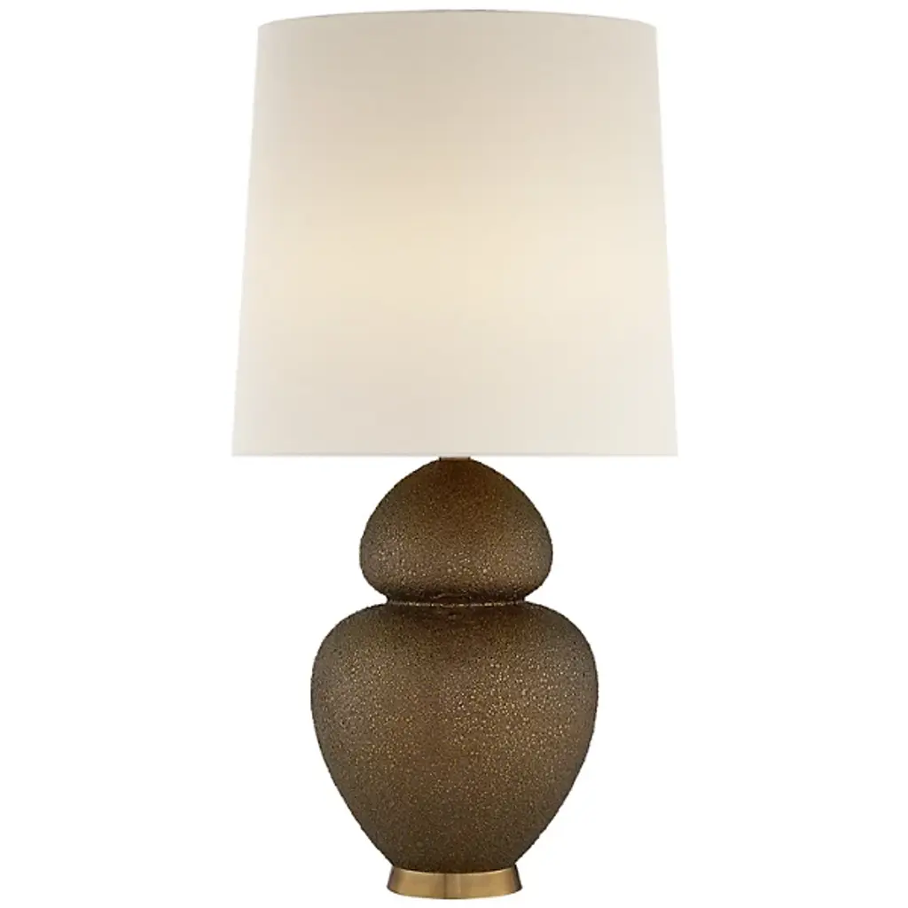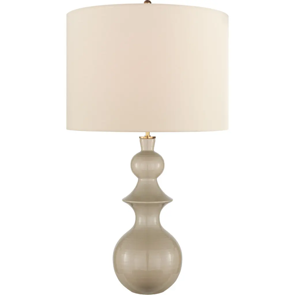 Bring a formal aesthetic to your decorative arrangement with the Michelena Table Lamp by Visual Comfort Signature, formerly known as Visual Comfort, This lamp is crafted of a fine ceramic and boasts a well-proportioned drum shape. The sloping curves of the lamp’s body wend into a neat dome beneath a linen shade. Within this shade is housed a bulb that diffuses bright light effortlessly throughout your surroundings. Maintain the uniform appeal of your modern room while receiving sufficient light, whatever your scenario entails.