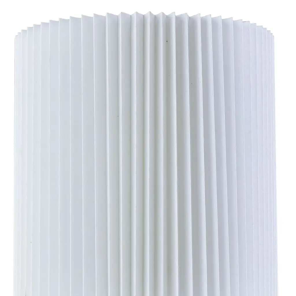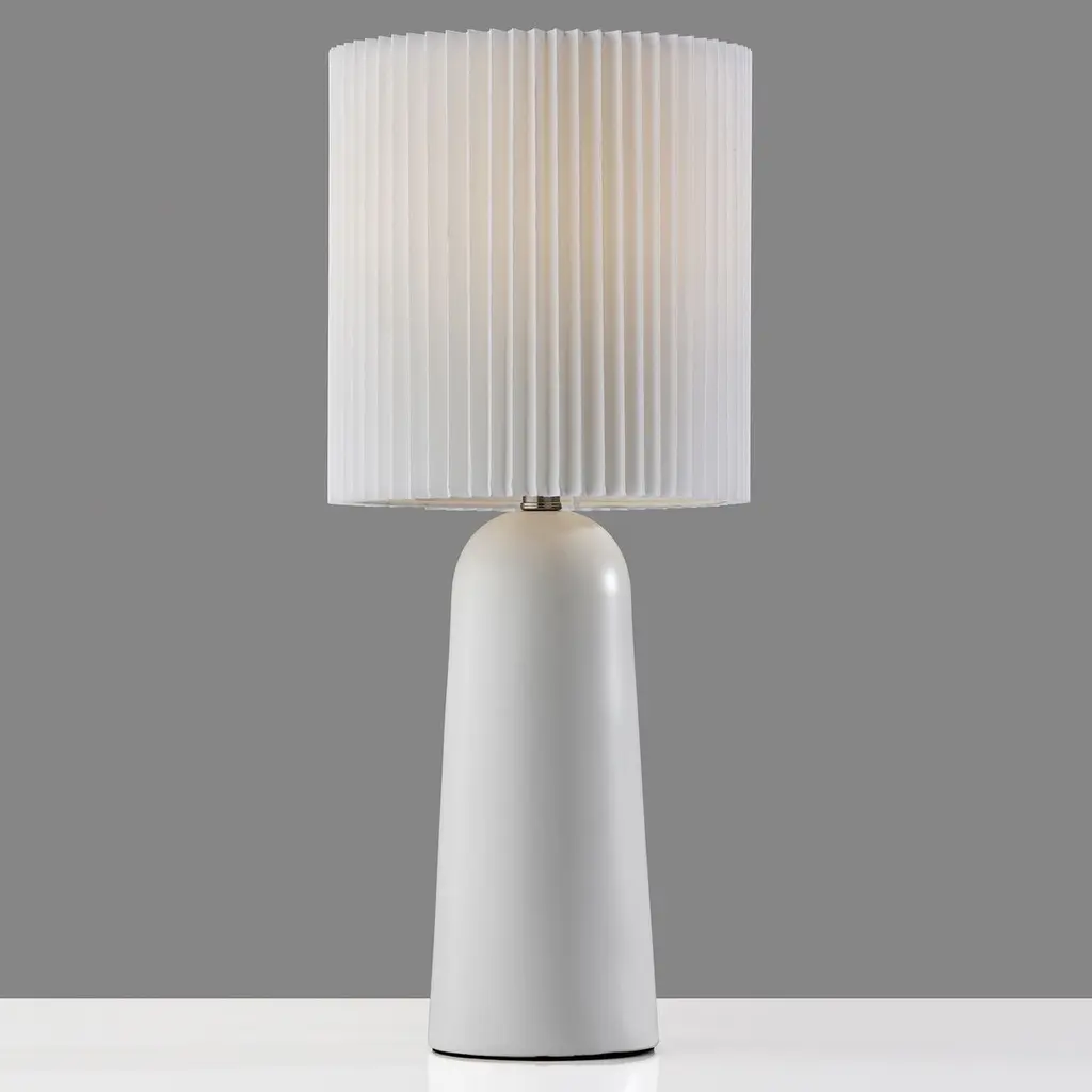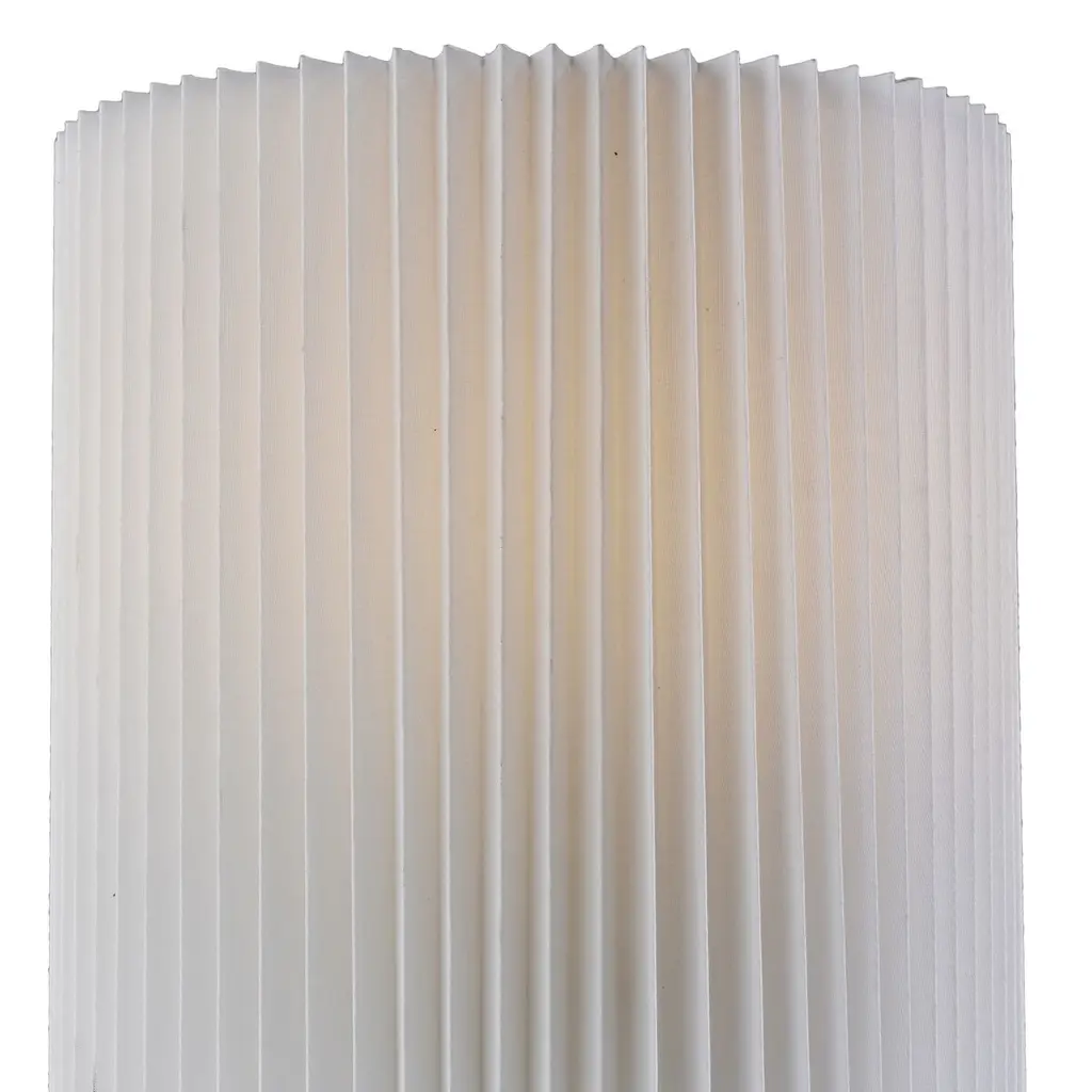 Less is more! With a casual and elegant design, the 26" tall table lamp complements elegant, Scandinavian décor. The 6" diameter dome base features clean lines and ceramic construction while the pleated fabric drum shade adds an elegant design touch. Operated by a rotary socket switch to easily turn the 100W bulb on or off, the table lamp is also powered by a 5' clear cord.