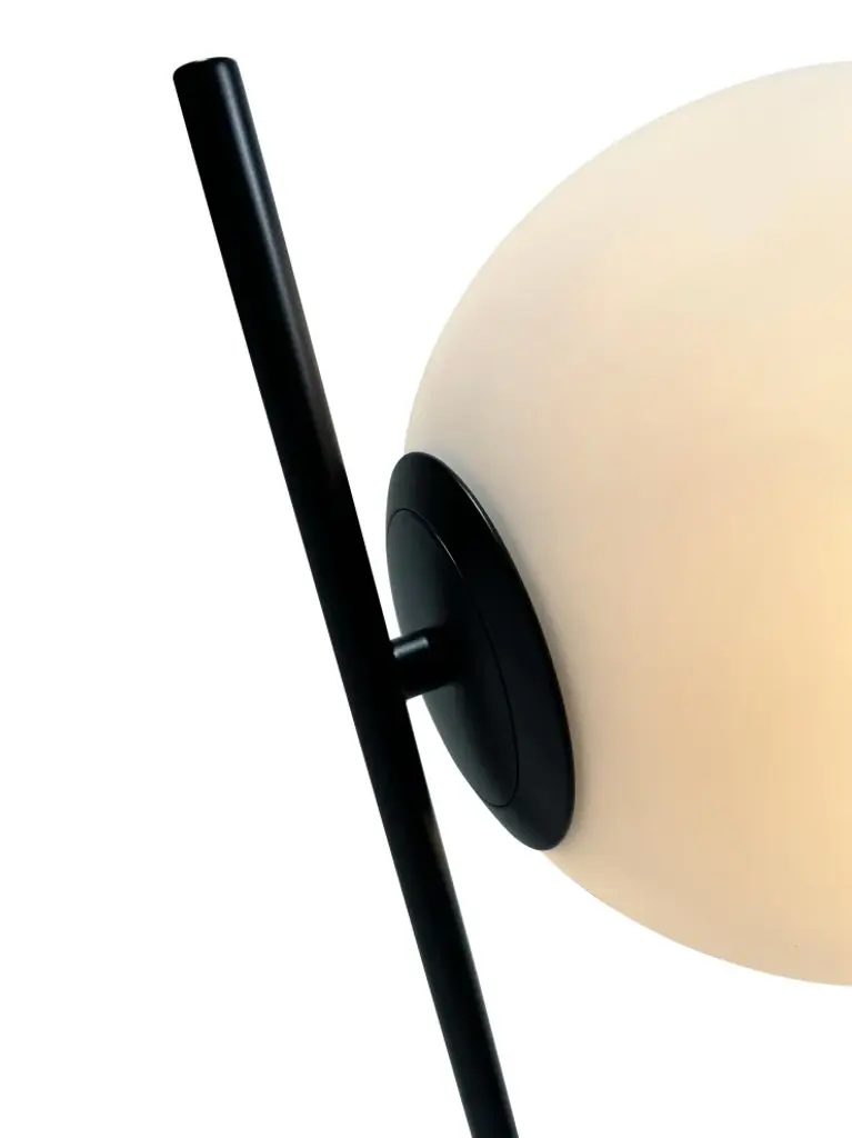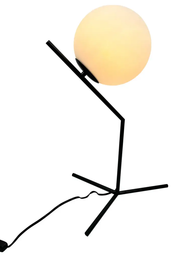 Modern Mid Century Table or Desk lamp in arc shape with Matt Black finished. At the top of the lamp a white glass globe with frosted finished. It comes with a black cord with plug and On/off switch in line. It can be suitable ether on table for bed and living rooms or desk for offices. Also great for Mid Century, Industrial or Transitional environments.