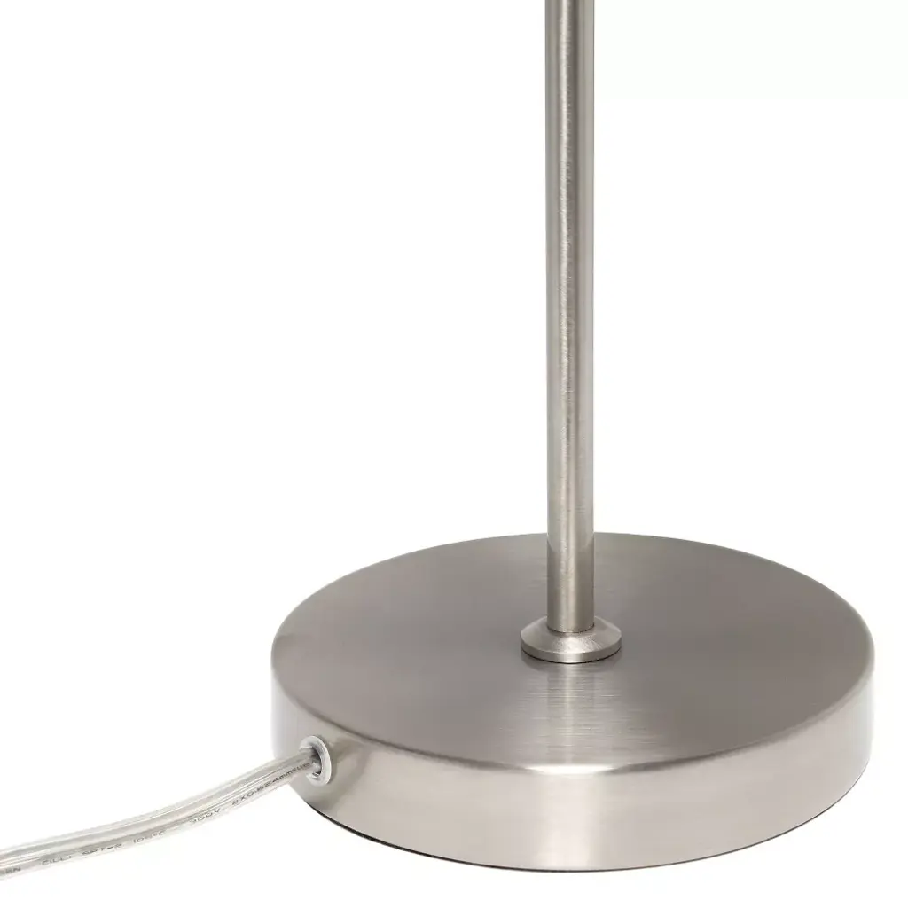 Brighten up your living space with this attractive 20" table lamp in a polished brushed nickel finish. This minimalist table lamp features curved lines and a stylish metal dome shade. This lamp will help add sophistication to your living room, bedroom, office or library with this sleek and modern table lamp.