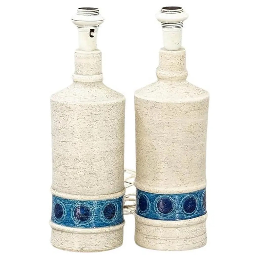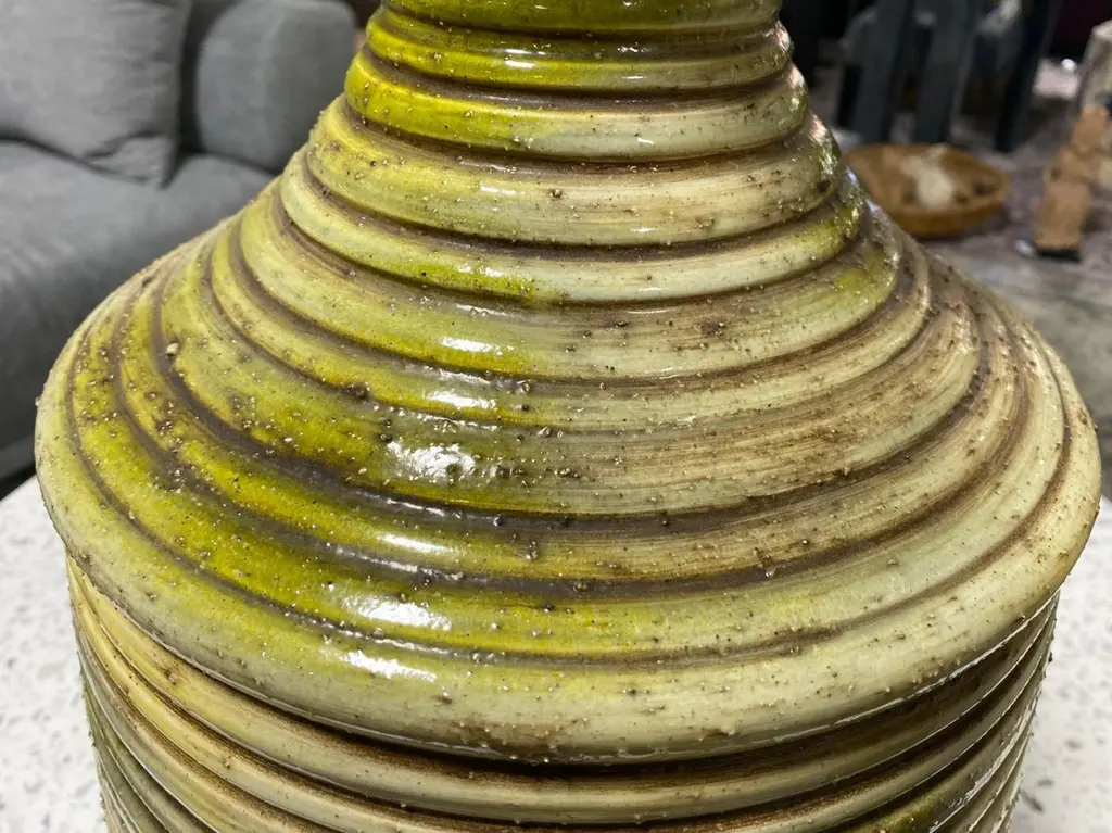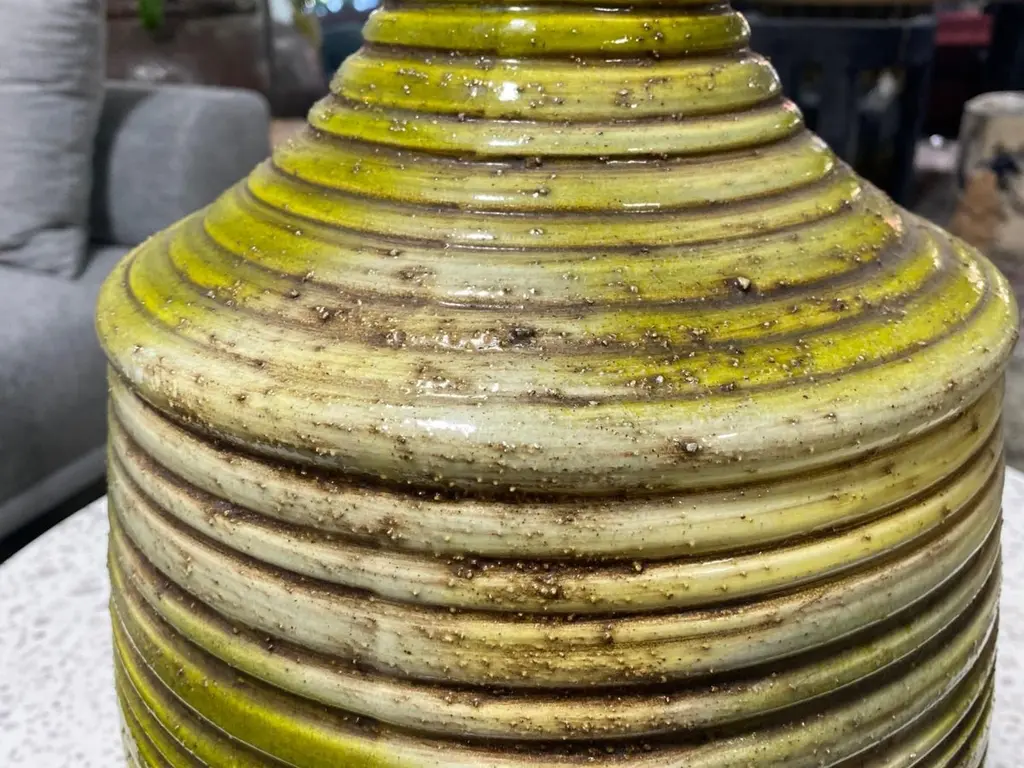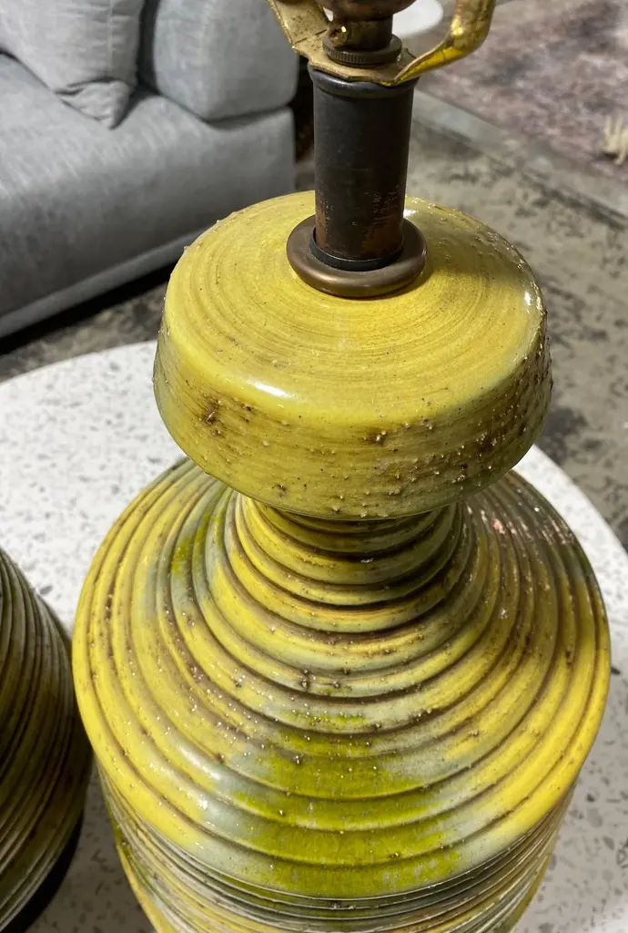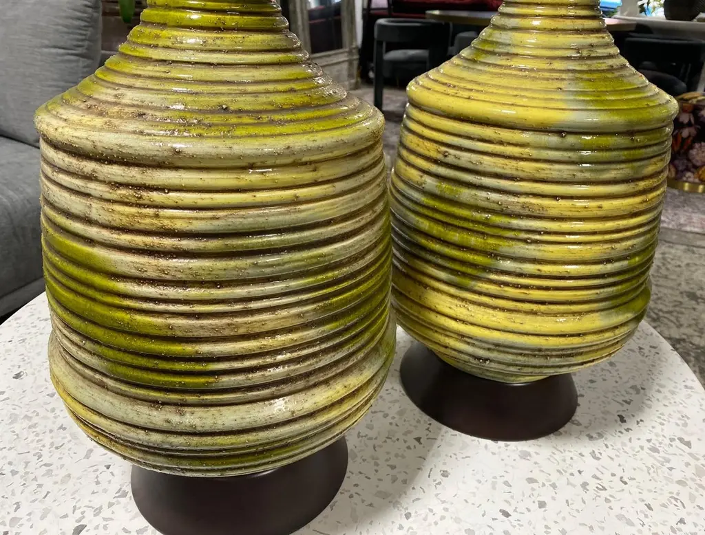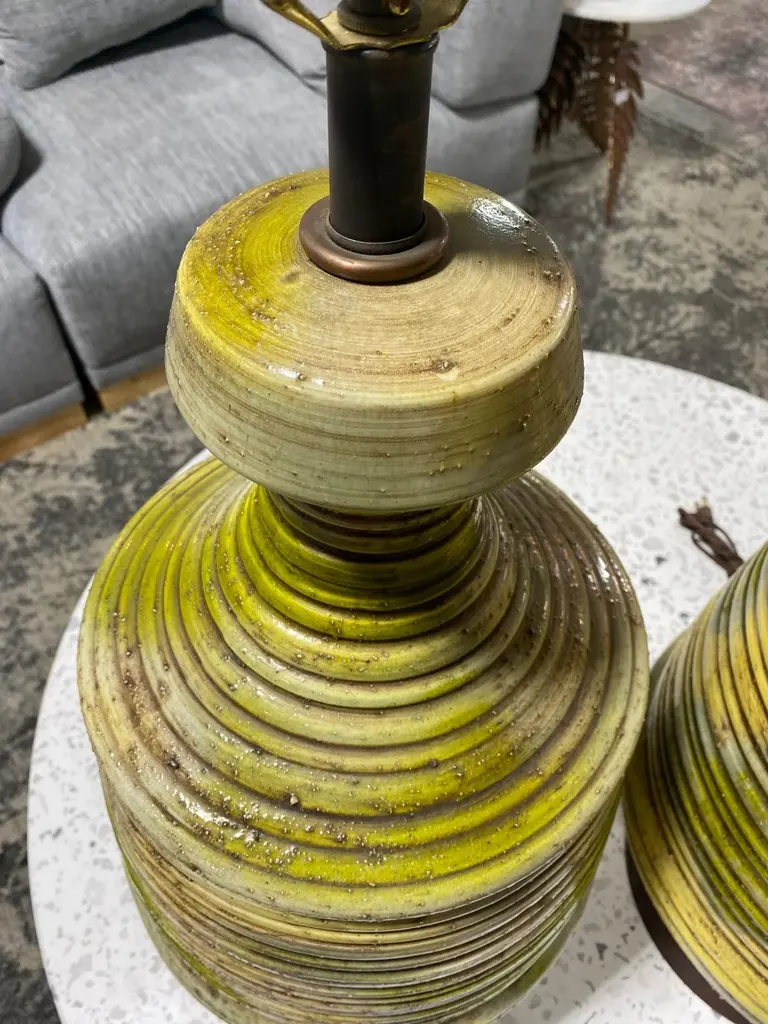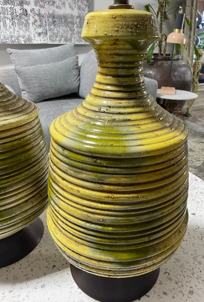 Mid-Century Modern Green Yellow Lava Glazed Studio Ceramic Pottery Table Lamps