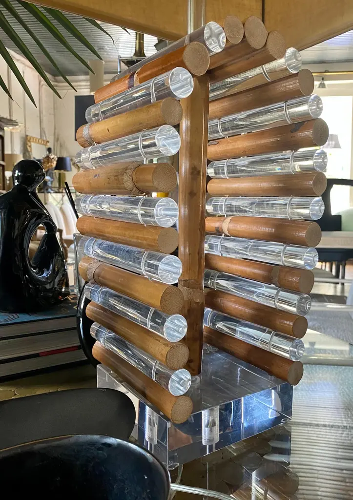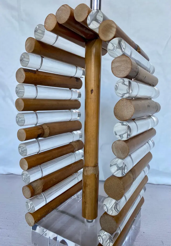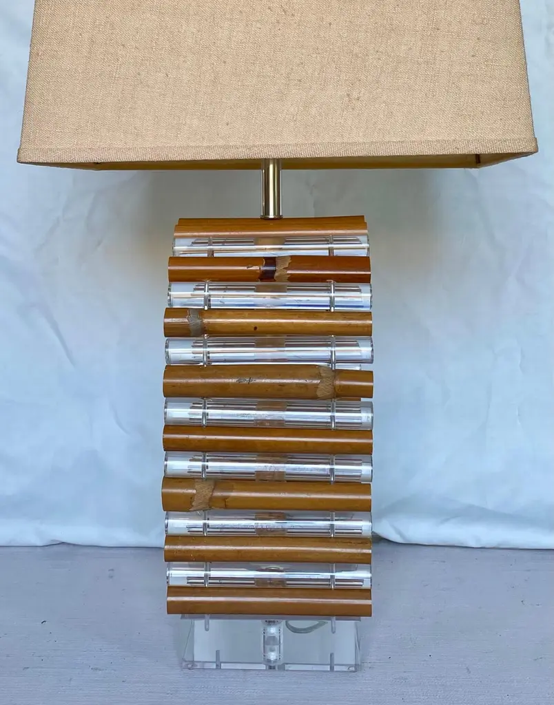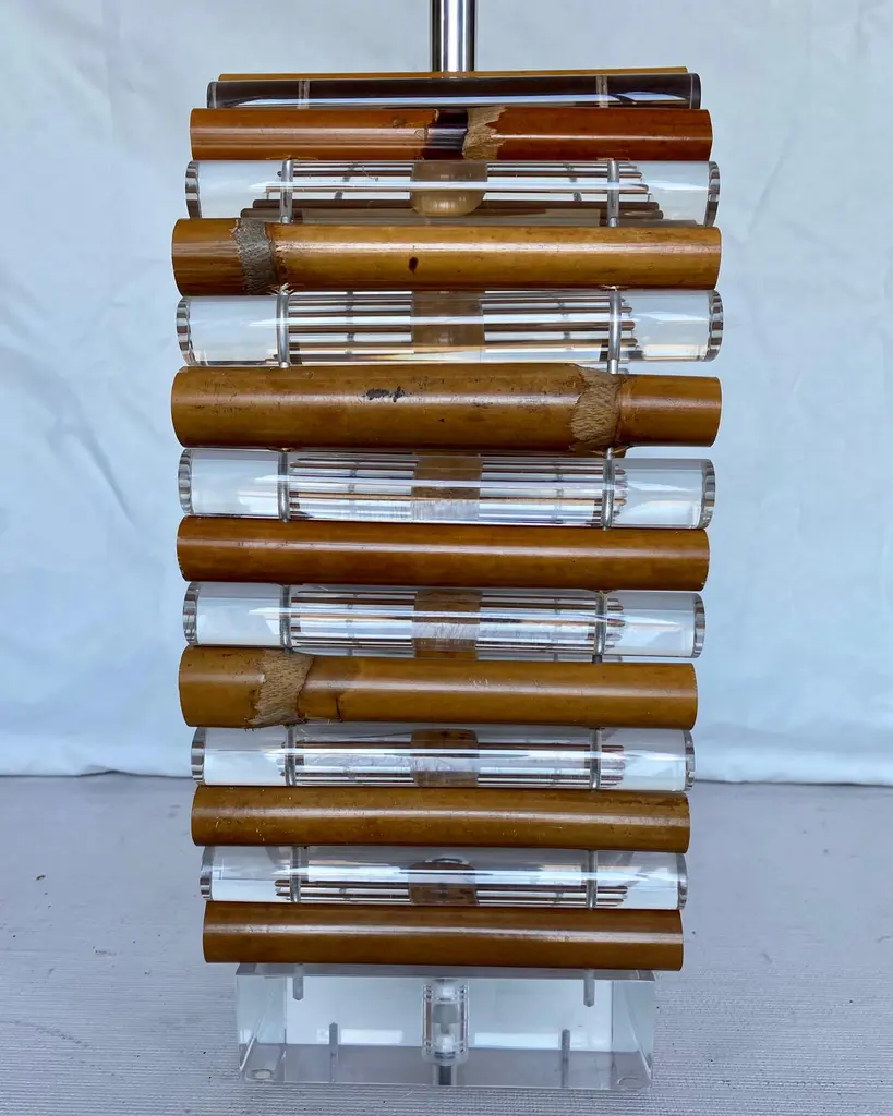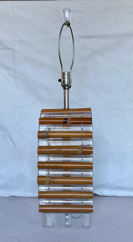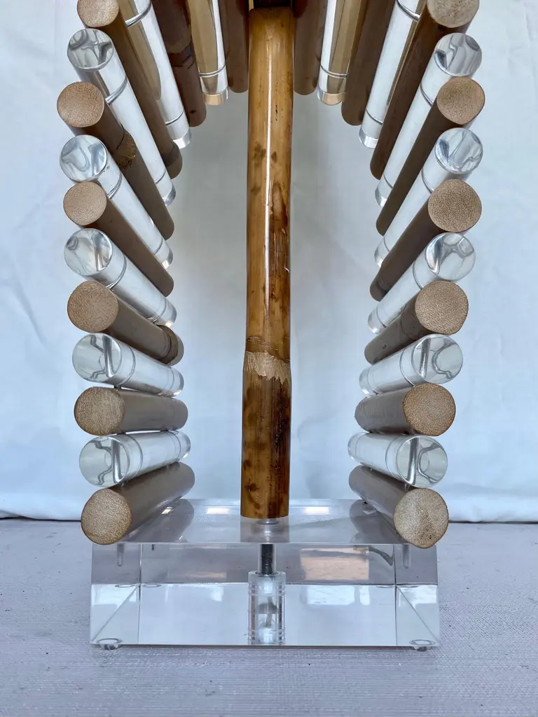Mid-Century Modern Palm Regency Lucite & Bamboo Table Lamp By Ritts Co.
