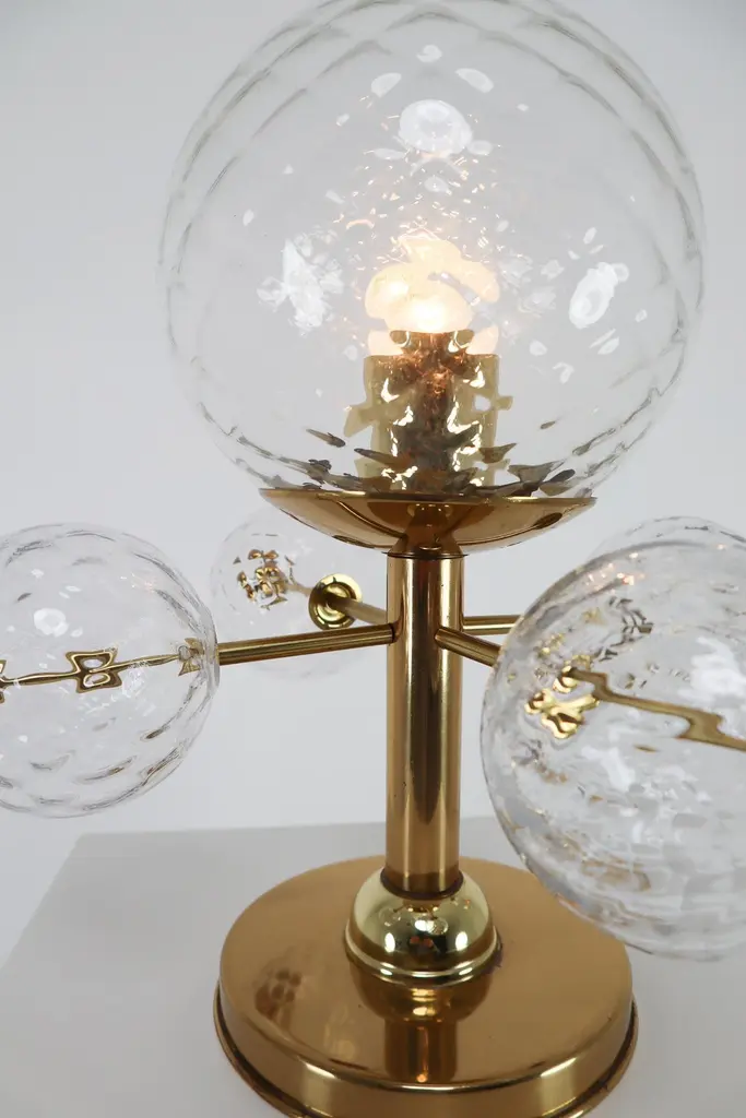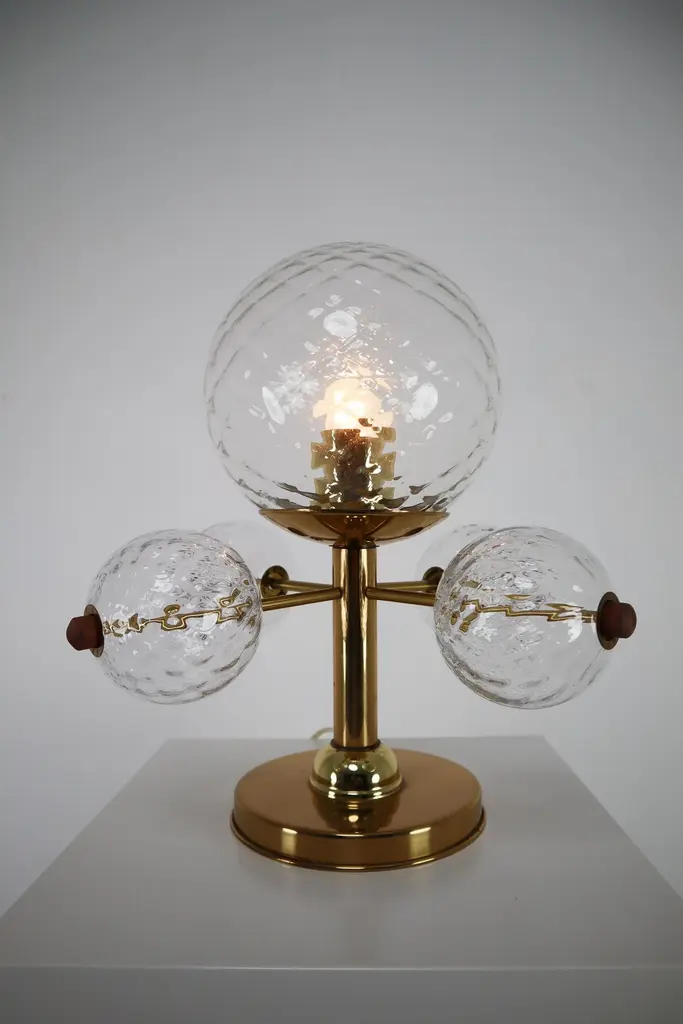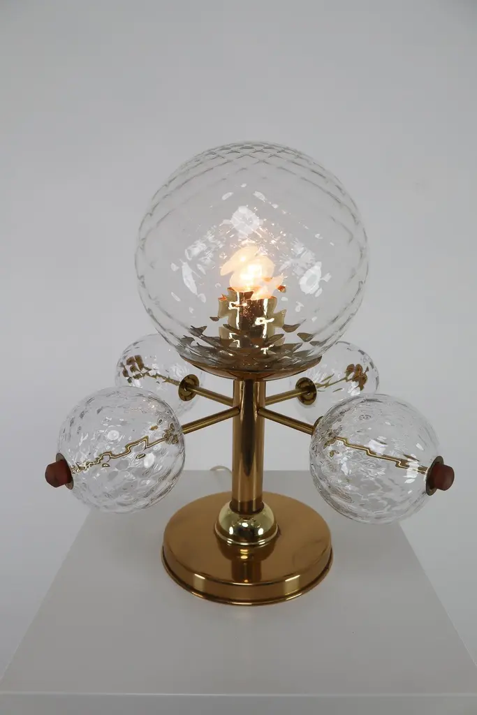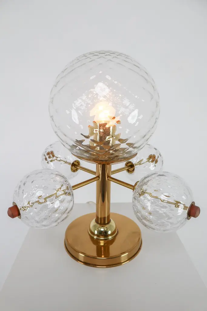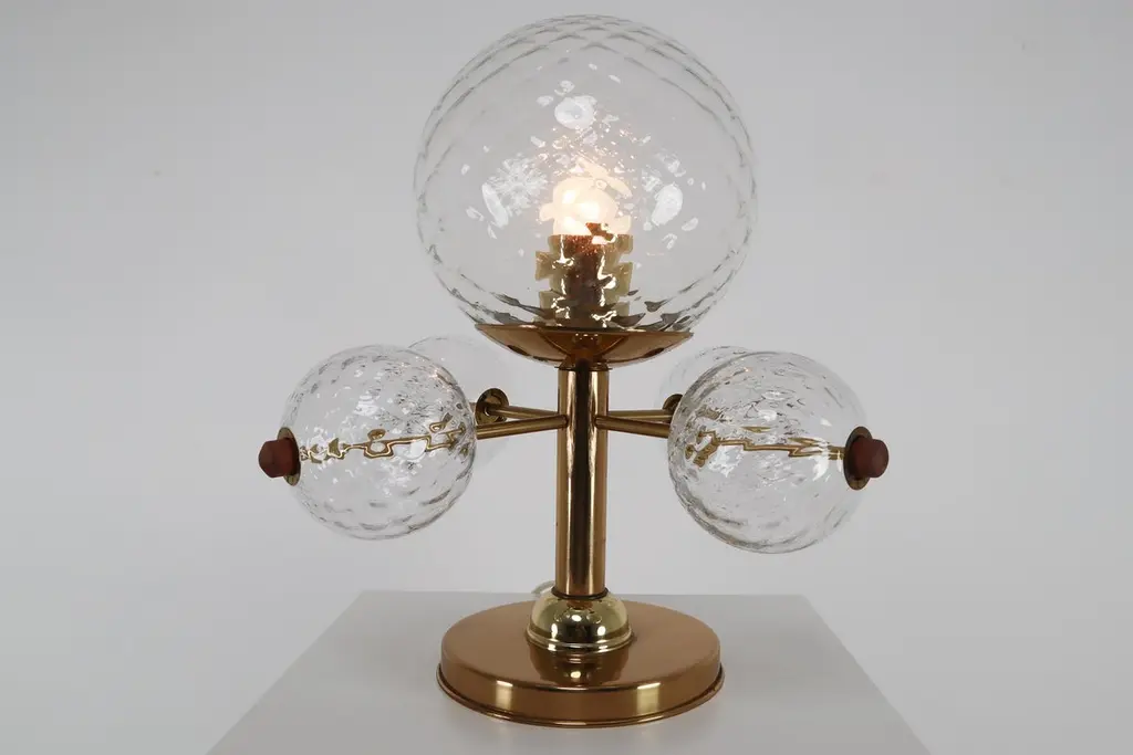 Midcentury Table Lamp With Brass Fixture And Structured Glass, Europe, 1970s