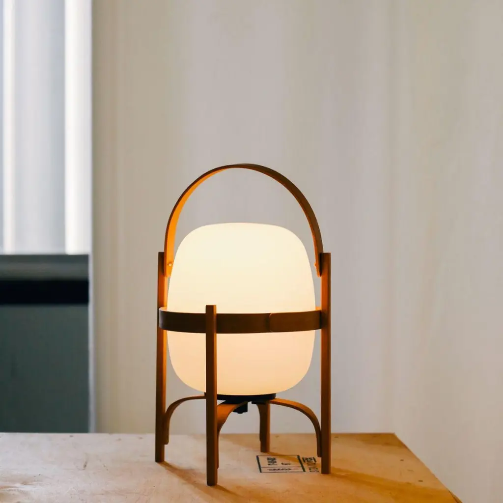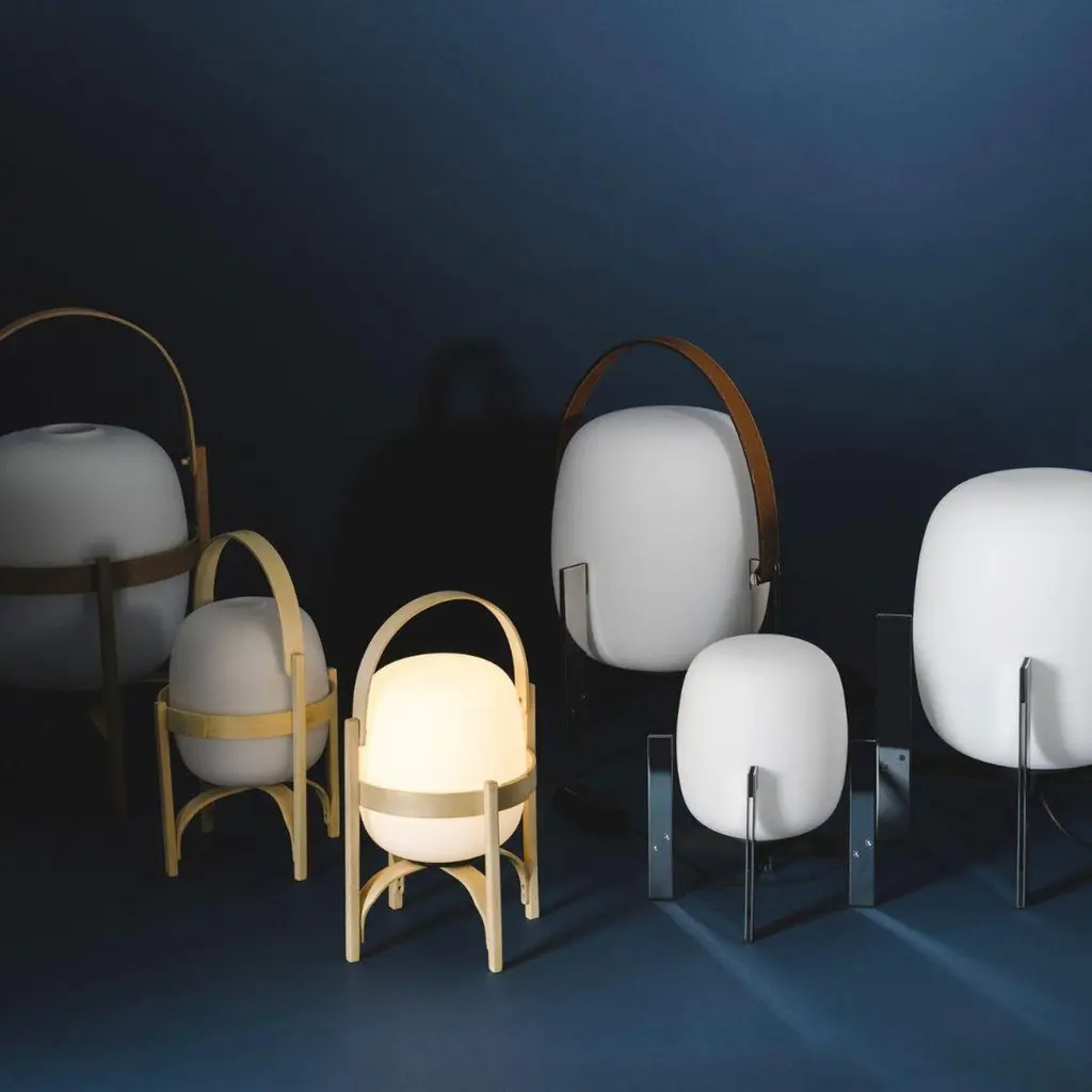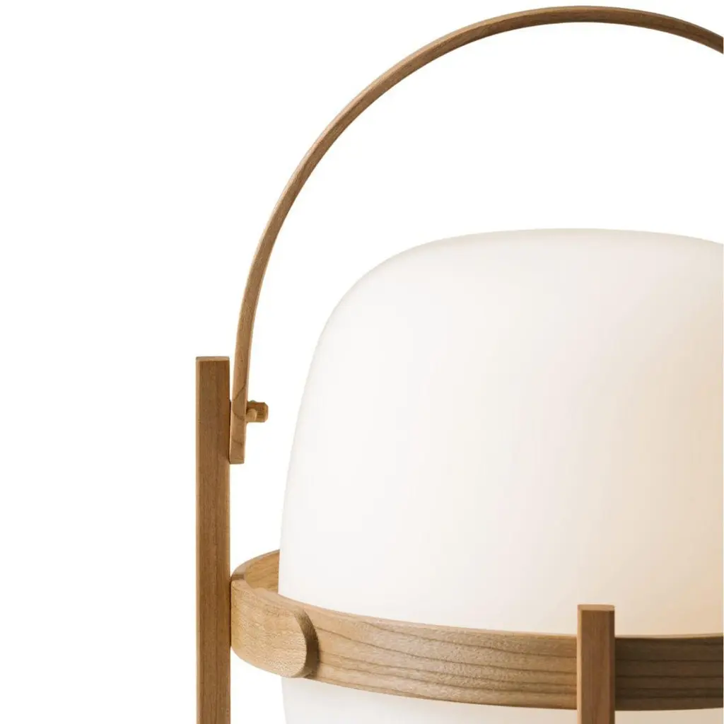 Miguel Milá 'Cestita Bateria' portable lamp in cherry and glass for Santa & ColeFounded in 1985 in Barcelona, Santa & Cole produces iconic pieces by such luminaries as llmari Tapiovaara, Miguel Milá and other European icons with a commitment to faithfully re-edition their legendary designs with uncompromising attention to detail, materials and craftsmanship.The 'Cestita Bateria' lamp is the newest member of the Cesta family from renowned creator Miguel Milá. Originally inspired by traditional lanterns that illuminate coastal homes, the 'Cestita Bateria' version includes technological upgrades permitting it to be recharged and used portably via its lithium ion battery. Executed in a steam-bended cherry wood frame that supports the blown opal glass shade, the handcrafted 'Cestita Bateria' creates an elegant ambiance anywhere.Price per item. Available in unlimited quantities. Variations available include metal or wood frame, smaller size, an outdoor rated lamp, a portable battery option as well as choice of glass or polyethylene shade. Available in a pendant or wall light design, please see our separate listings. This listing is for the portable 'Cestita Bateria' table lamp with white opal glass in a cherry wood frame.In stock lead time 1-2 weeks. Out of stock can add an additional 4-8 weeks or more. Please note that lead times and inventory availability are subject to change without notice. For time sensitive orders, please contact us for current lead times prior to purchasing. Kindly note that items must ship from Santa & Cole’s Barcelona warehouse, so 1st Dibs arranged shipping and local pickup are not available. Shipping cost quoted is per item and cannot be combined. Free standard shipping on all lighting orders less than $17,000.Illuminated via integrated dimmable LED providing 313 lumens, 2.5 watts, 2700k color and CRI 90. Features 3 preset dimmable levels with up to 24 hours of light on a single charge. Approximately 6.5 hours to fully charge (charger included). This lamp is IP20 rated.Made to order. All sales are final.