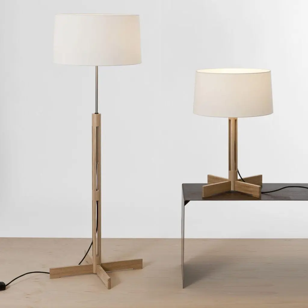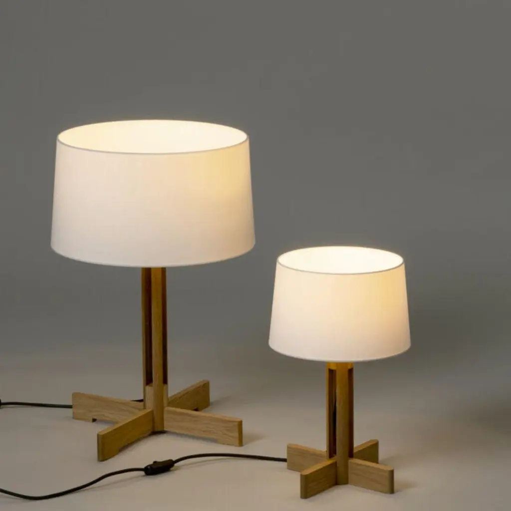 Milá 'FAD' Dimmable Table Lamp in Natural Oak and White Linen for Santa & ColeFounded in 1985 in Barcelona, Santa & Cole produces iconic pieces by such luminaries as llmari Tapiovaara, Miguel Milá and other European icons with a commitment to faithfully re-edition their legendary designs with uncompromising attention to detail, materials and craftsmanship.The 'FAD' dimmable table lamp, designed in 1973 by Miguel Mila, is an exceptional demonstration of industrial craftsmanship. Featuring a cylindrical oak column that creates a vertical symmetry which gracefully supports an almost cylindrical white shade. Executed in natural oak wood, including the cross-shaped legs that recall other classical Mila designs, and a white linen shade. Today the 'FAD's' permanent elegance continues to be meticulously crafted to Santa & Cole's exacting standards using the highest quality materials available.Price per item. Available in unlimited quantities in choice of small or large as well as a two floor lamp versions - please see our other listings. This listing is for the 'FAD' dimmable table lamp in natural oak and a white linen shade.In stock lead time 1-2 weeks. Out of stock can add an additional 4-8 weeks or more. Please note that lead times and inventory availability are dependent on choice of wood and are subject to change without notice. For time sensitive orders, please contact us for current lead times prior to purchasing. Kindly note that items must ship from Santa & Cole’s Barcelona warehouse, so 1st Dibs arranged shipping and local pickup are not available. Shipping cost quoted is per item and cannot be combined. Free standard shipping on all lighting orders less than $17,000.Accommodates 1 standard medium base E26 bulb (bulb not included). Recommended 4.5 watt dimmable LED bulb, lower with incandescent. Powered by 7.3' black cord with integrated switch. This lamp is UL listed and IP20 rated.Made to order. All sales are final.