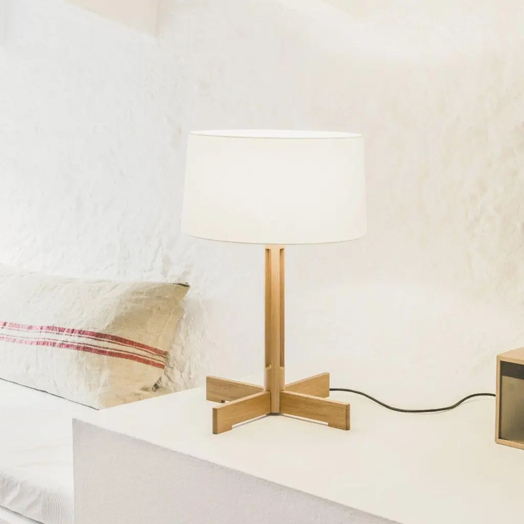 Milá 'Fad' Dimmable Table Lamp In Natural Oak And White Linen For Santa & Cole