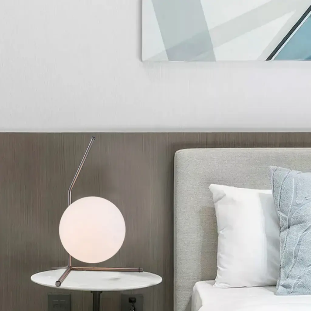 Milk White Glass Ball Table Lamp, Satin Nickel
