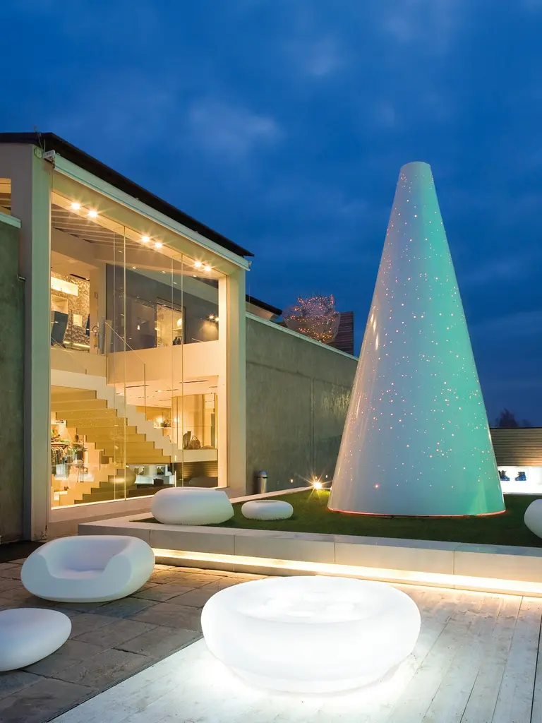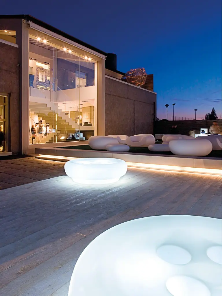 Milky White Bot One Stool by Fabio Della FiorentinaDimensions: Ø 150 x H 45 cm. Seat Height: 45 cm.Materials: Polyethylene.Weight: 30 kg.Available in different color options. Available in a lighted version. This product is suitable for indoor and outdoor use. Please contact us. Bot-One is a playful and ironic pouf created by Fabio Della Fiorentina, also available in the luminous version. Its shape reminds a button: in this way, a simple object of everyday life becomes the protagonist of the Design field, creating a pouf ideal for irreverent contracts and amazing events. Bot-One is made in polyethylene with the technology of rotational molding and it is suitable for indoor and outdoor settings.Constantly connected with Nature, Threebù is produced in a new biobased plastic derived from sugar cane, which recalls the colors of the Earth and is used for the first time in the world of design.Our stories happen in places precious to us. SLIDE was born from the desire to produce furniture and light to create the perfect atmosphere that highlights emotions.Design is inspiration, surprise, joy. It's the amazement of seeing something unique for the first time. It's creating spaces to feel good and live surrounded by beauty. It means giving a personal imprint to indoor and outdoor spaces. It means choosing your ideal element that is the perfect setting for emotions and experiences, which become indelible memories. The founder Giò Colonna Romano knows this well, combining his fervent imagination with thirty years of know-how in the processing of plastic resins, giving birth to SLIDE in 2002. The first note of amazement is the luminous furniture, which immediately became a must have in the world of events. Since 2015, his son Marco Colonna Romano has taken over the reins of the company, with the same desire to grow and innovate as his father. Thanks to a new panache and the team of young people it surrounds itself with, SLIDE becomes a beloved company for outdoor furniture: new shapes, materials and tactile textures have won the hearts and ideas of architects and interior designers around the world. SLIDE has thus created complete collections and furnishings, with new shapes, whose lines arise from collaboration with internationally renowned designers of the caliber of Alessandro Mendini, Paola Navone, Stefano Giovannoni, Fabio Novembre, Marcel Wanders, Karim Rashid, Marc Sadler, Francesco Favaretto and Marcantonio.New materials were chosen and inserted, initially soft and rigid polyurethane, and then comfortable cushions, waterproof fabrics, tactile textures ideal for completing the polyethylene furnishings with taste and class. But SLIDE does not forget its first essence, lighting: in recent years it has developed a line of much more technical lamps for large areas, essential in shape but with great visual impact. For the first time, Slide has managed to give an artisanal twist to an industrial process: to meet the increasingly high demands of living, the production creates non-replicable shades, in which every small imperfection enhances the industrial process and makes each piece unique . Because Slide's strength has always been the careful reading of the market, the creation of something that didn't exist and which then became necessary: here Slide continues its production in Buccinasco, on the outskirts of Milan, but its name and its products reach more than 130 countries around the world.