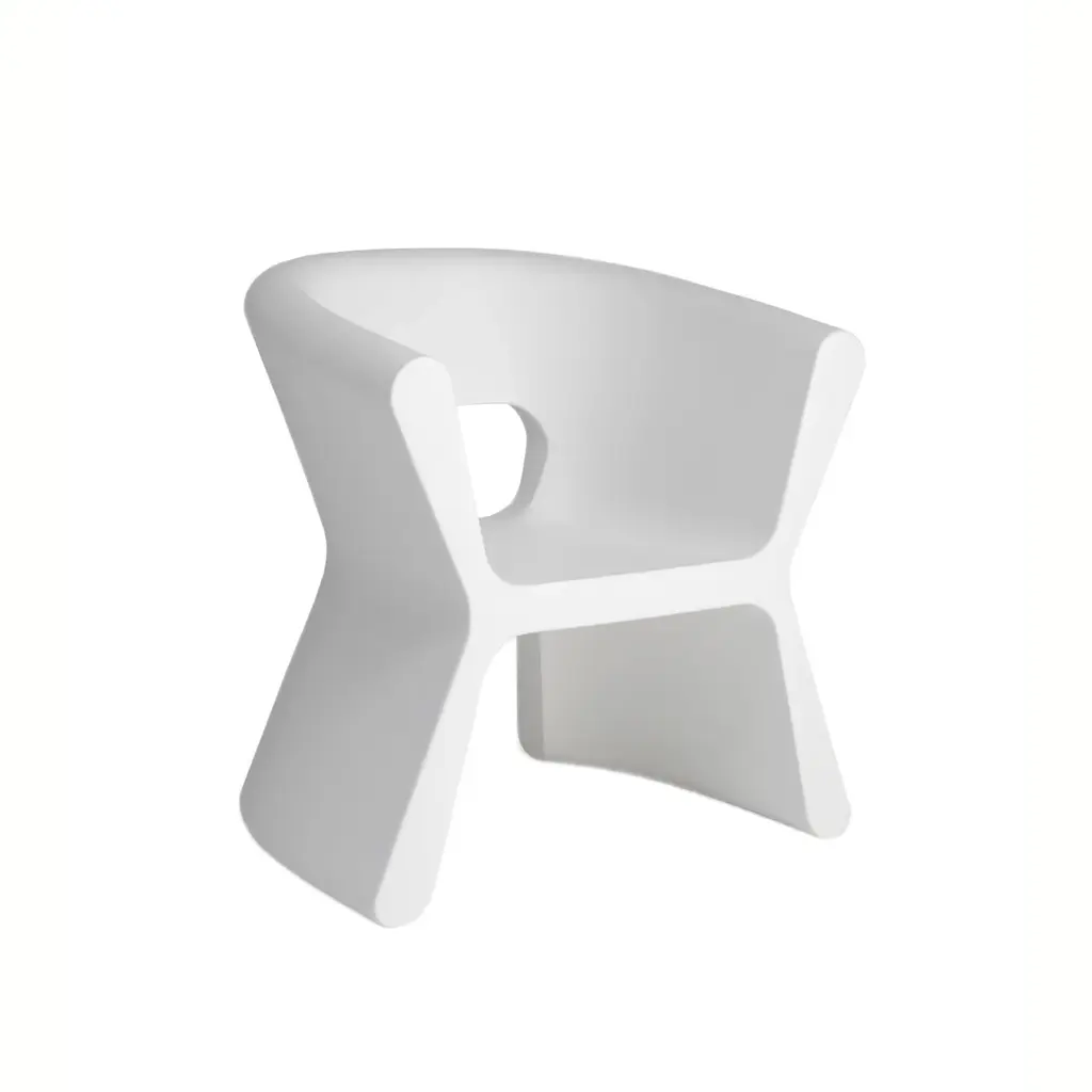 Milky White Exofa Armchair by Jorge NajeraDimensions: D 65 x W 75 x H 73 cm. Seat Height: 43 cm.Materials: Polyethylene.Weight: 12 kg.Available in different color options. This product is suitable for indoor and outdoor use. Please contact us. Exofa has got a linear design that works with oblique geometries. The seat is comfortable, thanks to the contoured profile and slightly curved in the back. Exofa is a chair light but stable, ideal for completing contemporary and minimalist furnishings: its manageability and careful design make it perfect for gardens and terraces, both in private houses and in the contract world. Ideal for indoor and outdoor settings. Our stories happen in places precious to us. SLIDE was born from the desire to produce furniture and light to create the perfect atmosphere that highlights emotions.Design is inspiration, surprise, joy. It's the amazement of seeing something unique for the first time. It's creating spaces to feel good and live surrounded by beauty. It means giving a personal imprint to indoor and outdoor spaces. It means choosing your ideal element that is the perfect setting for emotions and experiences, which become indelible memories. The founder Giò Colonna Romano knows this well, combining his fervent imagination with thirty years of know-how in the processing of plastic resins, giving birth to SLIDE in 2002. The first note of amazement is the luminous furniture, which immediately became a must have in the world of events. Since 2015, his son Marco Colonna Romano has taken over the reins of the company, with the same desire to grow and innovate as his father. Thanks to a new panache and the team of young people it surrounds itself with, SLIDE becomes a beloved company for outdoor furniture: new shapes, materials and tactile textures have won the hearts and ideas of architects and interior designers around the world. SLIDE has thus created complete collections and furnishings, with new shapes, whose lines arise from collaboration with internationally renowned designers of the caliber of Alessandro Mendini, Paola Navone, Stefano Giovannoni, Fabio Novembre, Marcel Wanders, Karim Rashid, Marc Sadler, Francesco Favaretto and Marcantonio.New materials were chosen and inserted, initially soft and rigid polyurethane, and then comfortable cushions, waterproof fabrics, tactile textures ideal for completing the polyethylene furnishings with taste and class. But SLIDE does not forget its first essence, lighting: in recent years it has developed a line of much more technical lamps for large areas, essential in shape but with great visual impact. For the first time, Slide has managed to give an artisanal twist to an industrial process: to meet the increasingly high demands of living, the production creates non-replicable shades, in which every small imperfection enhances the industrial process and makes each piece unique . Because Slide's strength has always been the careful reading of the market, the creation of something that didn't exist and which then became necessary: here Slide continues its production in Buccinasco, on the outskirts of Milan, but its name and its products reach more than 130 countries around the world.