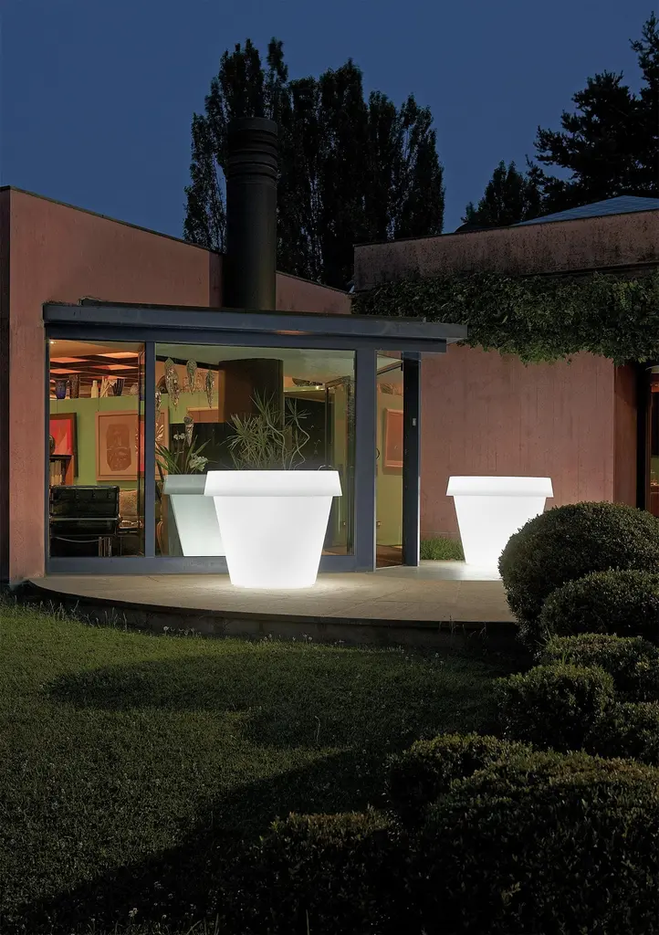 Milky White Giò Tondo Pot by Giò Colonna RomanoDimensions: Ø 110 x H 92.Materials: Polyethylene.This product is suitable for indoor and outdoor use. Please contact us.Our stories happen in places precious to us. SLIDE was born from the desire to produce furniture and light to create the perfect atmosphere that highlights emotions.Design is inspiration, surprise, joy. It's the amazement of seeing something unique for the first time. It's creating spaces to feel good and live surrounded by beauty. It means giving a personal imprint to indoor and outdoor spaces. It means choosing your ideal element that is the perfect setting for emotions and experiences, which become indelible memories. The founder Giò Colonna Romano knows this well, combining his fervent imagination with thirty years of know-how in the processing of plastic resins, giving birth to SLIDE in 2002. The first note of amazement is the luminous furniture, which immediately became a must have in the world of events. Since 2015, his son Marco Colonna Romano has taken over the reins of the company, with the same desire to grow and innovate as his father. Thanks to a new panache and the team of young people it surrounds itself with, SLIDE becomes a beloved company for outdoor furniture: new shapes, materials and tactile textures have won the hearts and ideas of architects and interior designers around the world. SLIDE has thus created complete collections and furnishings, with new shapes, whose lines arise from collaboration with internationally renowned designers of the caliber of Alessandro Mendini, Paola Navone, Stefano Giovannoni, Fabio Novembre, Marcel Wanders, Karim Rashid, Marc Sadler, Francesco Favaretto and Marcantonio.New materials were chosen and inserted, initially soft and rigid polyurethane, and then comfortable cushions, waterproof fabrics, tactile textures ideal for completing the polyethylene furnishings with taste and class. But SLIDE does not forget its first essence, lighting: in recent years it has developed a line of much more technical lamps for large areas, essential in shape but with great visual impact. For the first time, Slide has managed to give an artisanal twist to an industrial process: to meet the increasingly high demands of living, the production creates non-replicable shades, in which every small imperfection enhances the industrial process and makes each piece unique . Because Slide's strength has always been the careful reading of the market, the creation of something that didn't exist and which then became necessary: here Slide continues its production in Buccinasco, on the outskirts of Milan, but its name and its products reach more than 130 countries around the world.