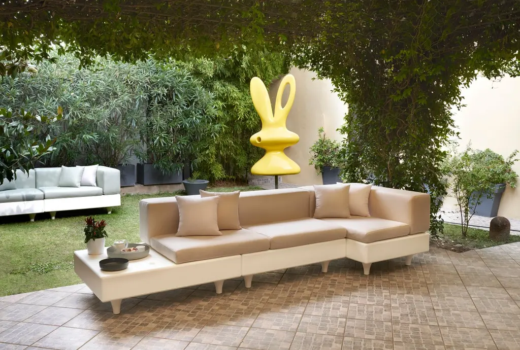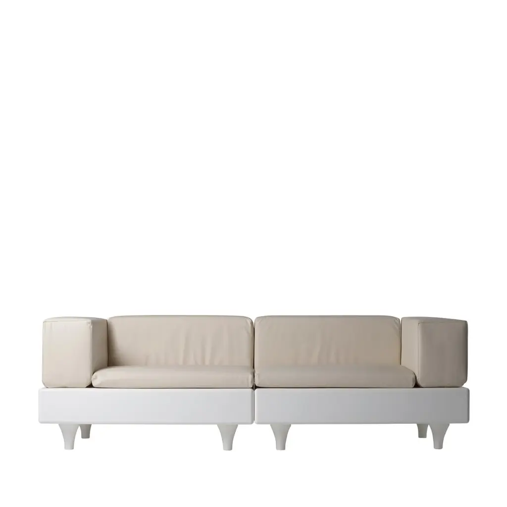 Milky White Happylife Sofa by Bedini, Marzano And SettimelliDimensions: D 90 x W 240 x H 81 cm. Seat Height: 47 cm.Materials: Polyethylene and eco-leather.Weight: 69 kg.Available in different color options. Available in standard, glossy or matte lacquered finishes. This product is suitable for indoor and outdoor use. Cushions are available in eco-leather, with a removable wadding filling with outdoor waterproof acrylic cover. Prices may vary. Please contact us. Happylife reminds of the classic nineteenth-century lounge sofa, but it is created with contemporary material typical of the whole Slide production. Happylife is a versatile product: its modular structure is created to occupy the spaces optimally, thanks to its essential and minimal lines. Its cushion could be in eco-leather or in waterproof fabric.Our stories happen in places precious to us. SLIDE was born from the desire to produce furniture and light to create the perfect atmosphere that highlights emotions.Design is inspiration, surprise, joy. It's the amazement of seeing something unique for the first time. It's creating spaces to feel good and live surrounded by beauty. It means giving a personal imprint to indoor and outdoor spaces. It means choosing your ideal element that is the perfect setting for emotions and experiences, which become indelible memories. The founder Giò Colonna Romano knows this well, combining his fervent imagination with thirty years of know-how in the processing of plastic resins, giving birth to SLIDE in 2002. The first note of amazement is the luminous furniture, which immediately became a must have in the world of events. Since 2015, his son Marco Colonna Romano has taken over the reins of the company, with the same desire to grow and innovate as his father. Thanks to a new panache and the team of young people it surrounds itself with, SLIDE becomes a beloved company for outdoor furniture: new shapes, materials and tactile textures have won the hearts and ideas of architects and interior designers around the world. SLIDE has thus created complete collections and furnishings, with new shapes, whose lines arise from collaboration with internationally renowned designers of the caliber of Alessandro Mendini, Paola Navone, Stefano Giovannoni, Fabio Novembre, Marcel Wanders, Karim Rashid, Marc Sadler, Francesco Favaretto and Marcantonio.New materials were chosen and inserted, initially soft and rigid polyurethane, and then comfortable cushions, waterproof fabrics, tactile textures ideal for completing the polyethylene furnishings with taste and class. But SLIDE does not forget its first essence, lighting: in recent years it has developed a line of much more technical lamps for large areas, essential in shape but with great visual impact. For the first time, Slide has managed to give an artisanal twist to an industrial process: to meet the increasingly high demands of living, the production creates non-replicable shades, in which every small imperfection enhances the industrial process and makes each piece unique . Because Slide's strength has always been the careful reading of the market, the creation of something that didn't exist and which then became necessary: here Slide continues its production in Buccinasco, on the outskirts of Milan, but its name and its products reach more than 130 countries around the world.