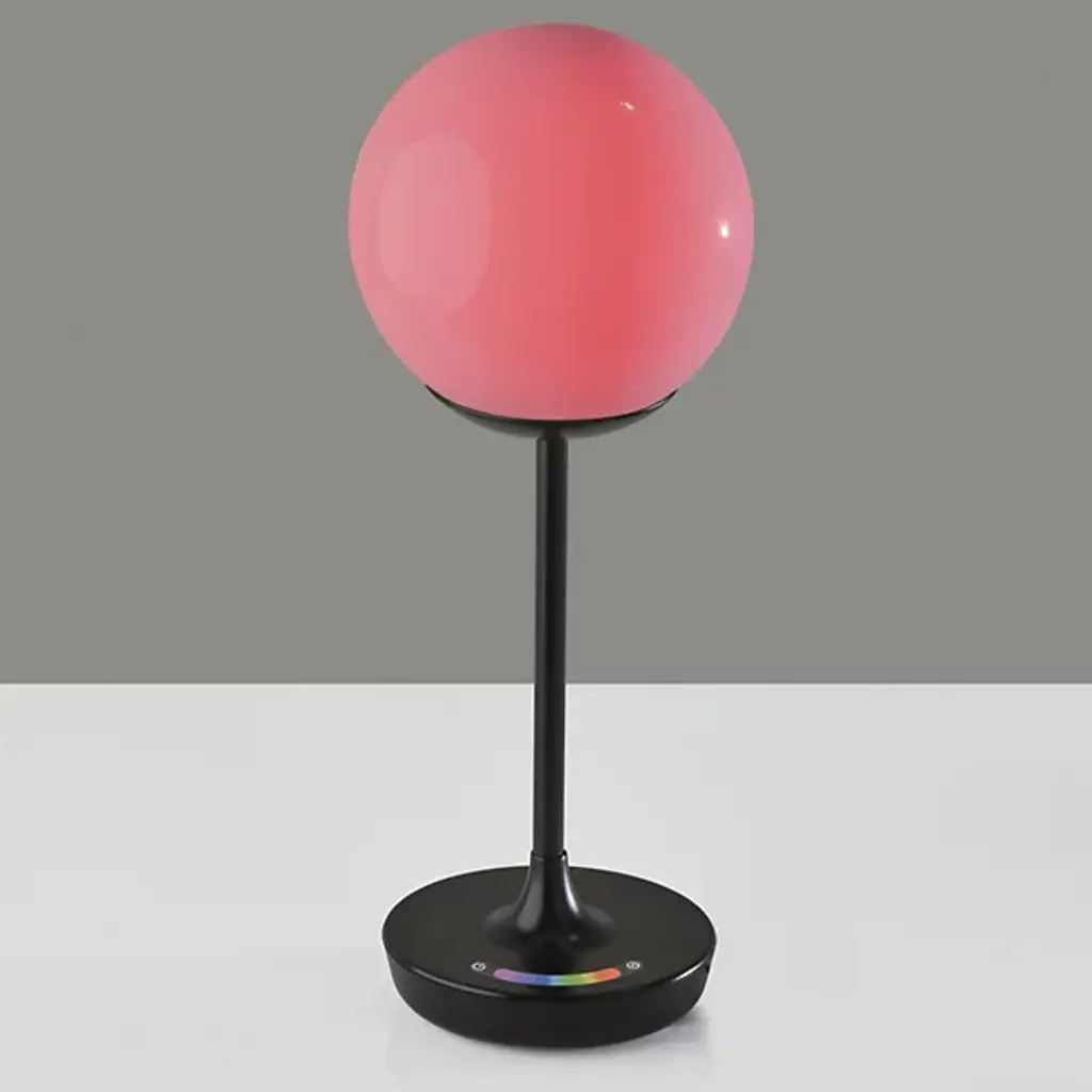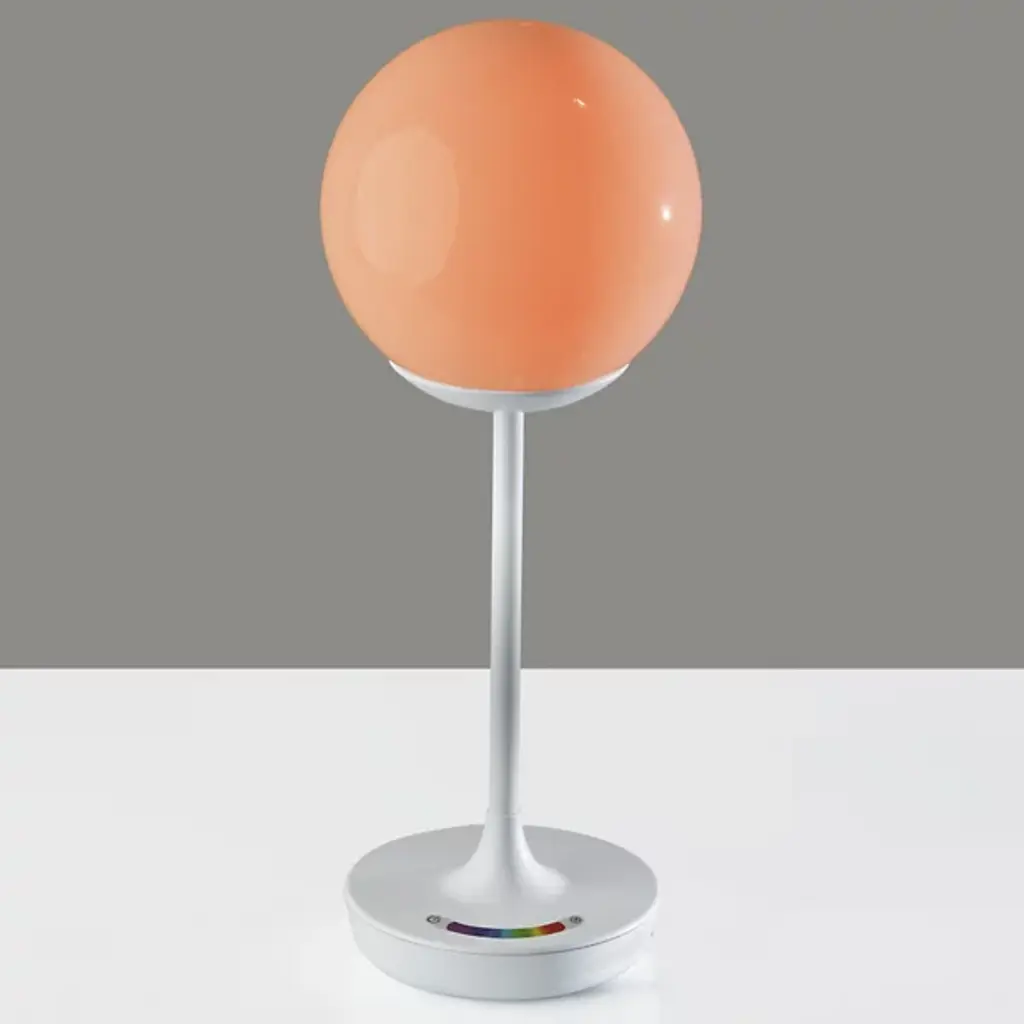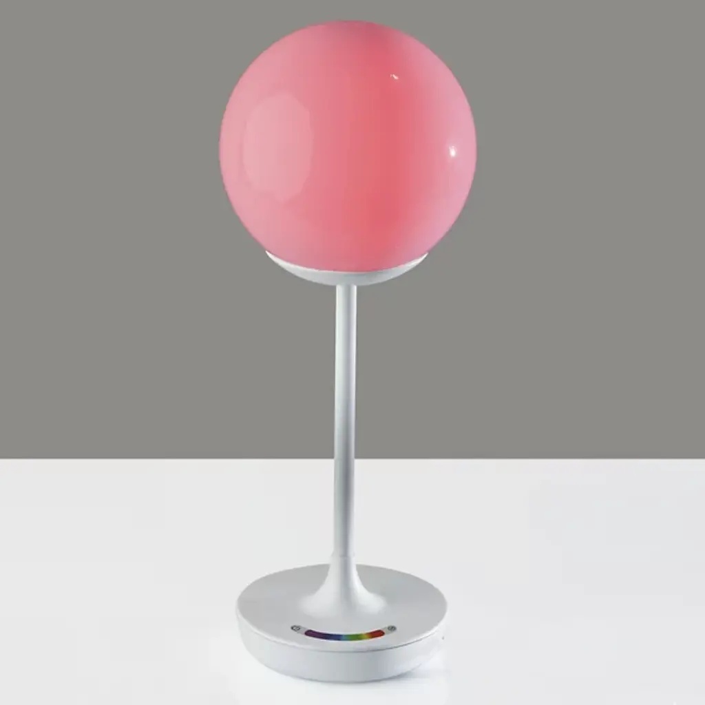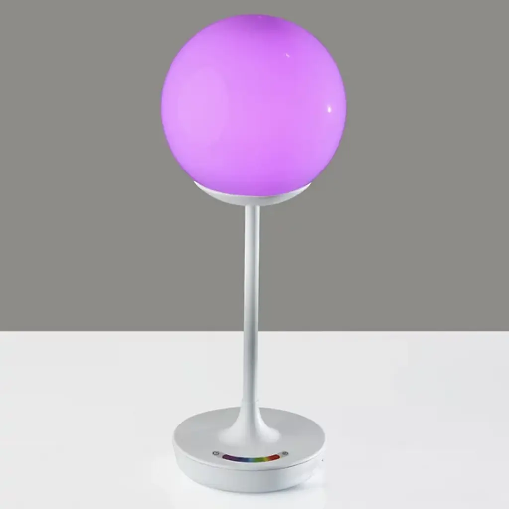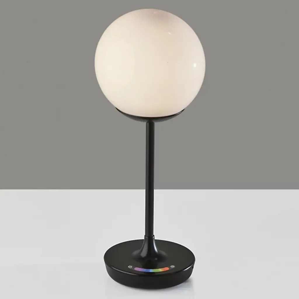The Millie LED Color Changing Rechargeable Table Lamp balances fun and versatility with a take-anywhere design. A durable, minimal construction lends this piece to the bedside or outdoor table. A USB charging cord powers the piece for a minimum of 5 hours on a 2-3 hour charge. The light radiates softly from a charming globe shade. This LED light comes in a generous palette of colors or regular white. One can find the right color and dimming level with a brief tap on the touch bar on the base.