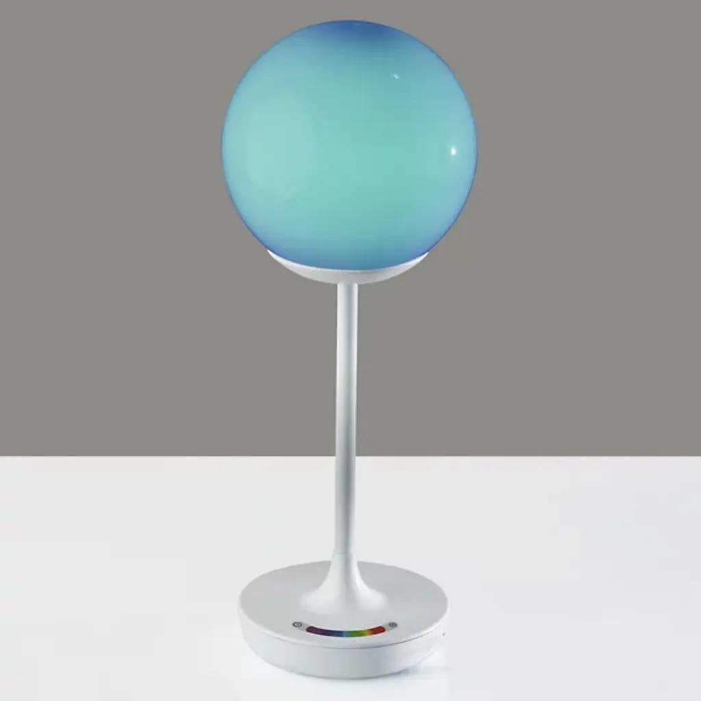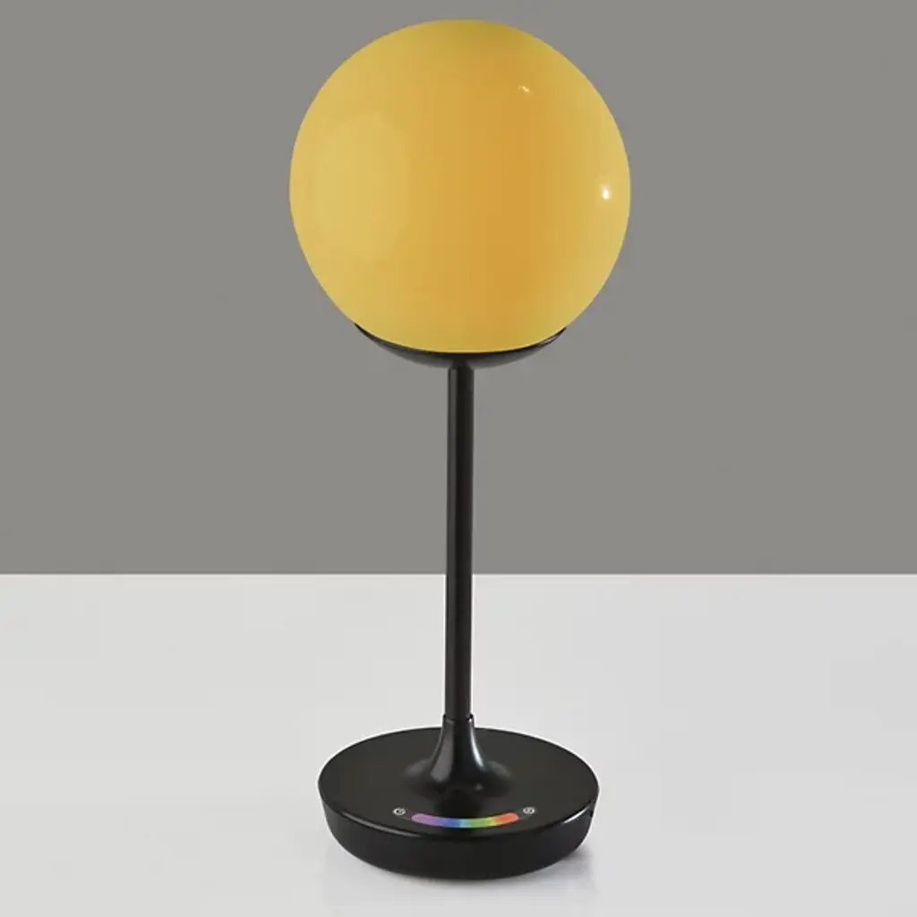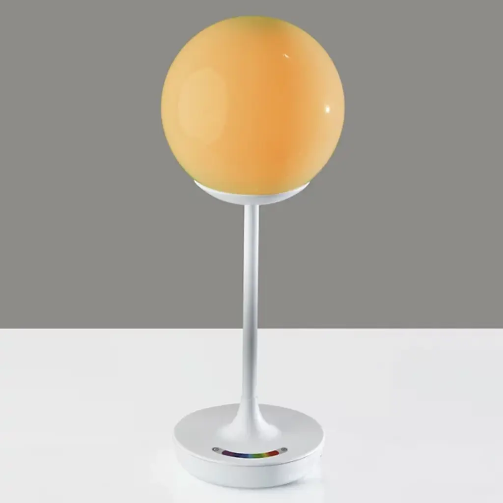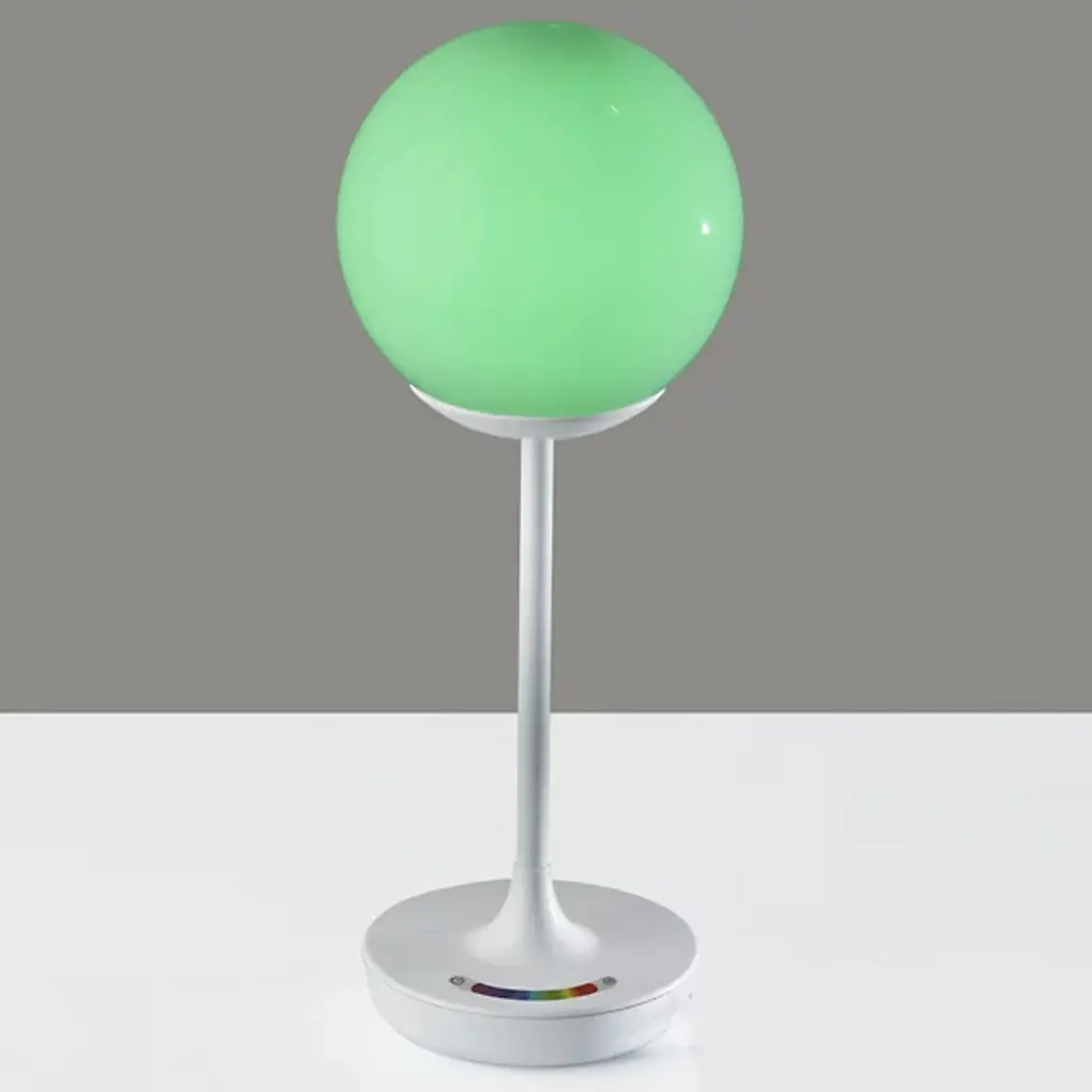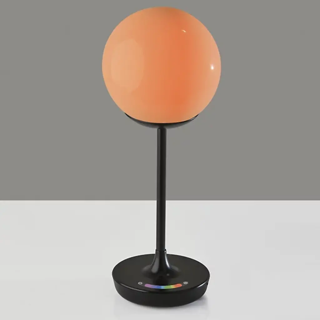The Millie LED Color Changing Rechargeable Table Lamp balances fun and versatility with a take-anywhere design. A durable, minimal construction lends this piece to the bedside or outdoor table. A USB charging cord powers the piece for a minimum of 5 hours on a 2-3 hour charge. The light radiates softly from a charming globe shade. This LED light comes in a generous palette of colors or regular white. One can find the right color and dimming level with a brief tap on the touch bar on the base.